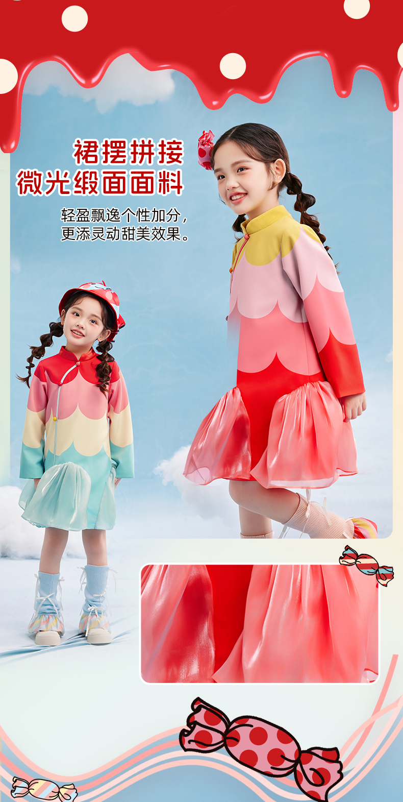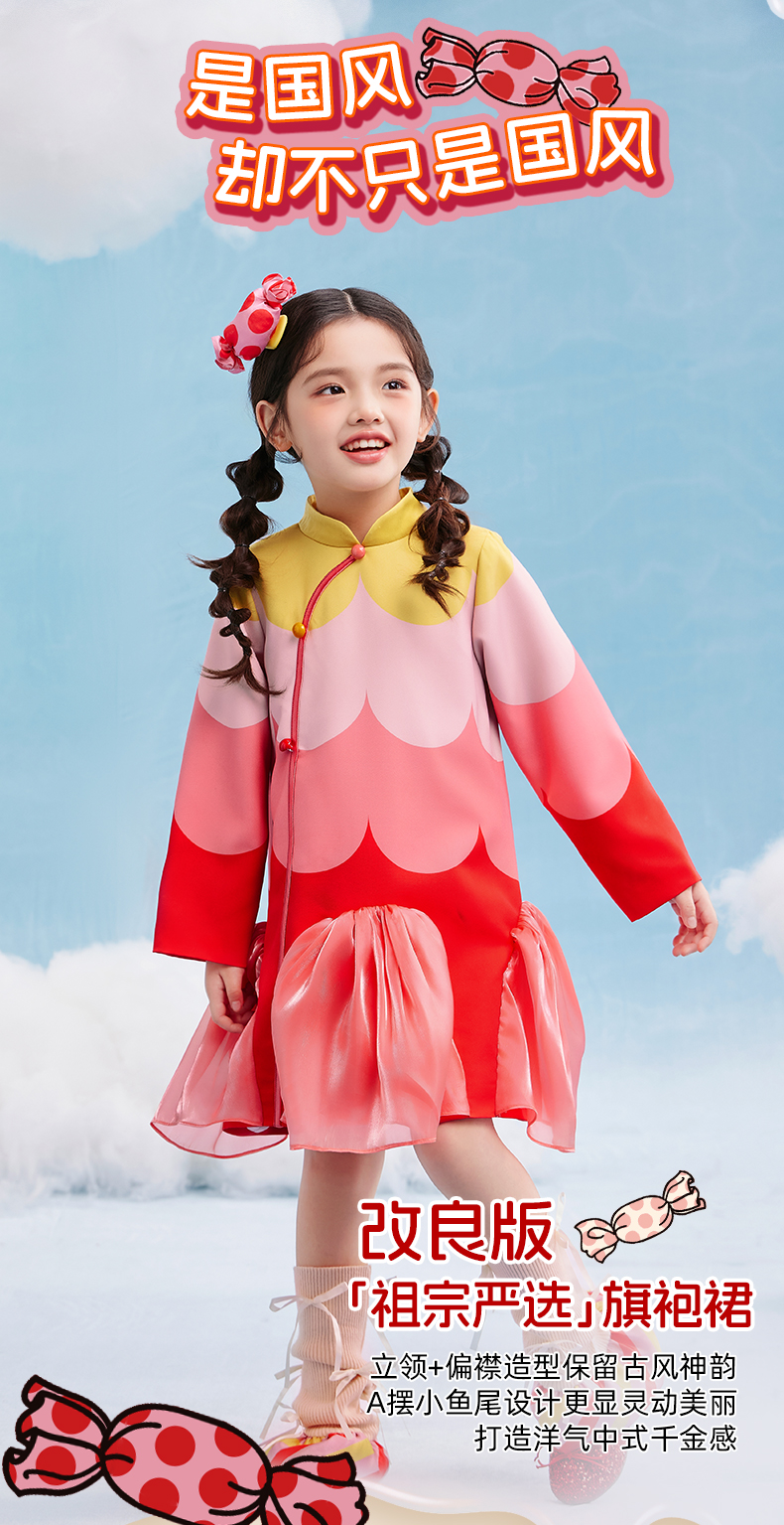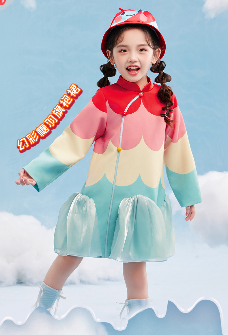 年衣童装女童旗袍连衣裙2025年春季新款周岁礼服裙子儿童演出服幻彩糖羽旗袍裙