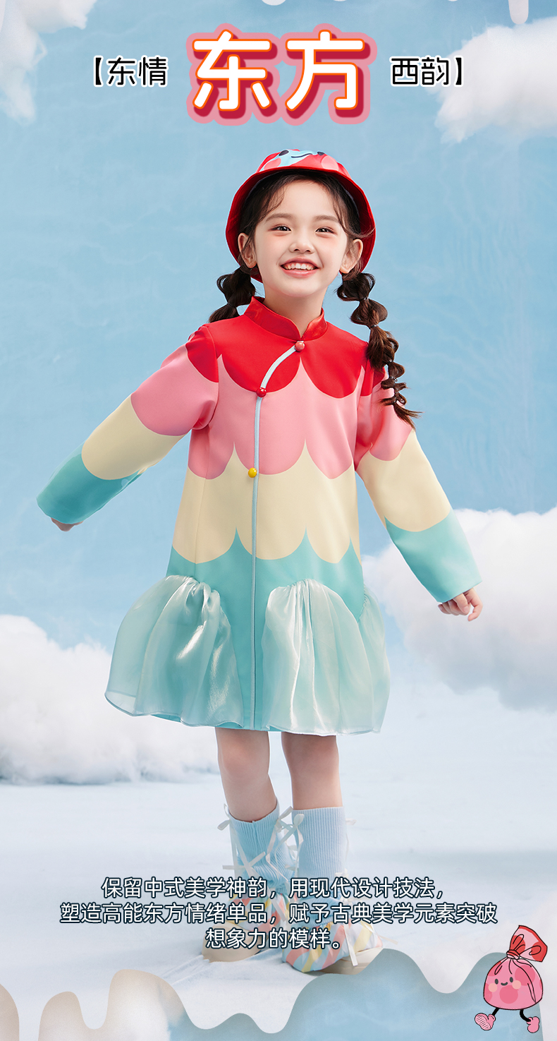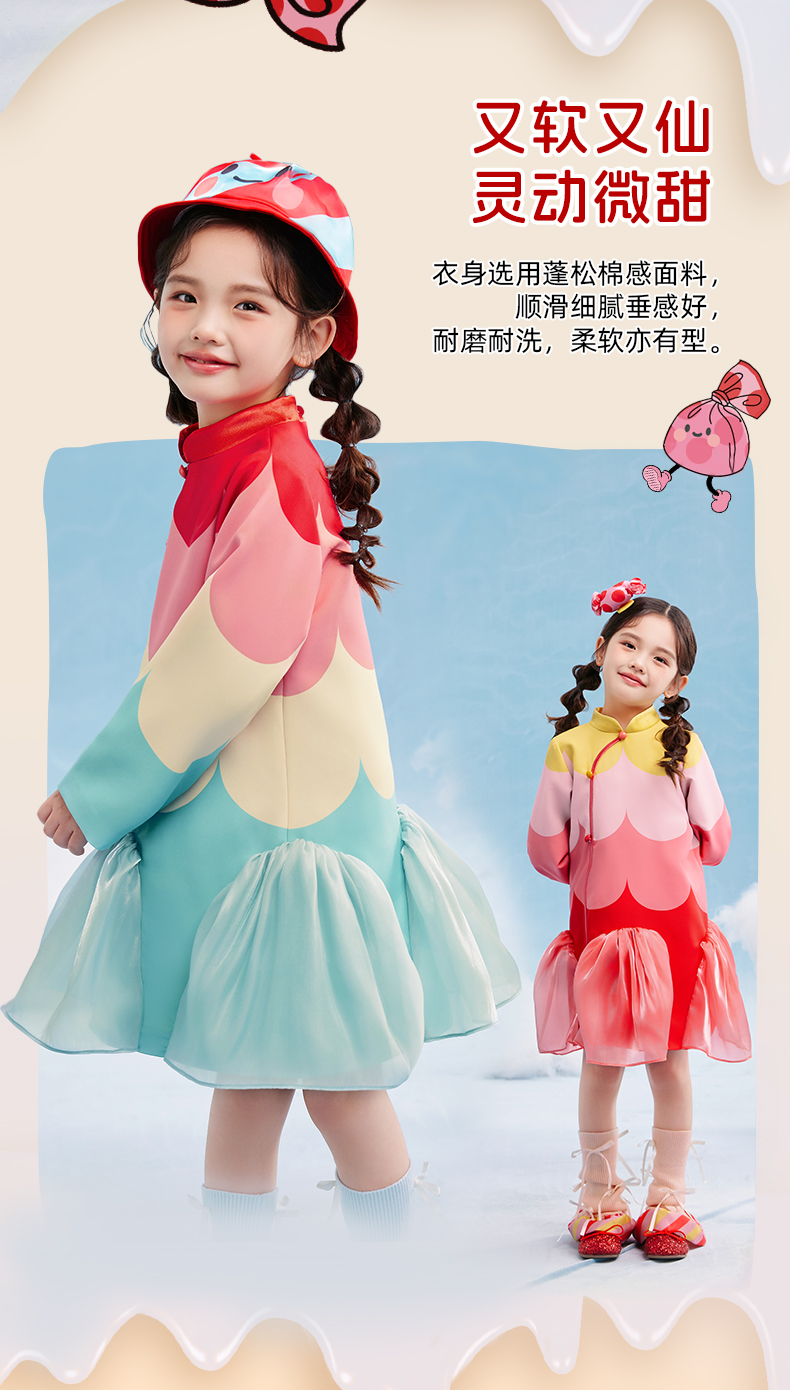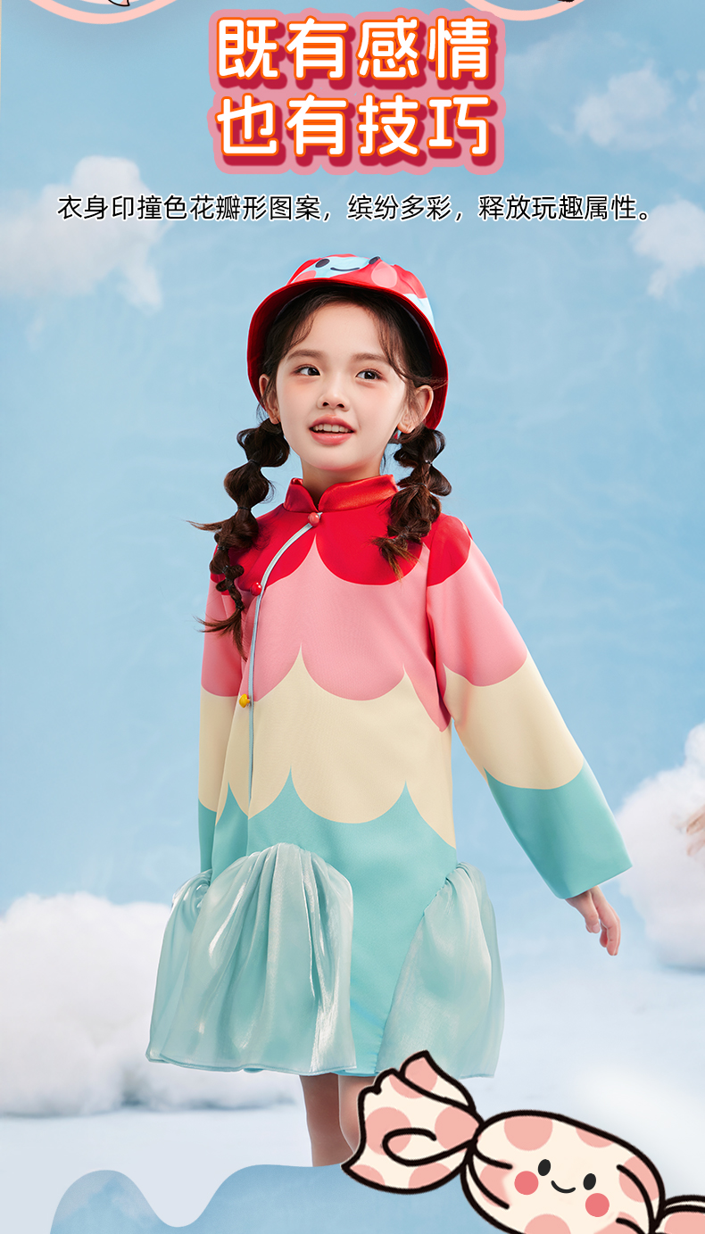 年衣童装女童旗袍连衣裙2025年春季新款周岁礼服裙子儿童演出服幻彩糖羽旗袍裙