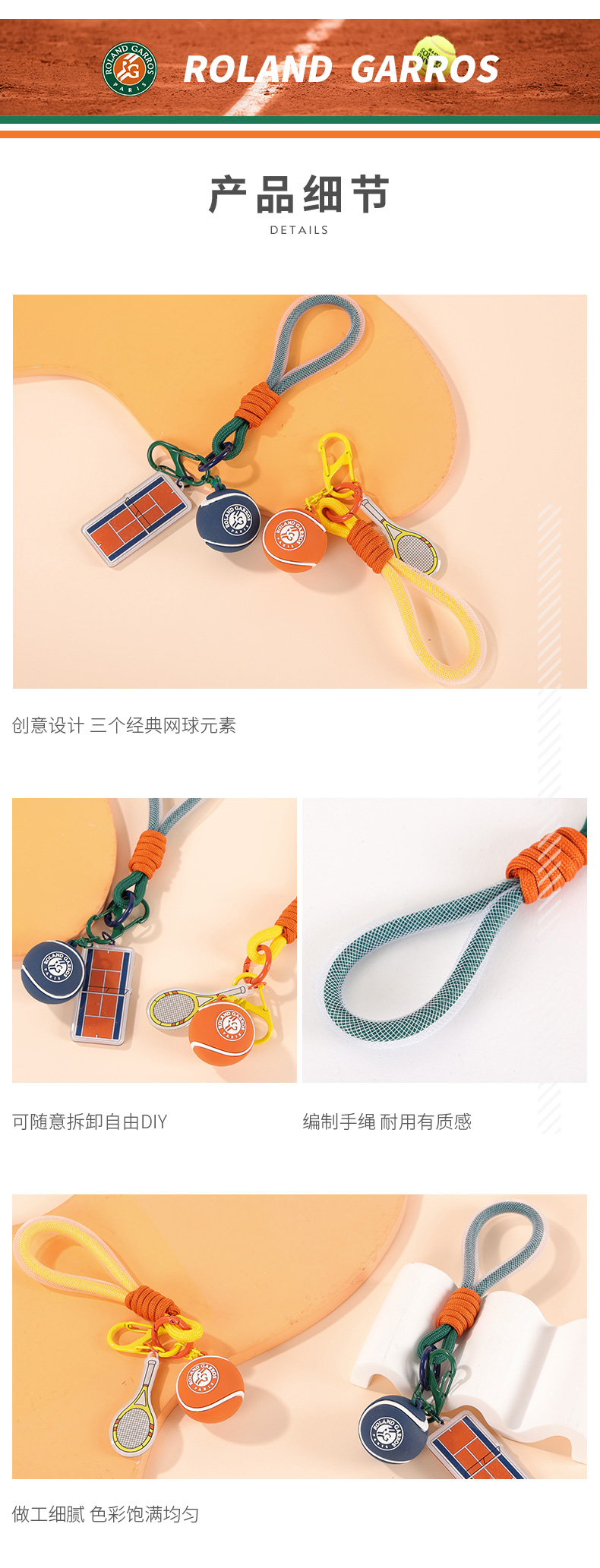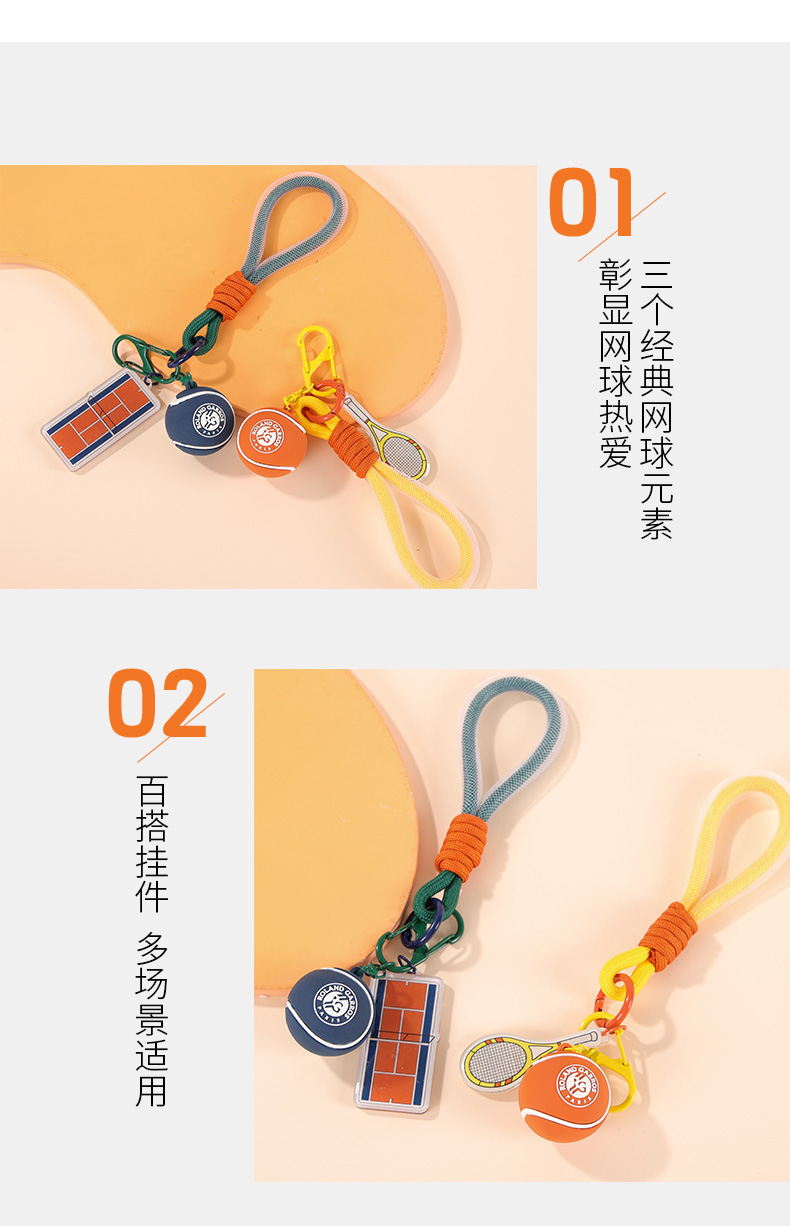 罗兰加洛斯法网官方PVC网球周边纪念亚克力钥匙扣情侣书包挂件