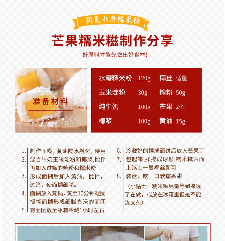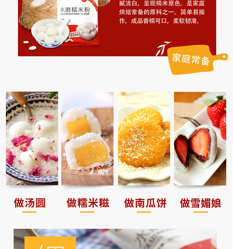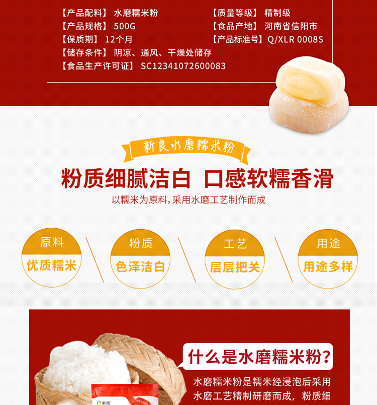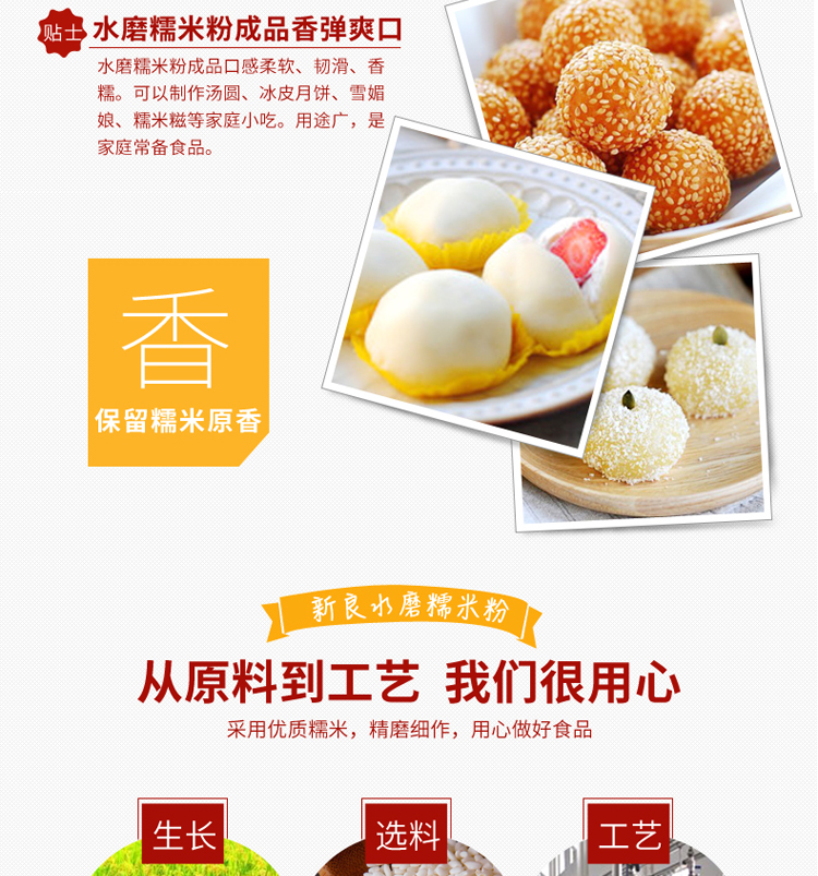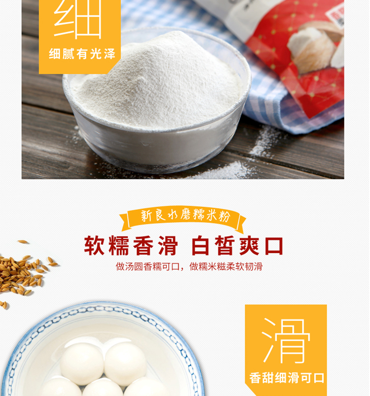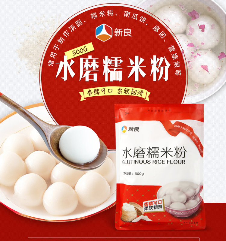 新良水磨糯米粉冰皮月饼粉糯米糍汤圆青团粉年糕DIY烘焙原料500g