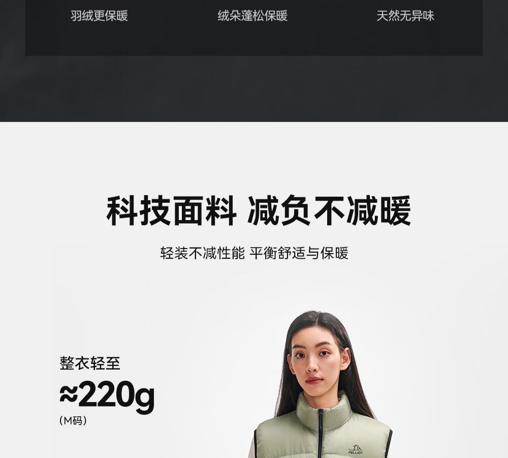 伯希和户外轻薄羽绒马甲女2025新款800蓬鹅绒保暖登山运动外套男