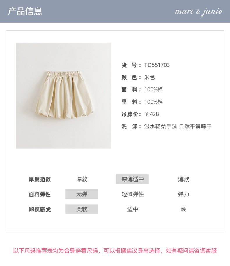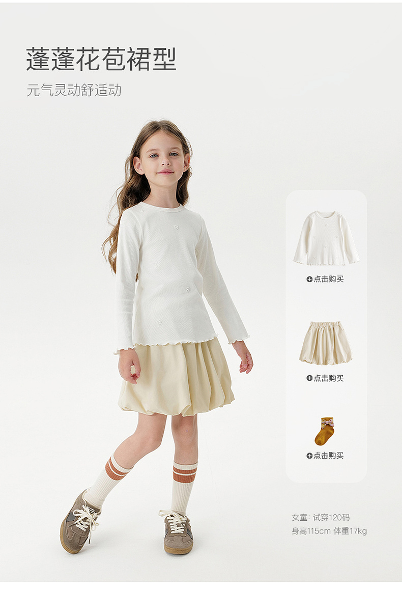 马克珍妮女童元气有型纯棉花苞半裙2025年秋装新款551703
