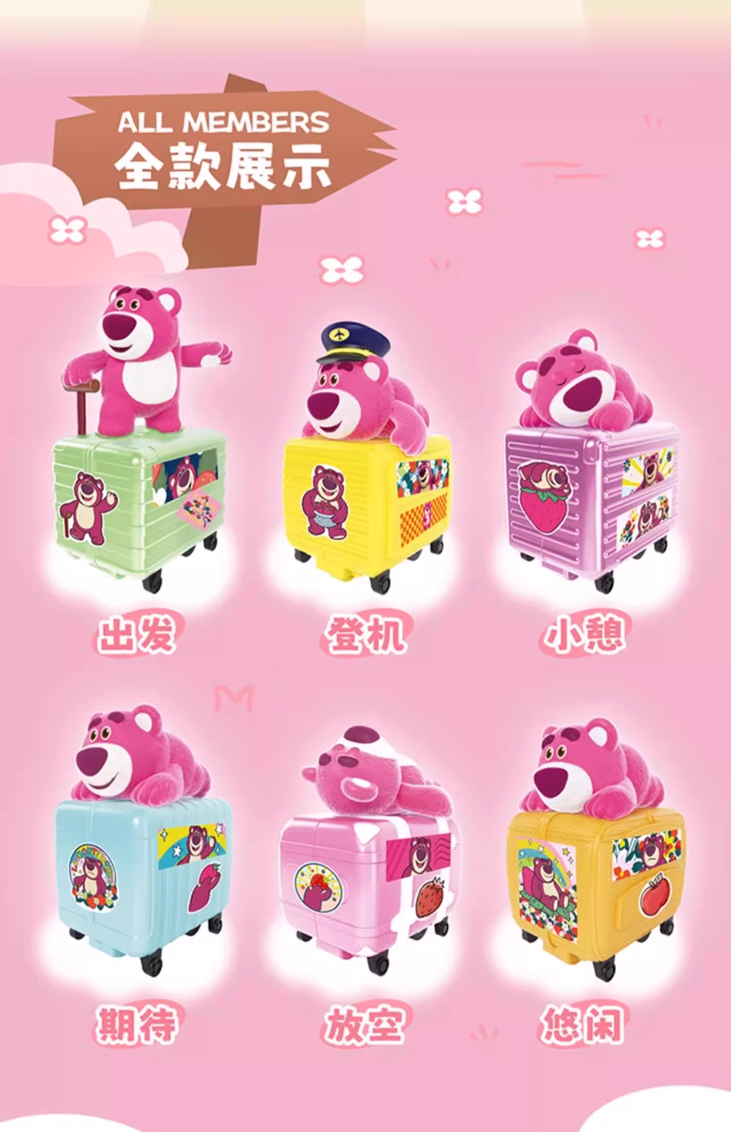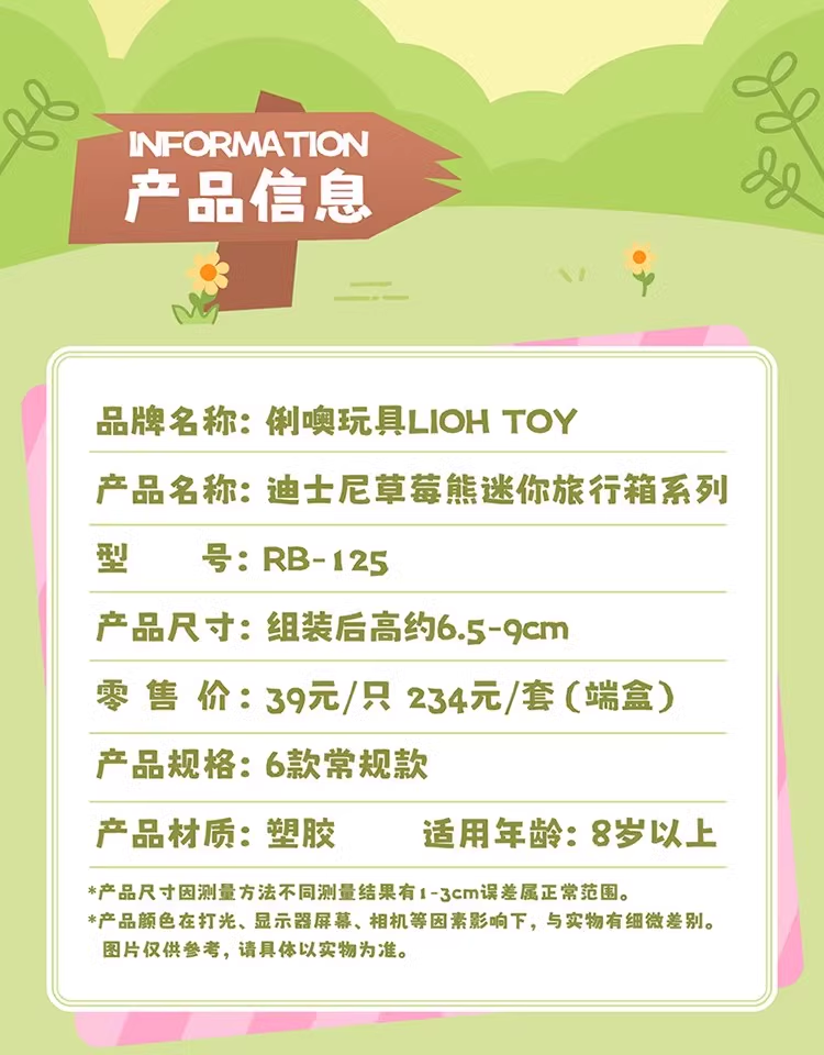 时利扭蛋 迪士尼草莓熊迷你旅行箱系列单个盲盒NDSCRB-125