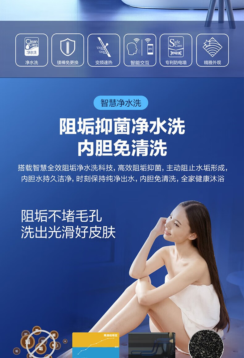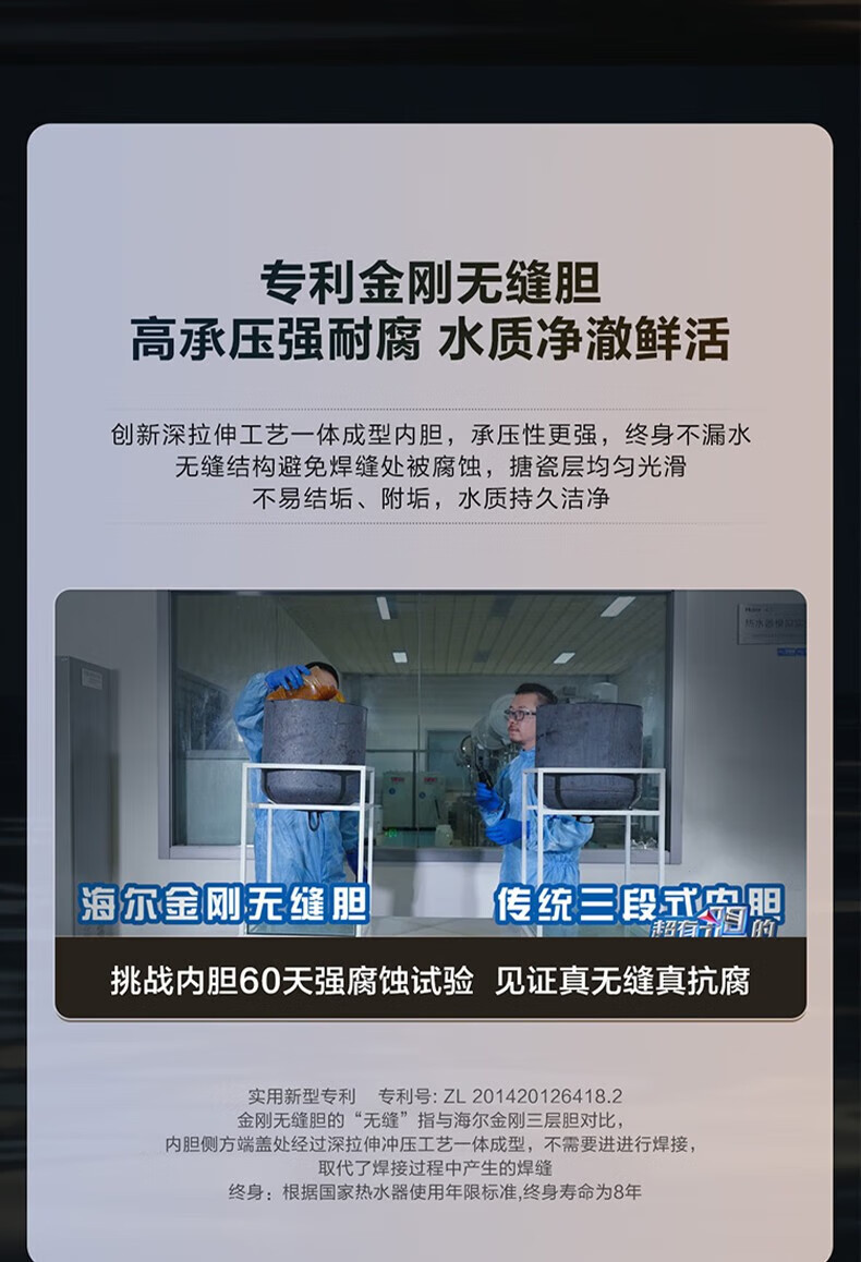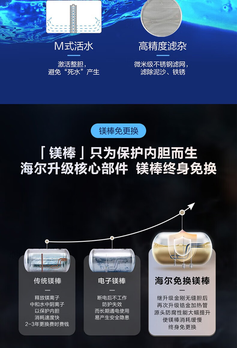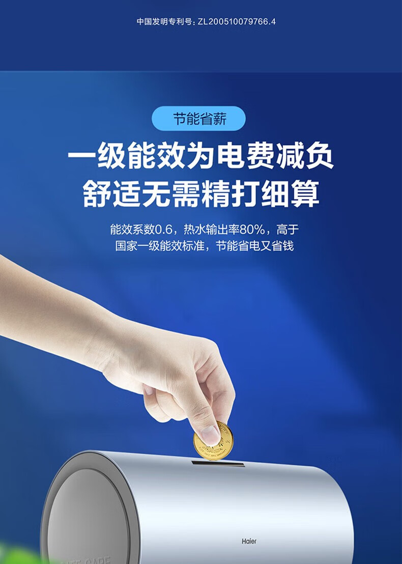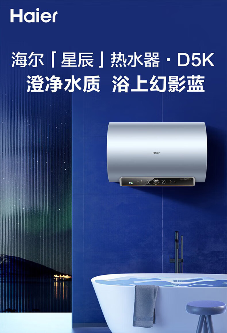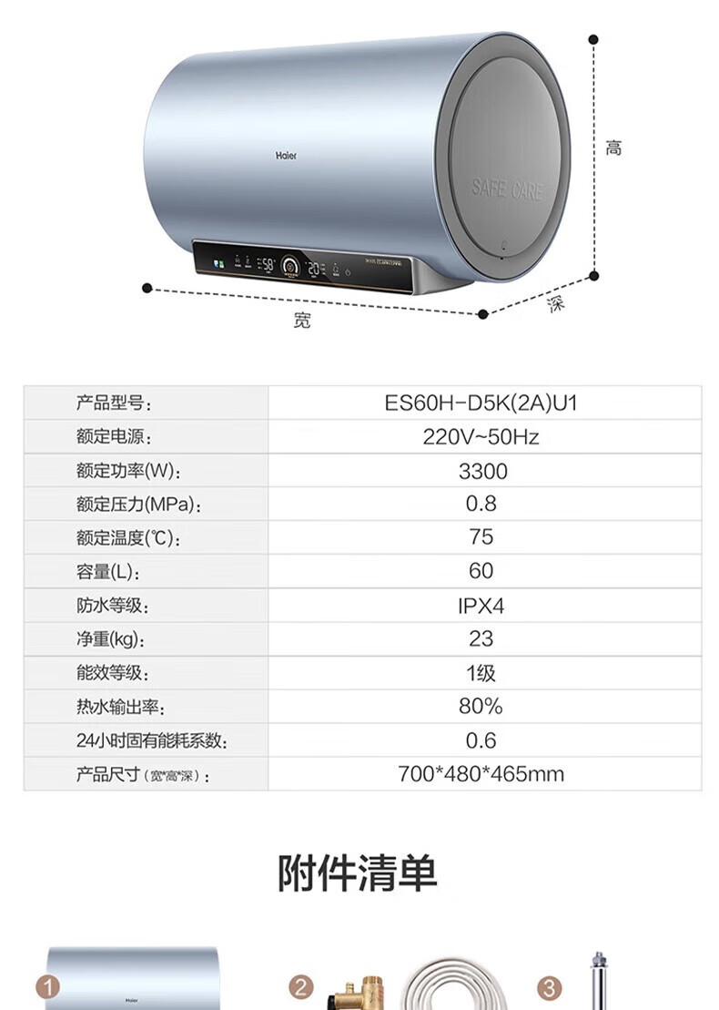 海尔(Haier)电热水器商用家用60升短款小型变频速热内胆免清洗镁棒免更换一级能效节能 ES60H-D5K(2A)U1
