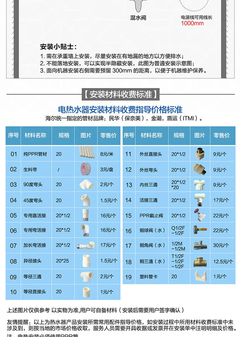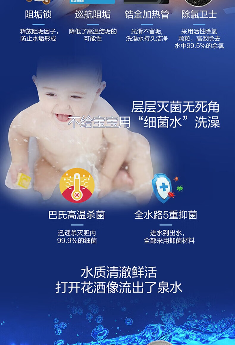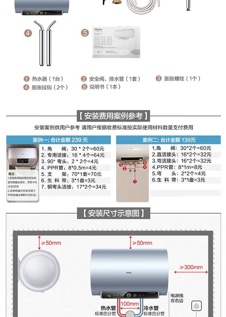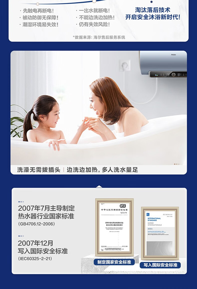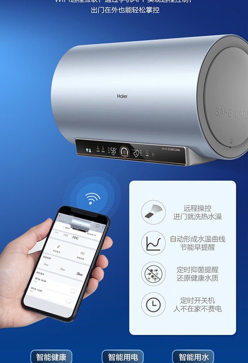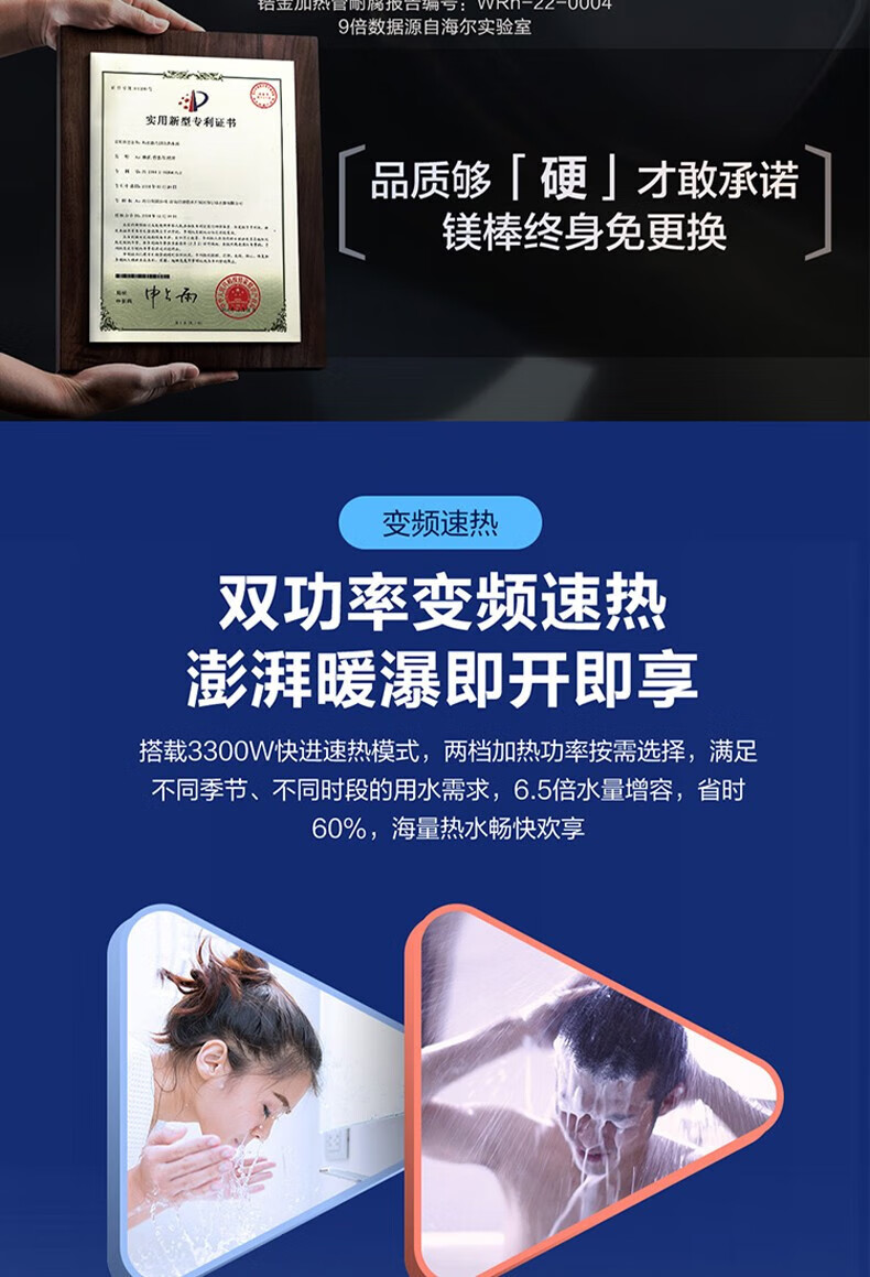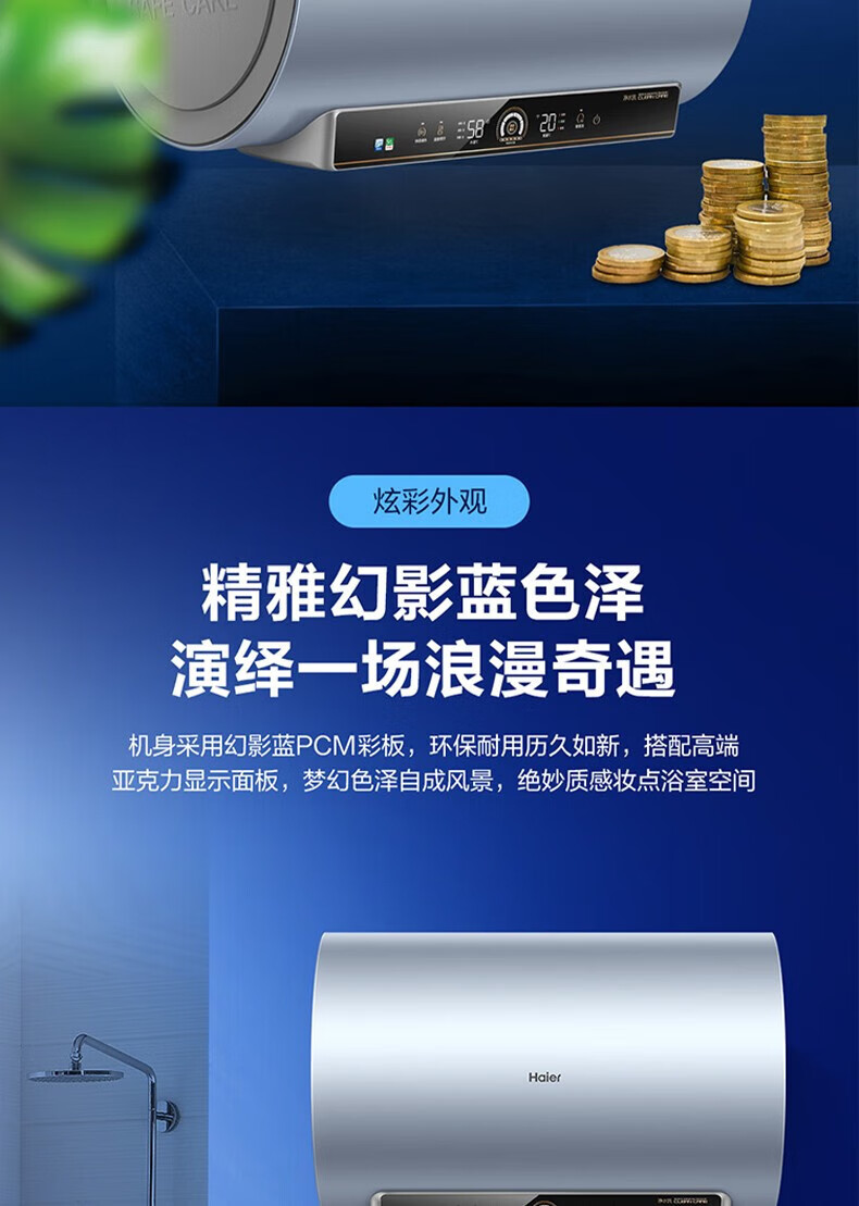 海尔(Haier)电热水器商用家用60升短款小型变频速热内胆免清洗镁棒免更换一级能效节能 ES60H-D5K(2A)U1