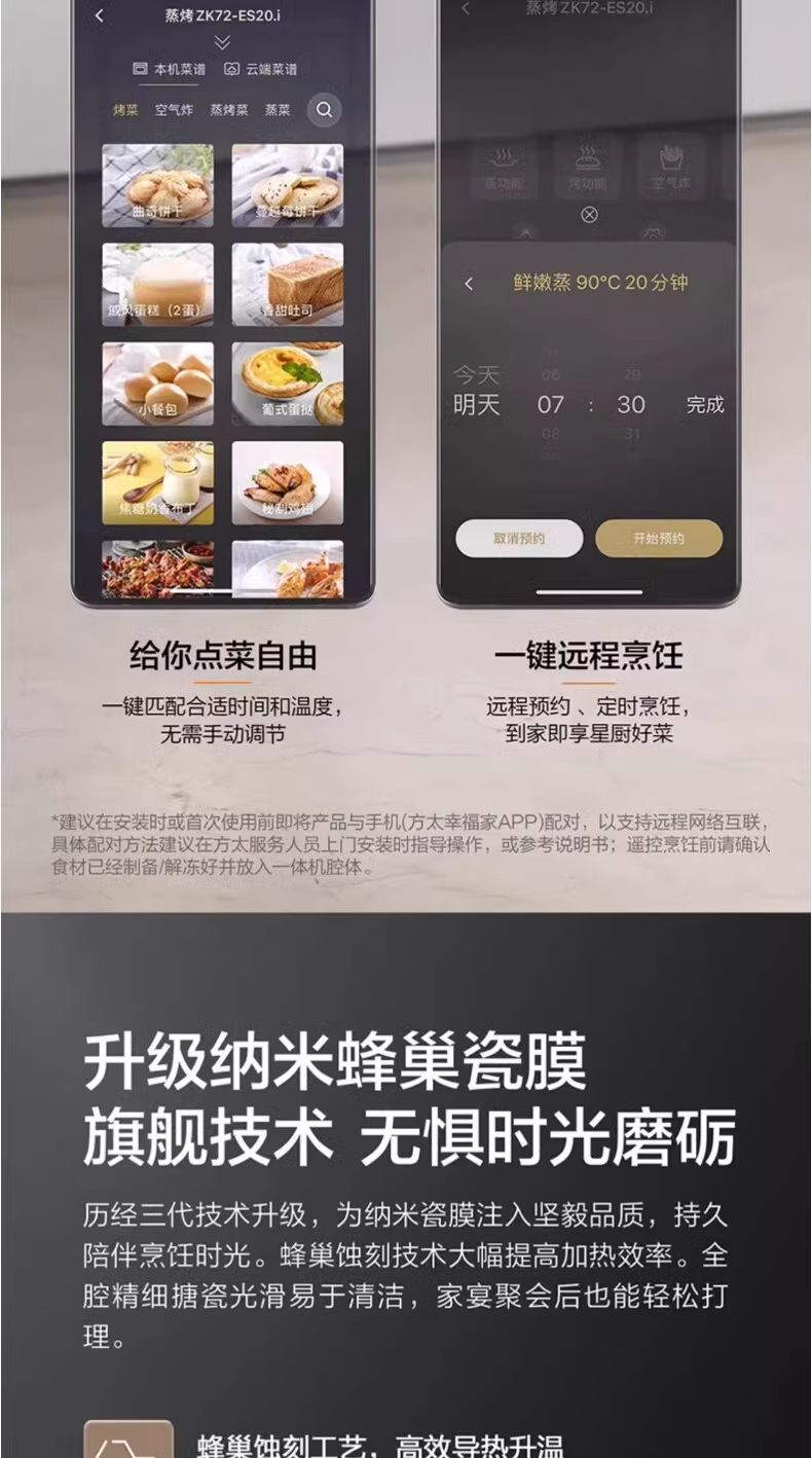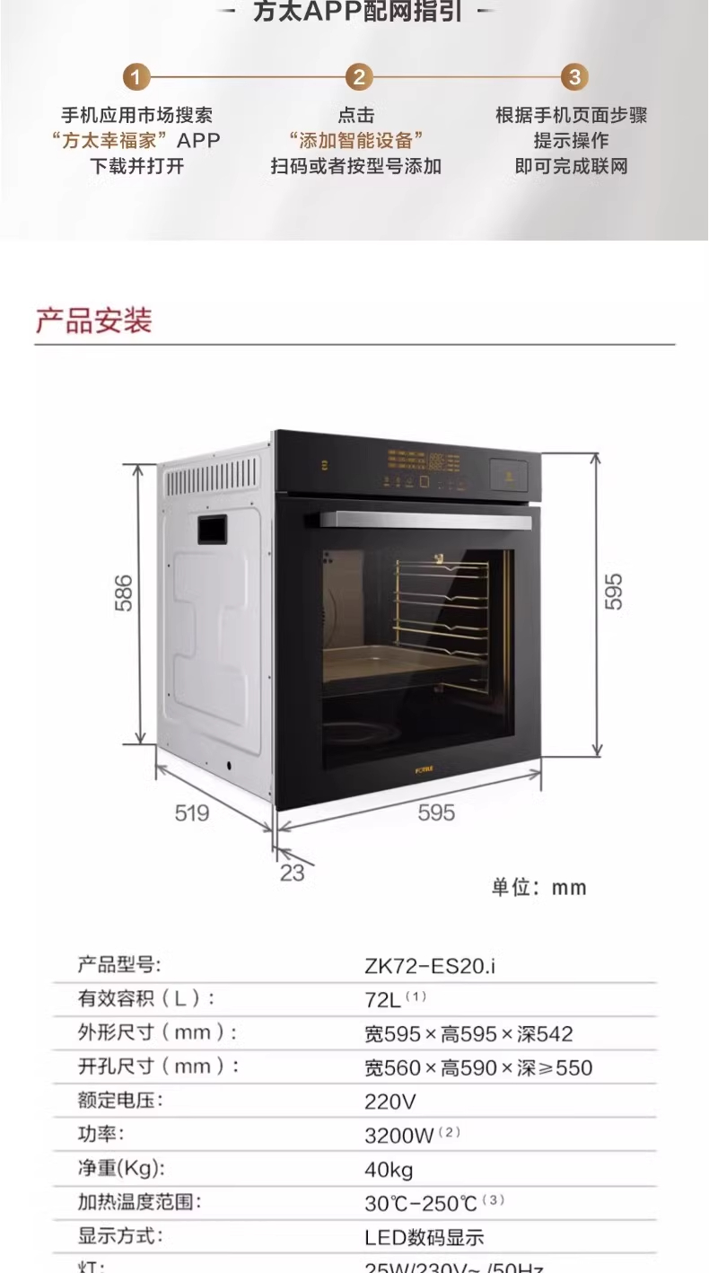 方太ZK72-ES20.i嵌入式蒸烤炖炸一体机76L大容量搪瓷内胆wifi智联