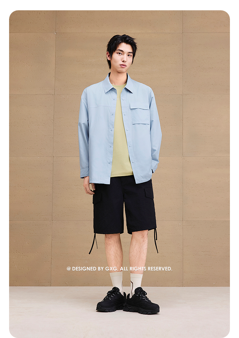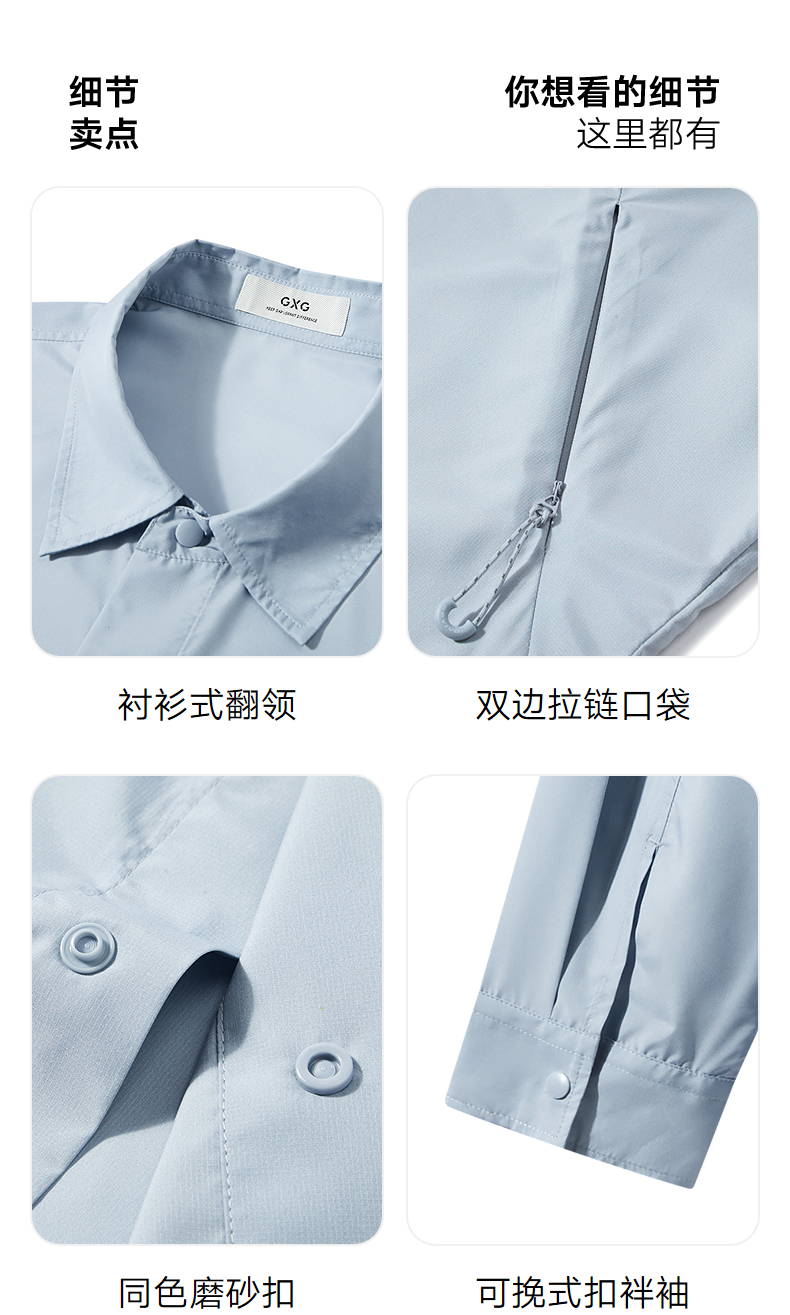 【防晒凉感】GXG男装轻薄衬衫式防晒服翻领夹克外套25夏热卖