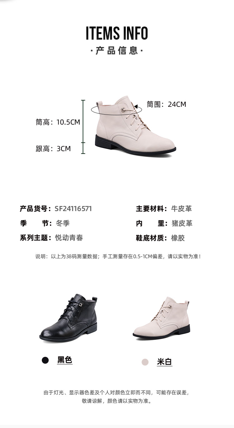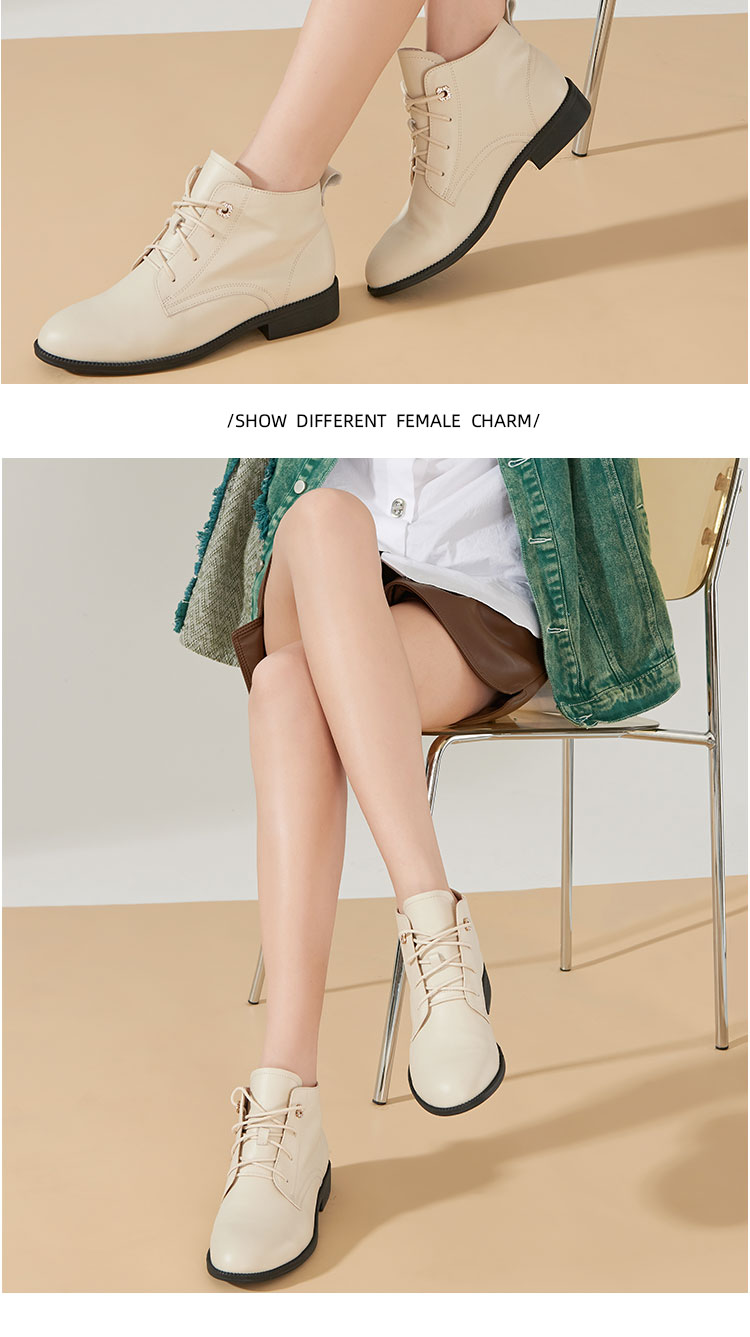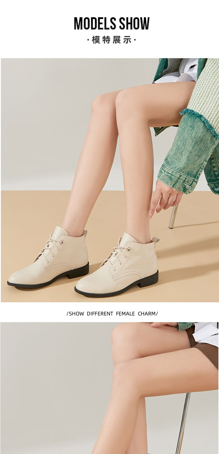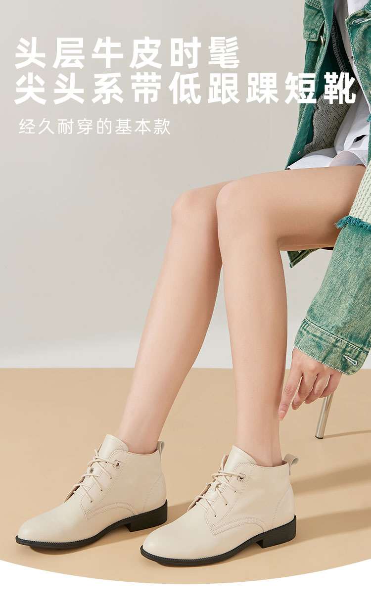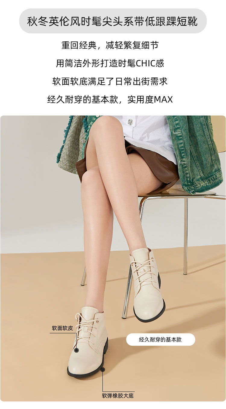 【春节不打烊】Safiya/索菲娅 秋冬英伦风2022年冬季新款时髦尖头系带低跟踝短靴 SF24116571