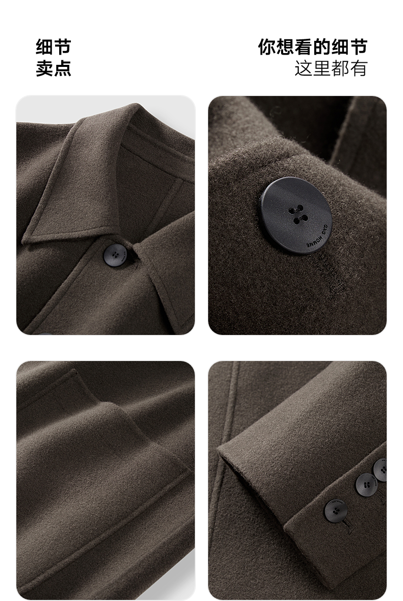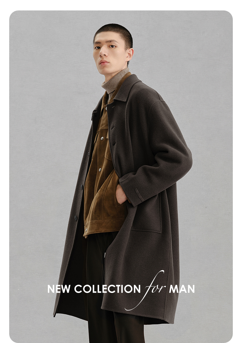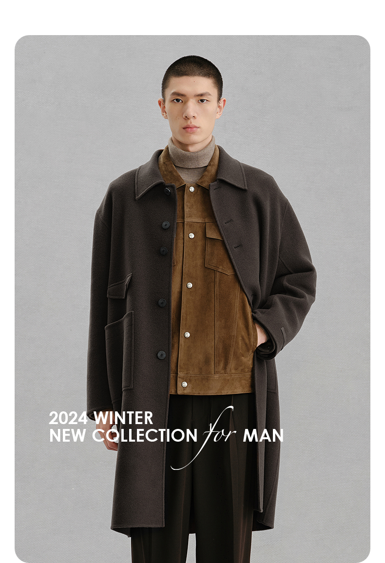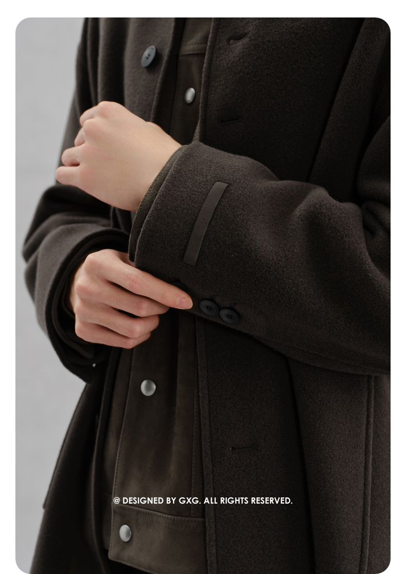 GXG男装 棕色肌理斜纹通勤短款大衣 24冬热卖G24X064027