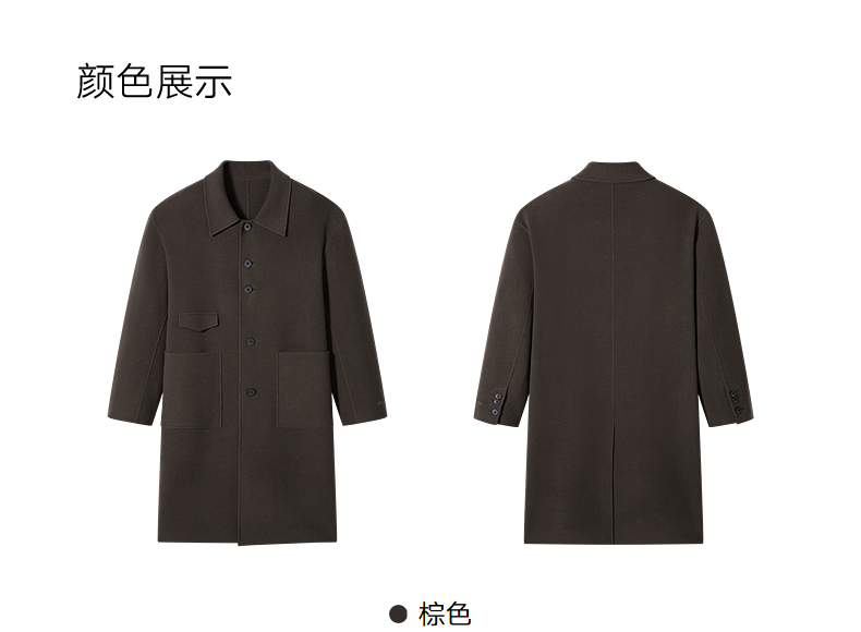 GXG男装 棕色通勤长款大衣外套24年冬季热卖G24X264020