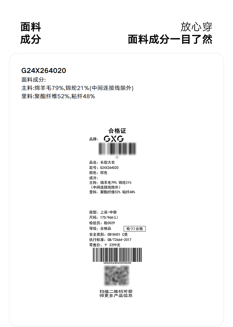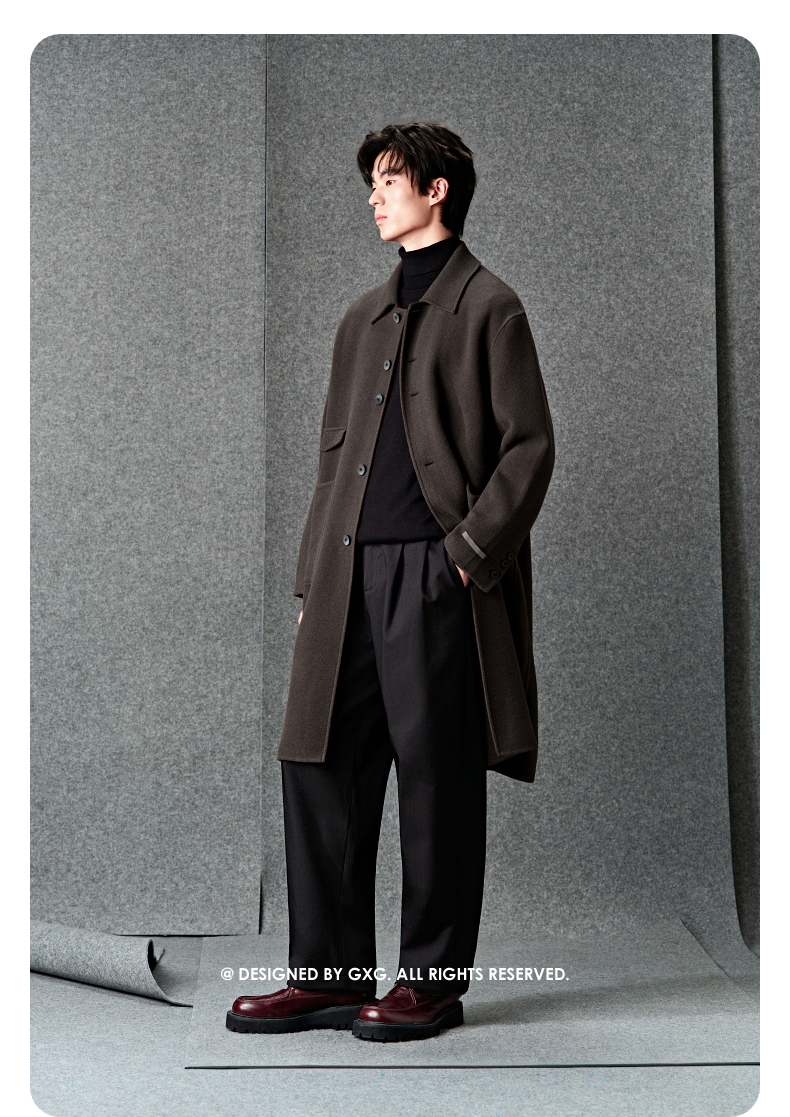 GXG男装 棕色通勤长款大衣外套冬季热卖G24X264020