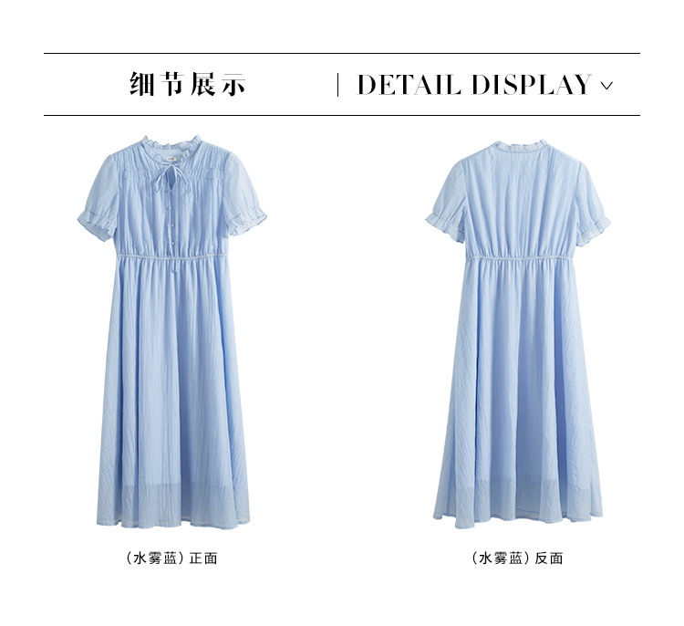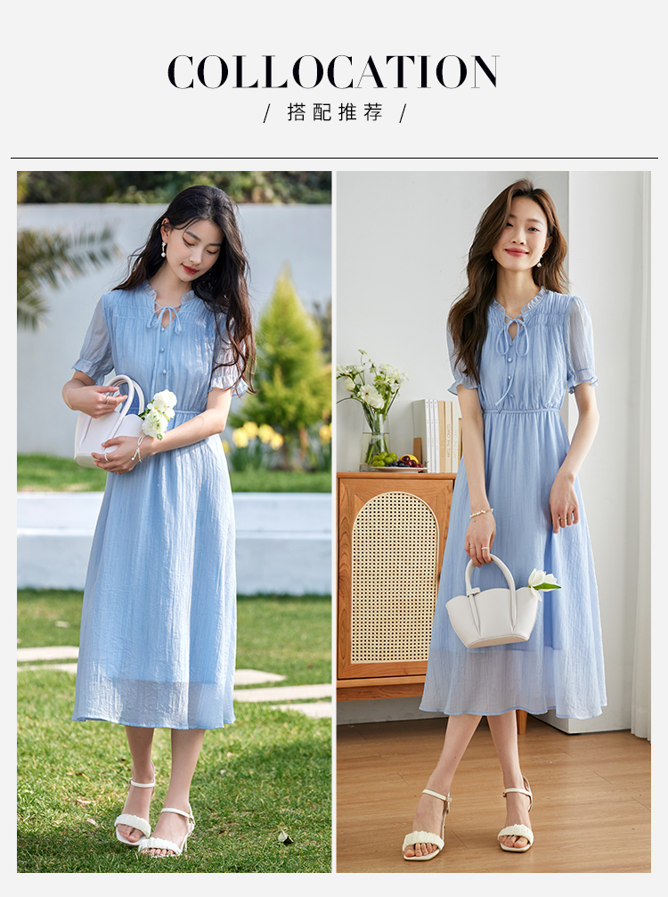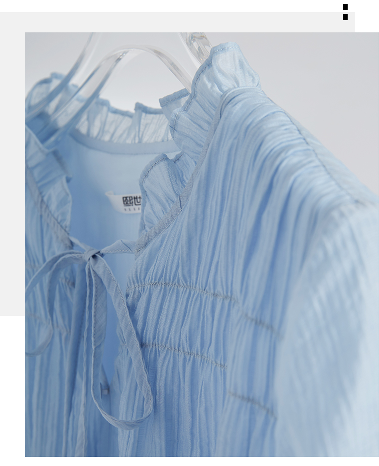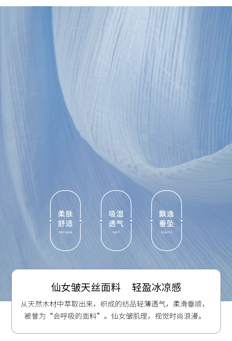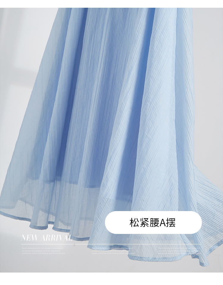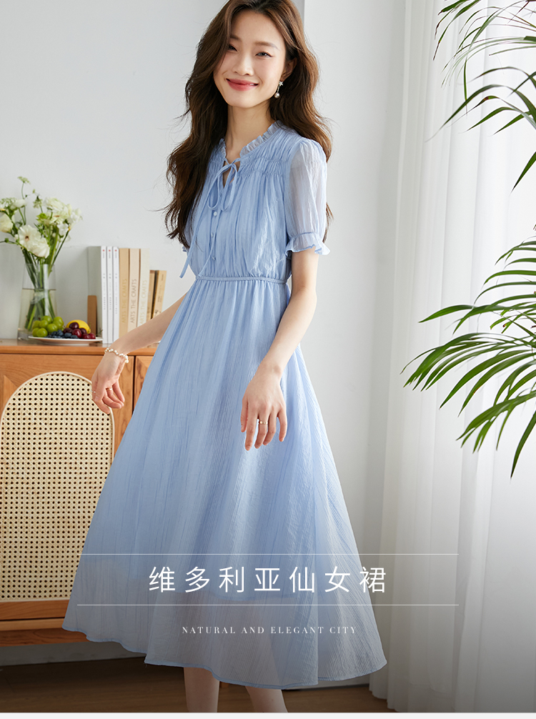 【专属特价】熙世界褶皱肌理质感天丝连衣裙女收腰气质水雾蓝仙女裙子2025夏季
