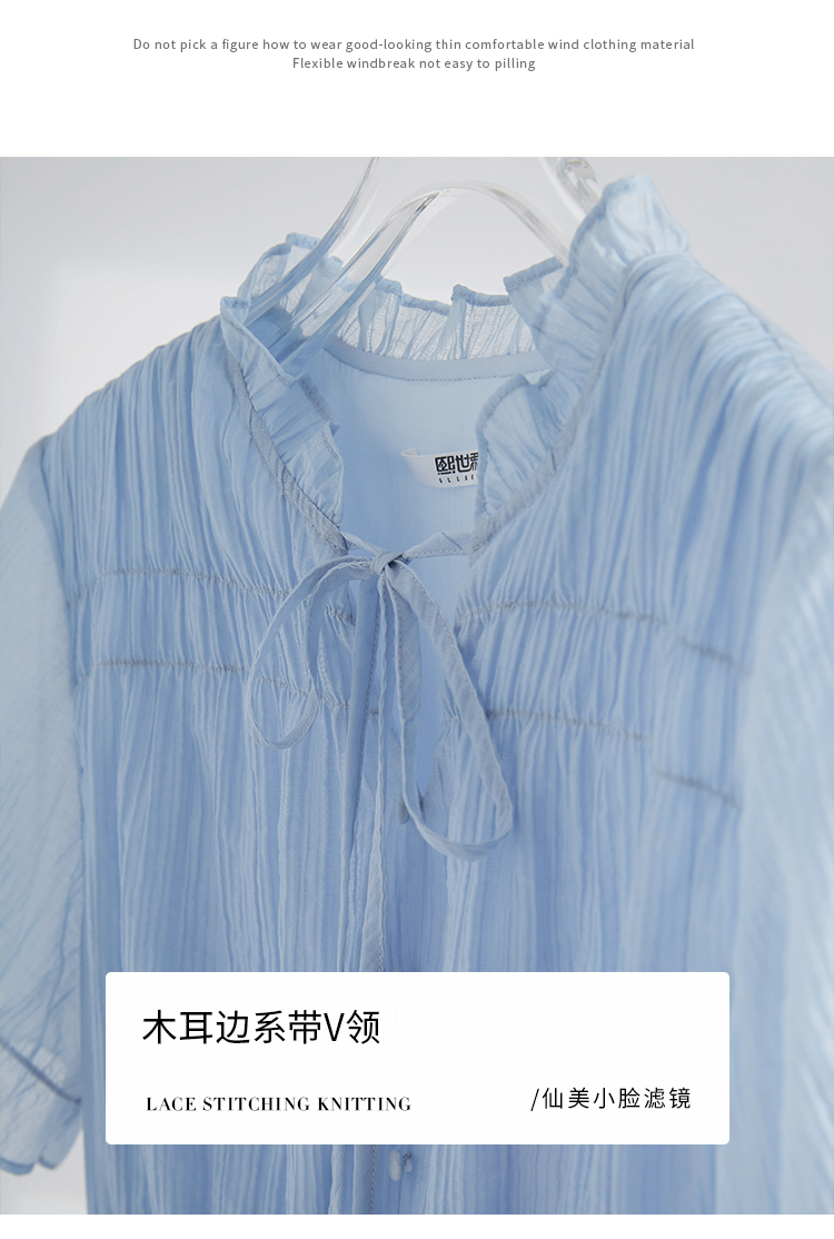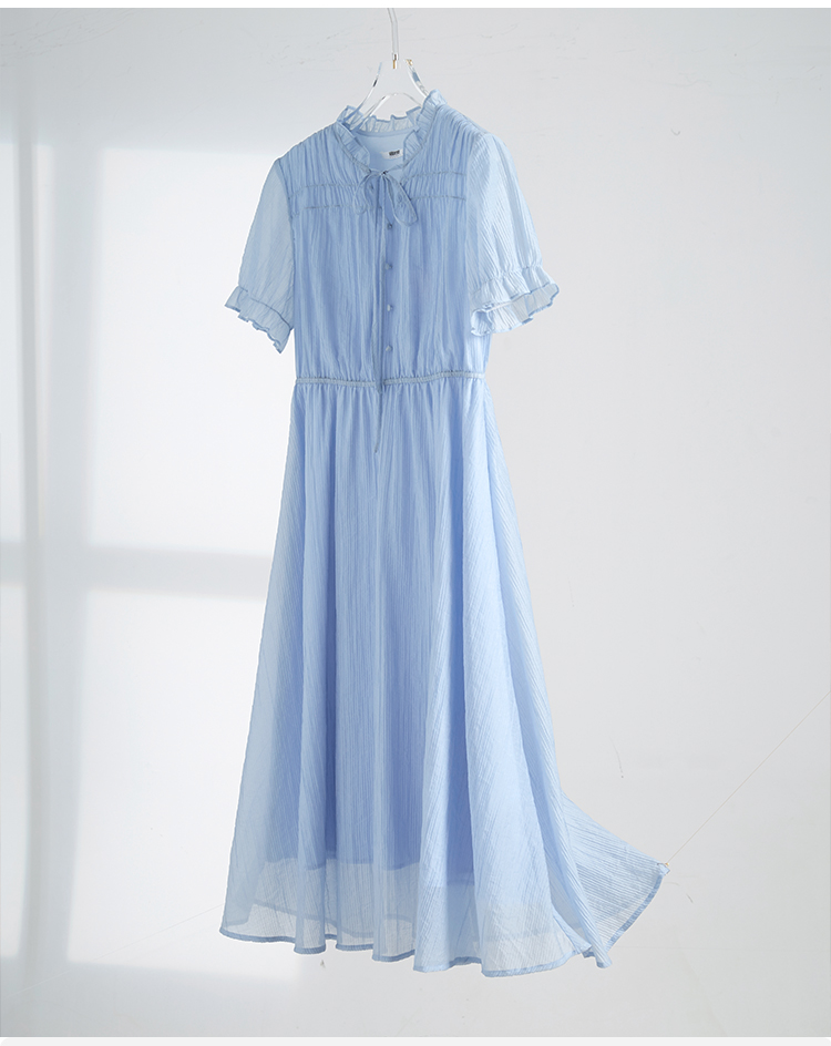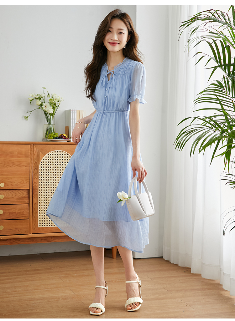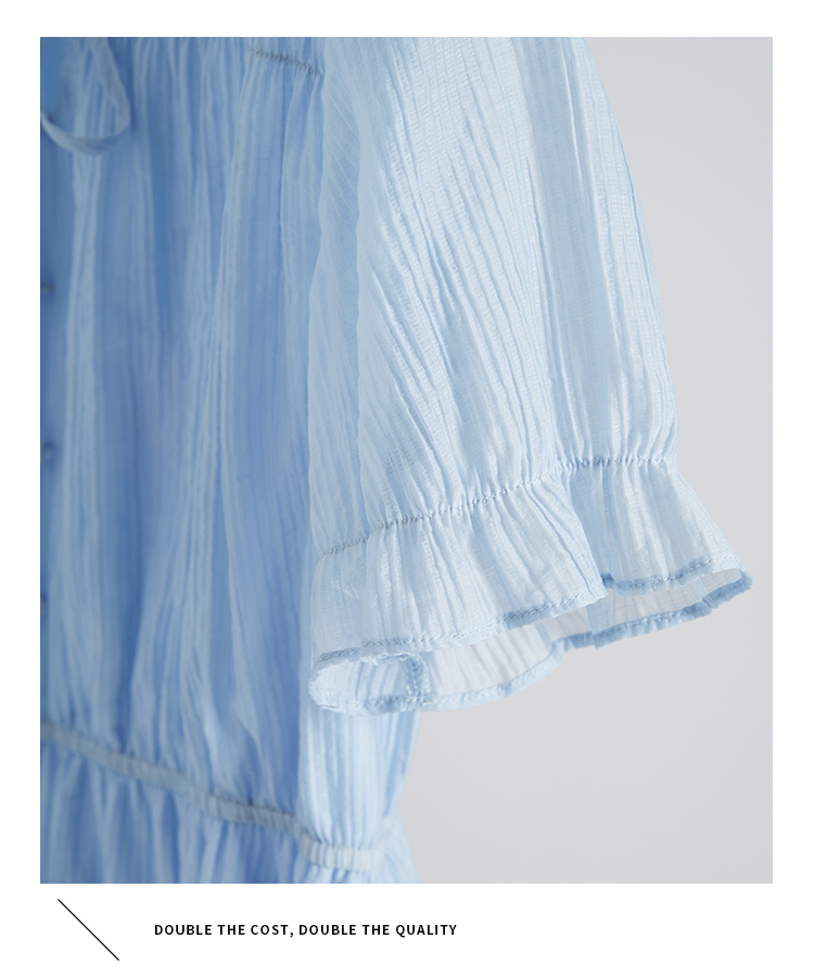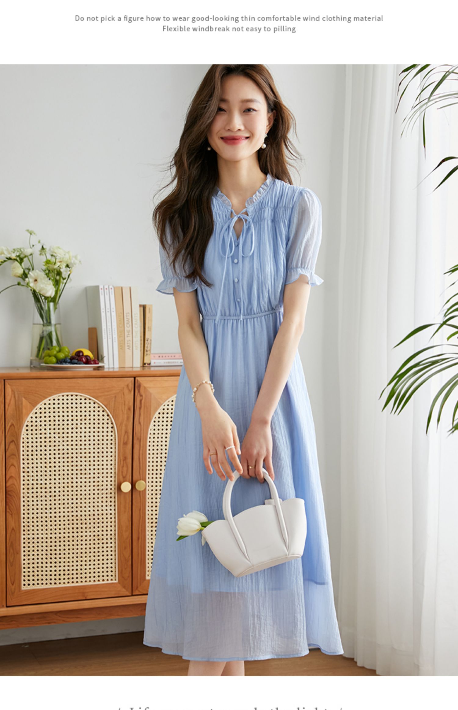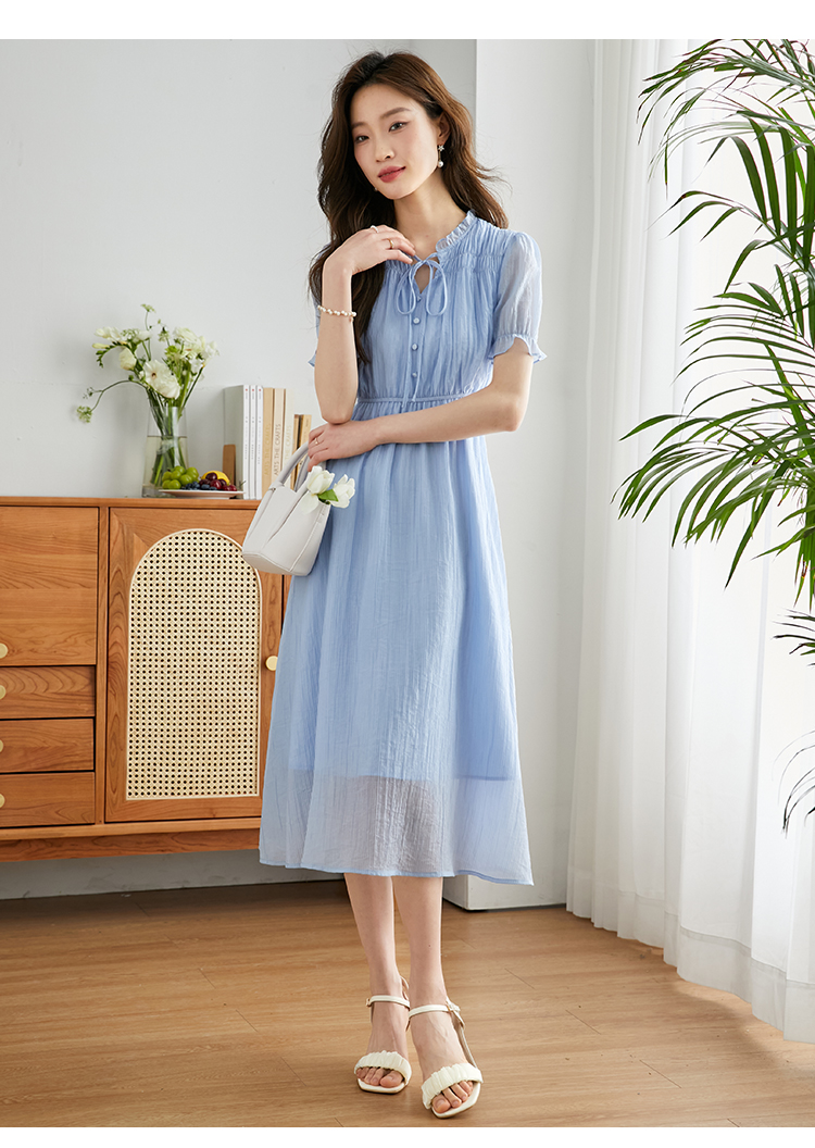 【专属特价】熙世界褶皱肌理质感天丝连衣裙女收腰气质水雾蓝仙女裙子2025夏季