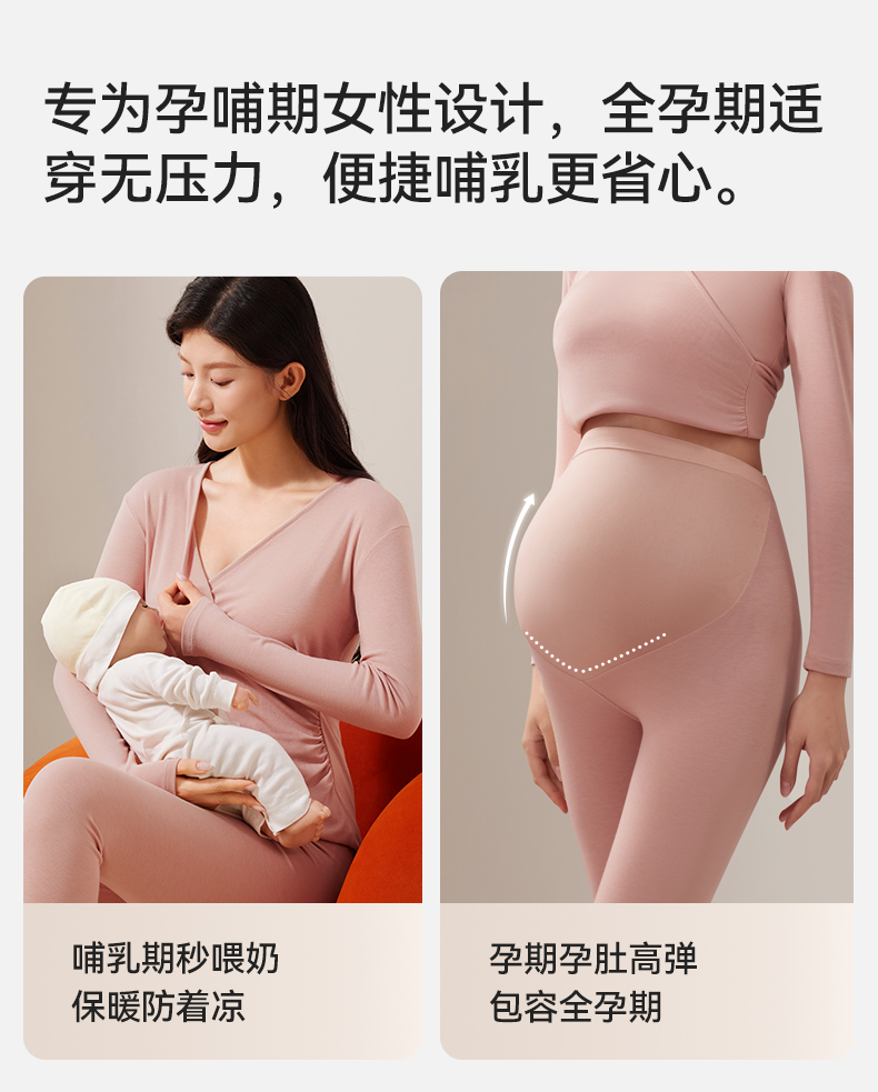 【满99-20/199-50】孕妇秋衣秋裤套装孕期产后哺乳睡衣保暖内衣冬季