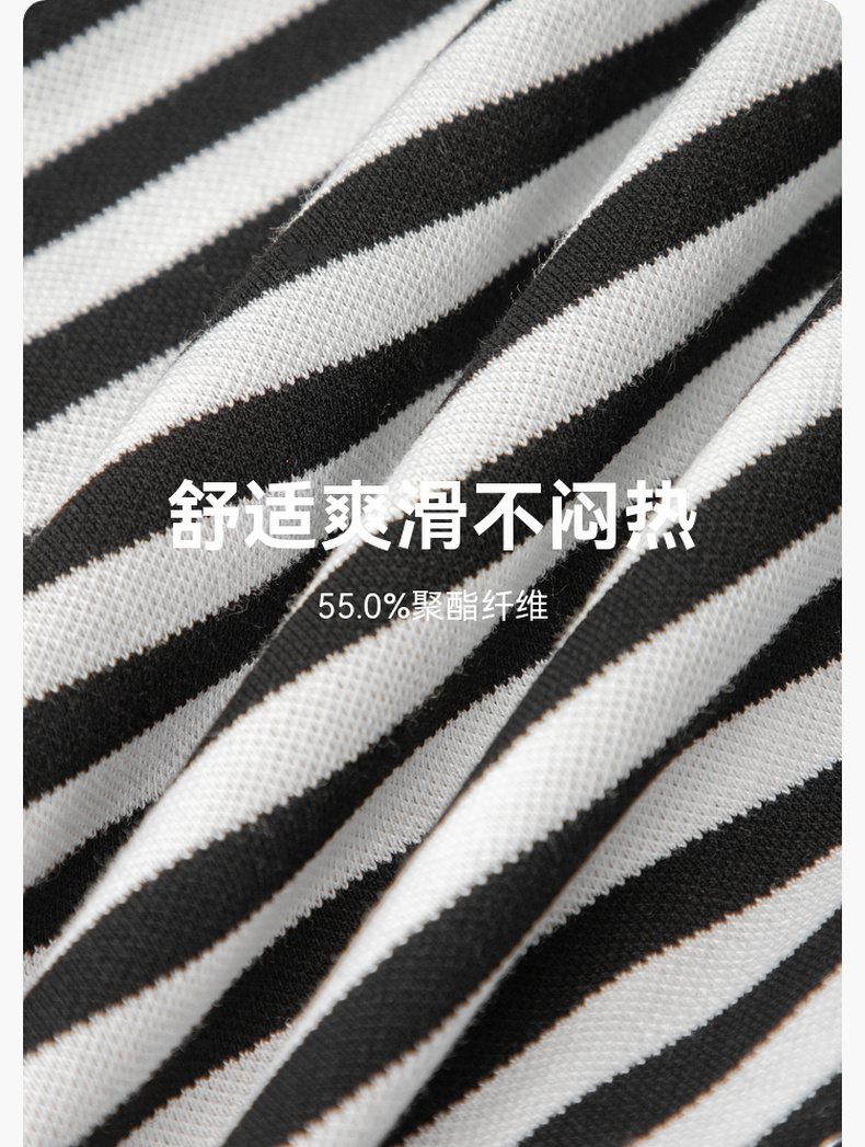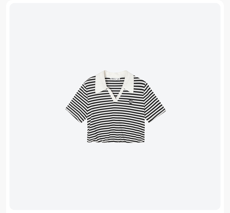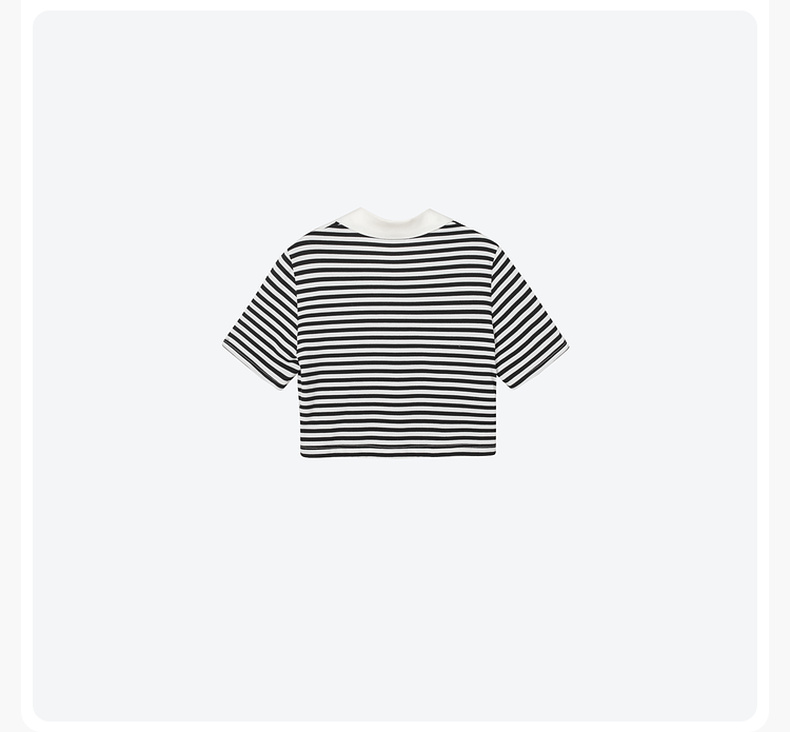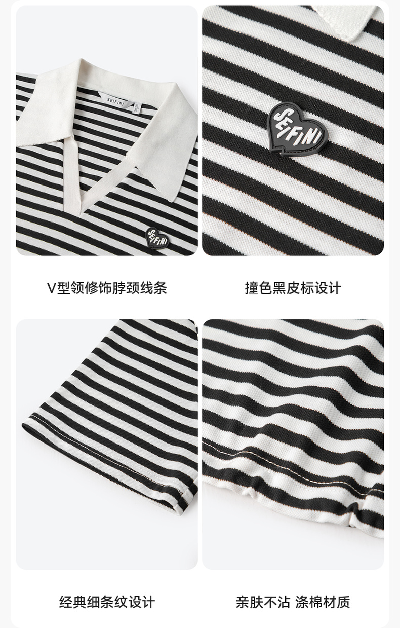 【积分换购不退货】【特惠不退货】诗凡黎条纹T恤2023夏季新款翻领黑白条韩式短款甜美减龄短袖3E5700711