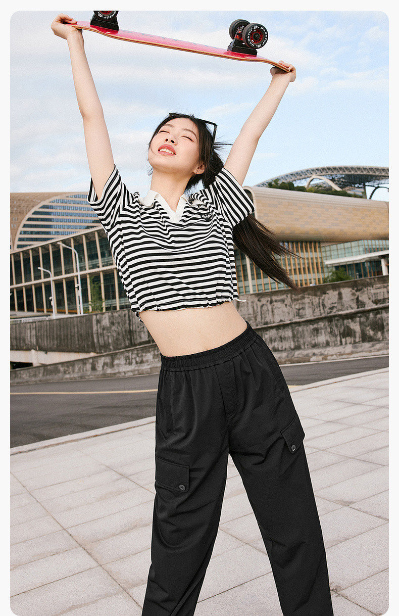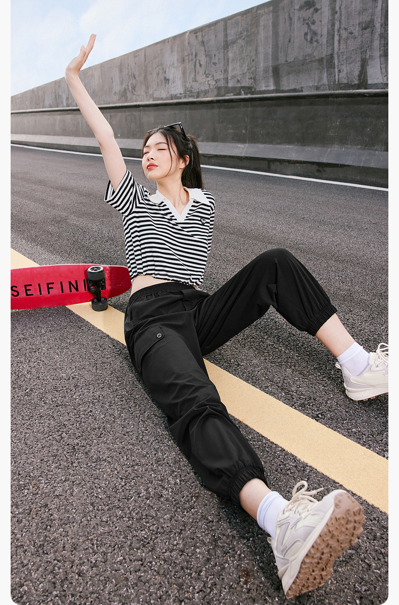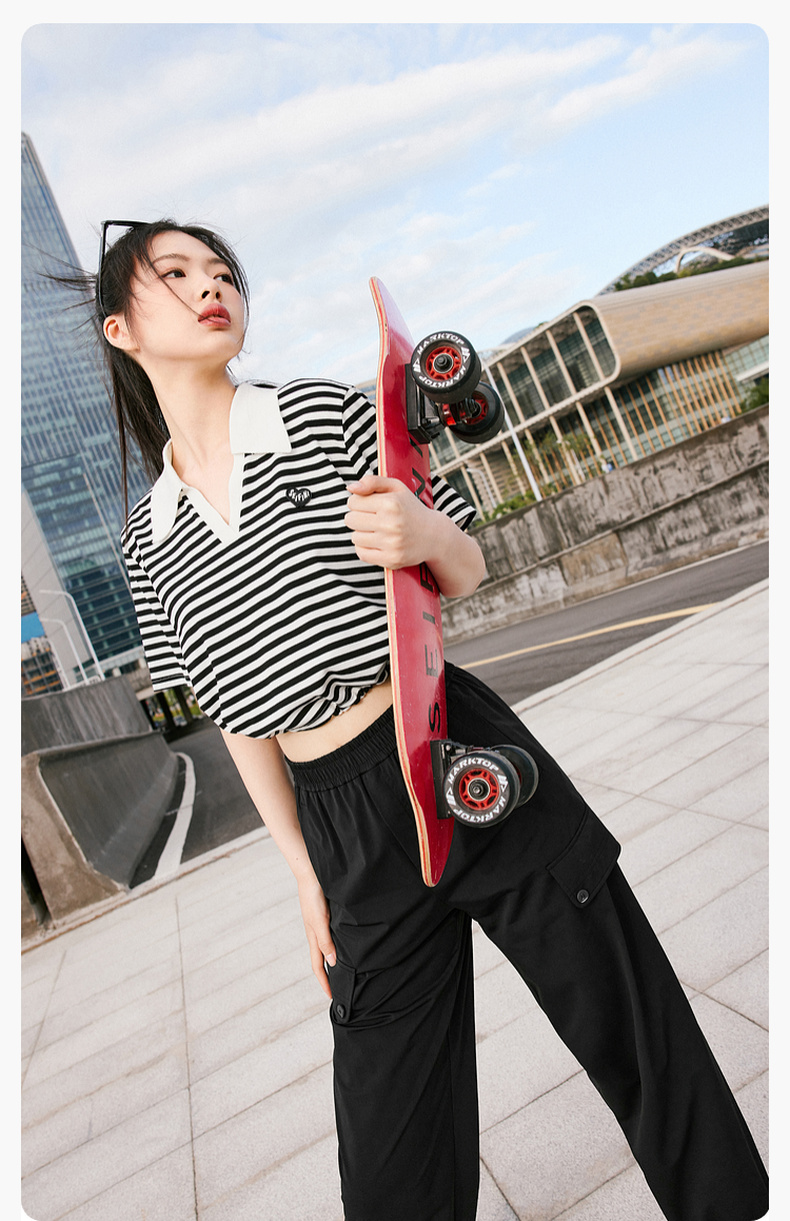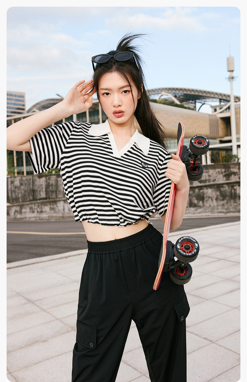 【积分换购不退货】【特惠不退货】诗凡黎条纹T恤2023夏季新款翻领黑白条韩式短款甜美减龄短袖3E5700711