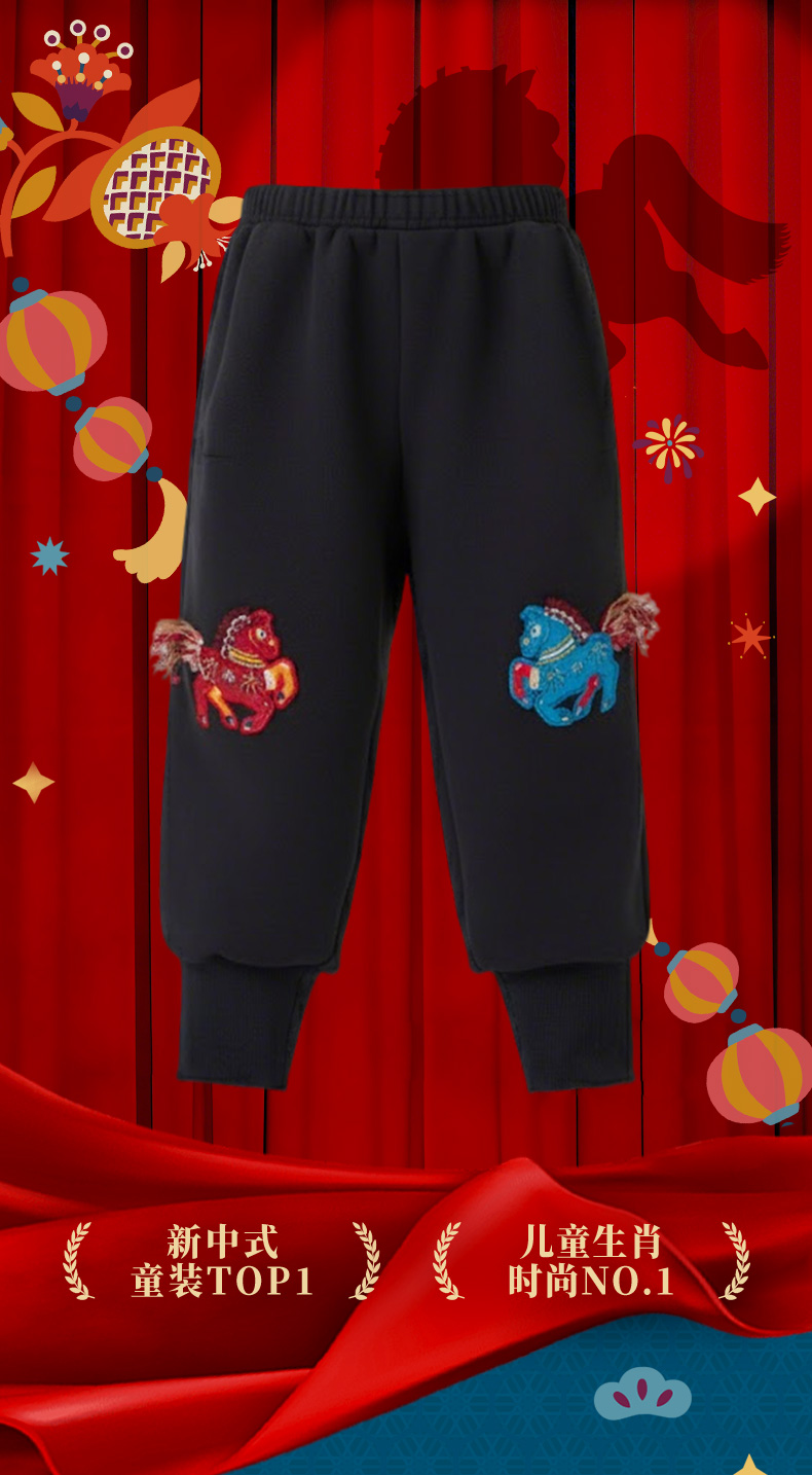 *【年衣】儿童长裤男女童秋冬新款国风加绒卫裤宝宝运动利马出发长裤