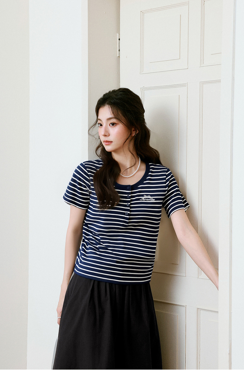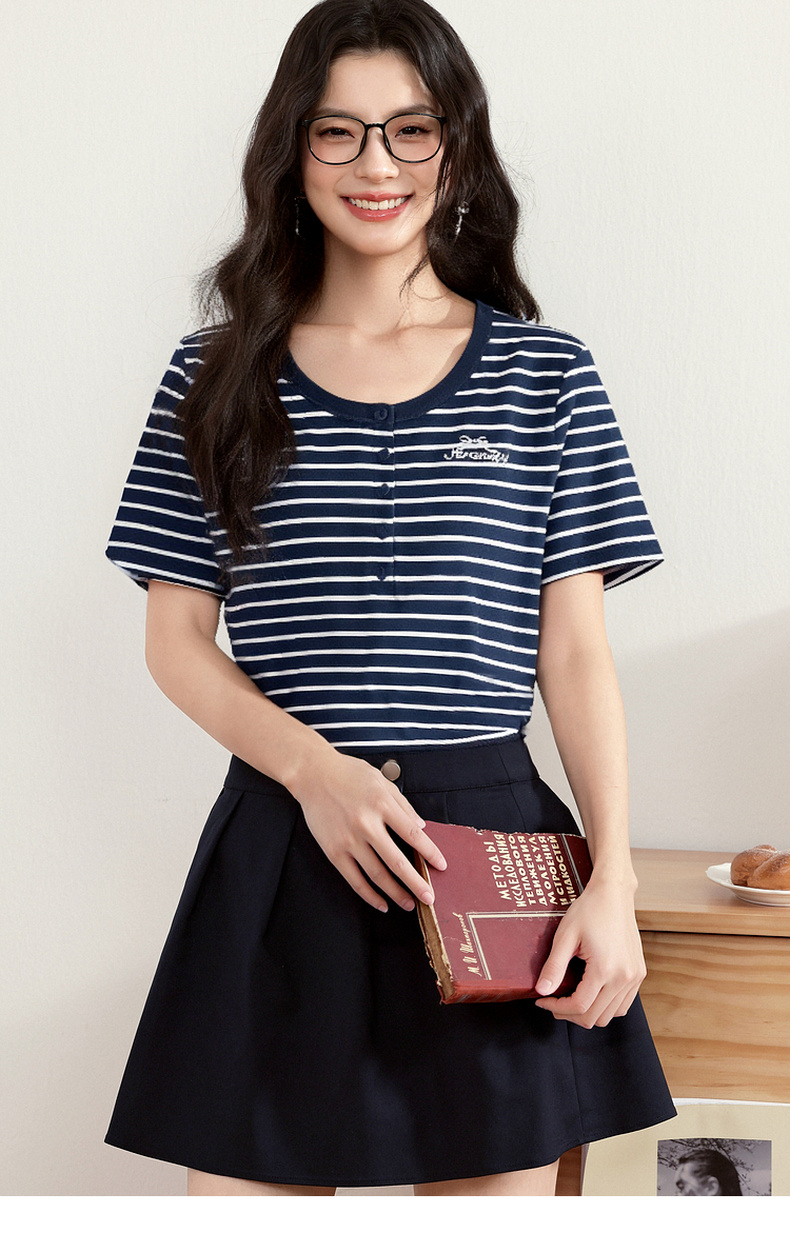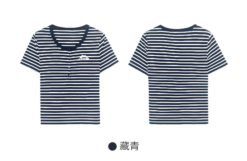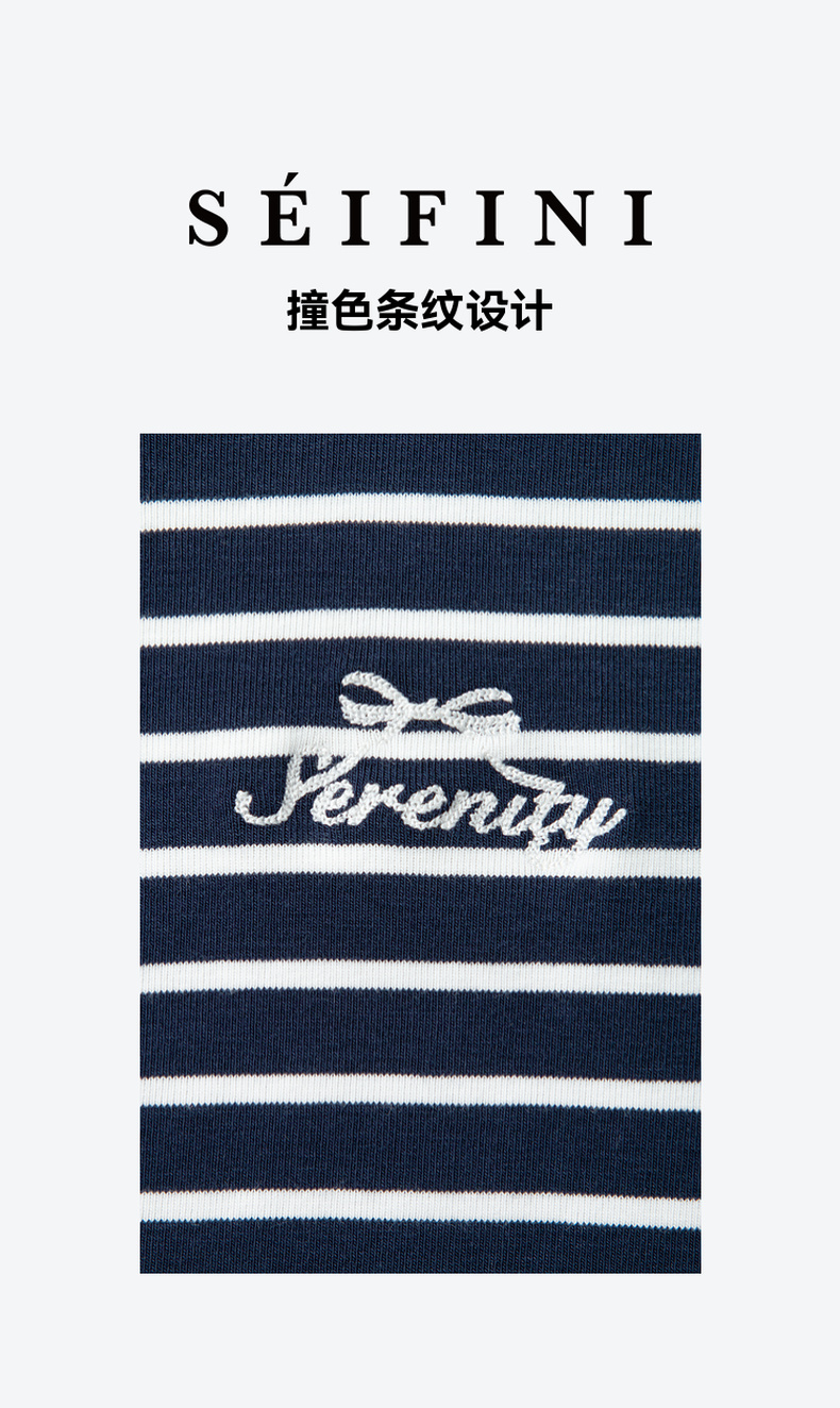 【积分换购不退货】【特惠不退货】诗凡黎圆领条纹T恤2024夏新款洋气短袖上衣3F5200521