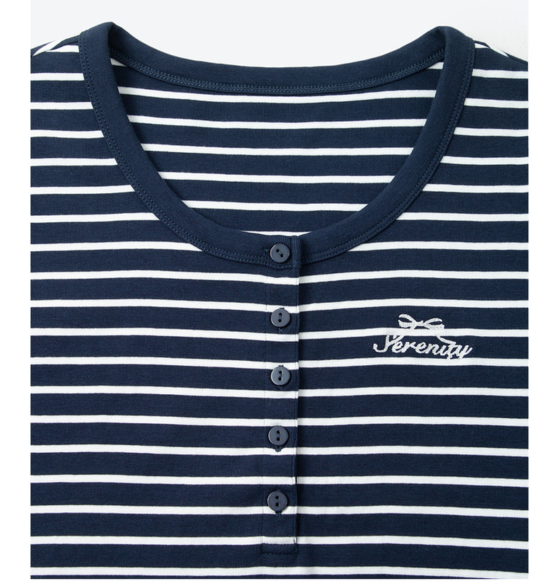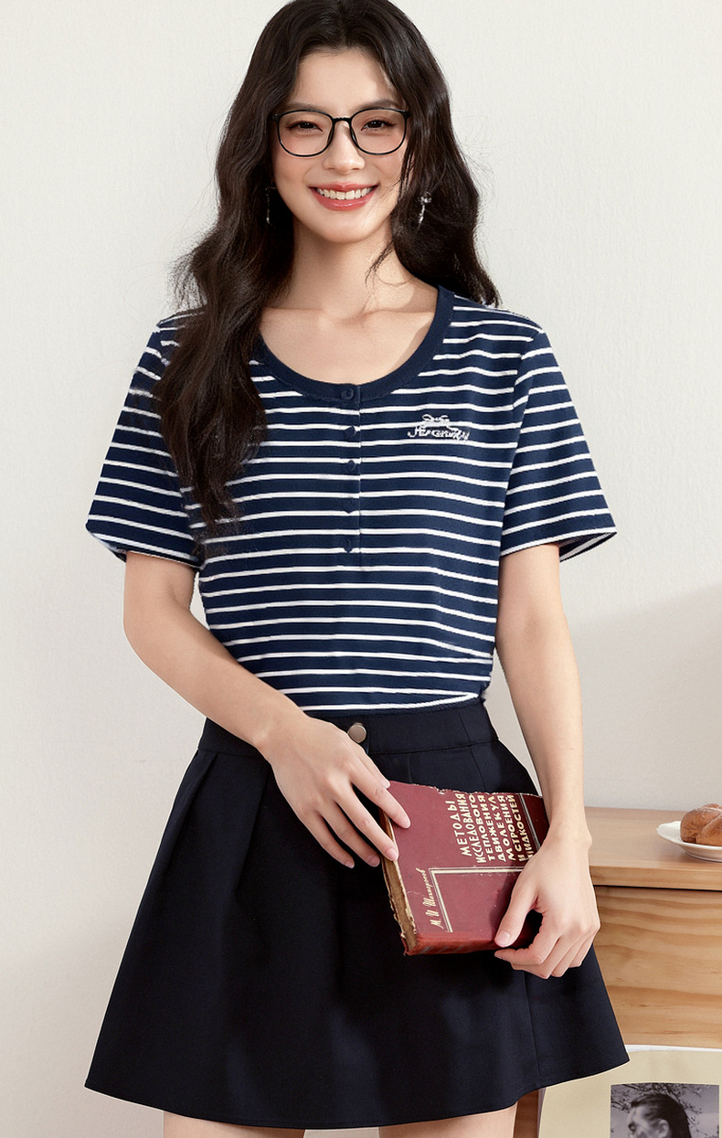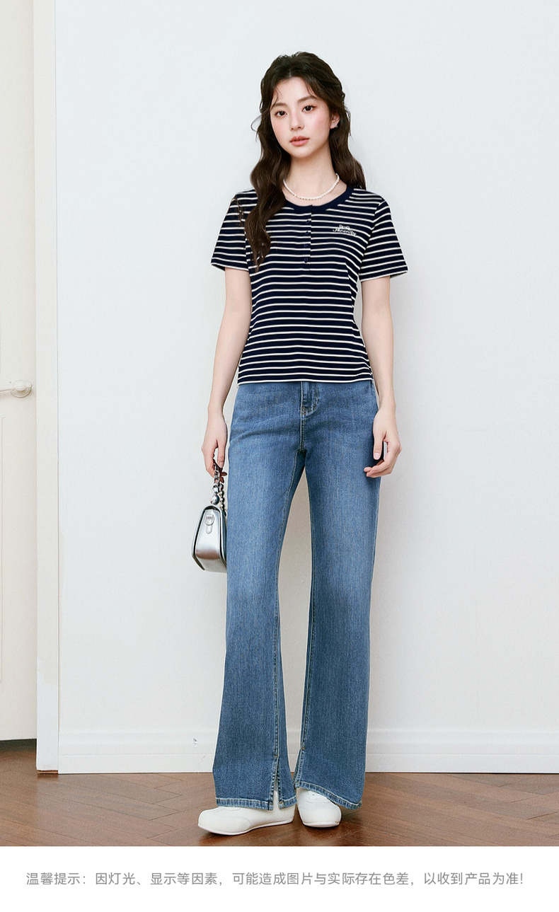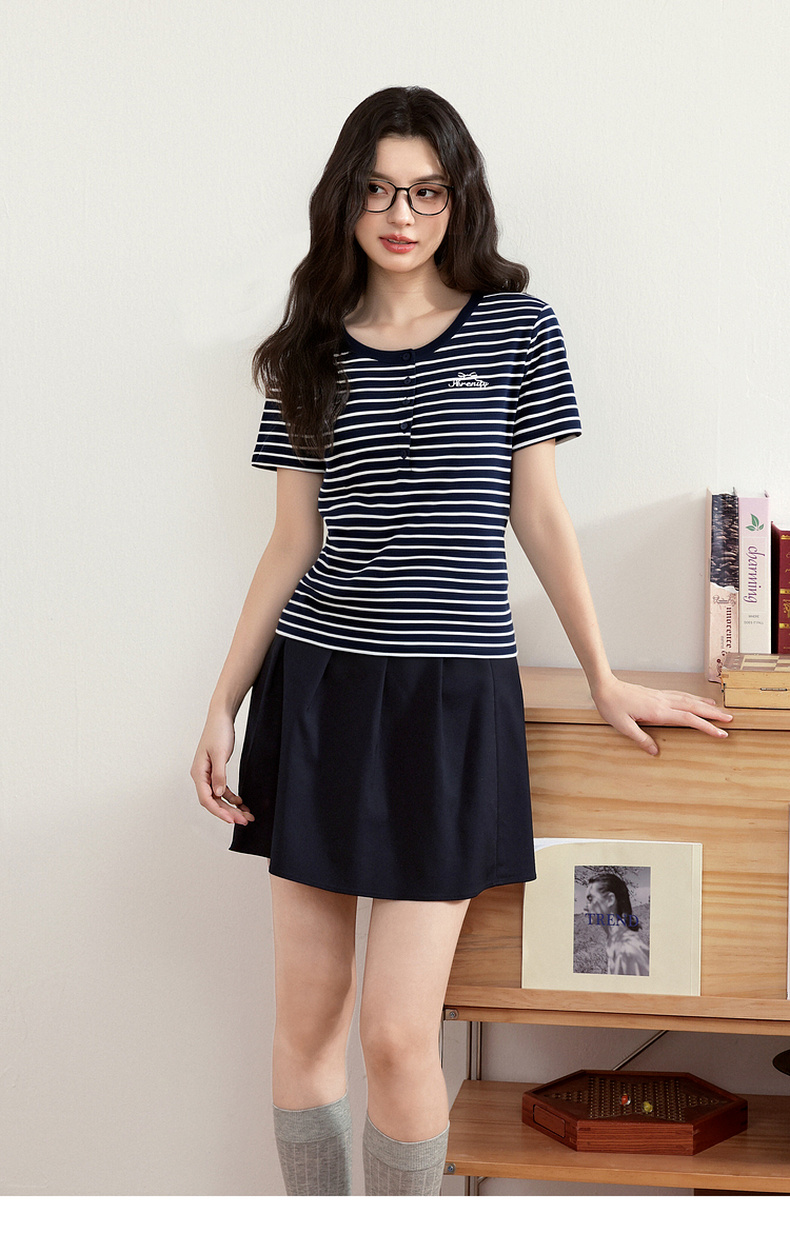 【积分换购不退货】【特惠不退货】诗凡黎圆领条纹T恤2024夏新款洋气短袖上衣3F5200521