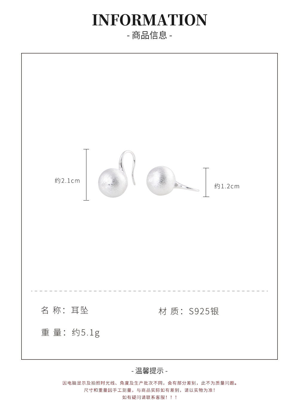【素心流年】S925银素银拉丝工艺圆球耳饰【SCH-SY33372】