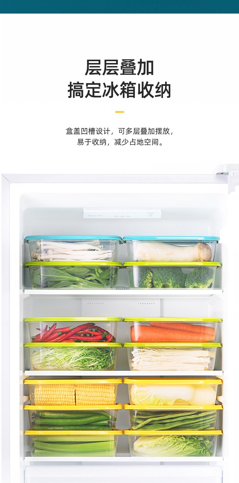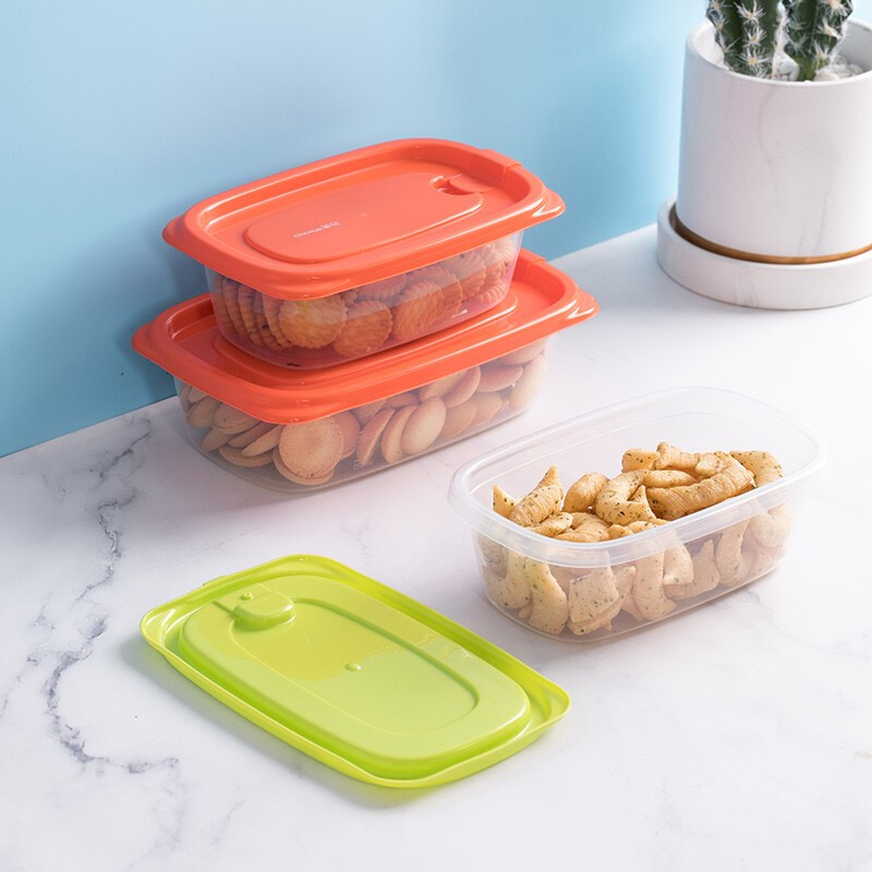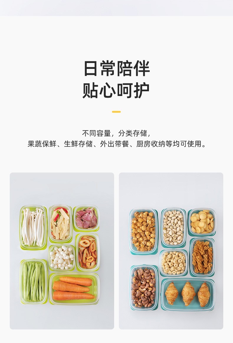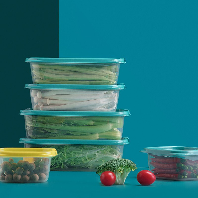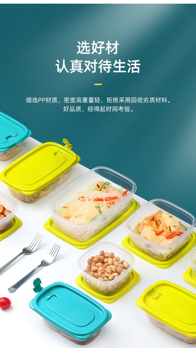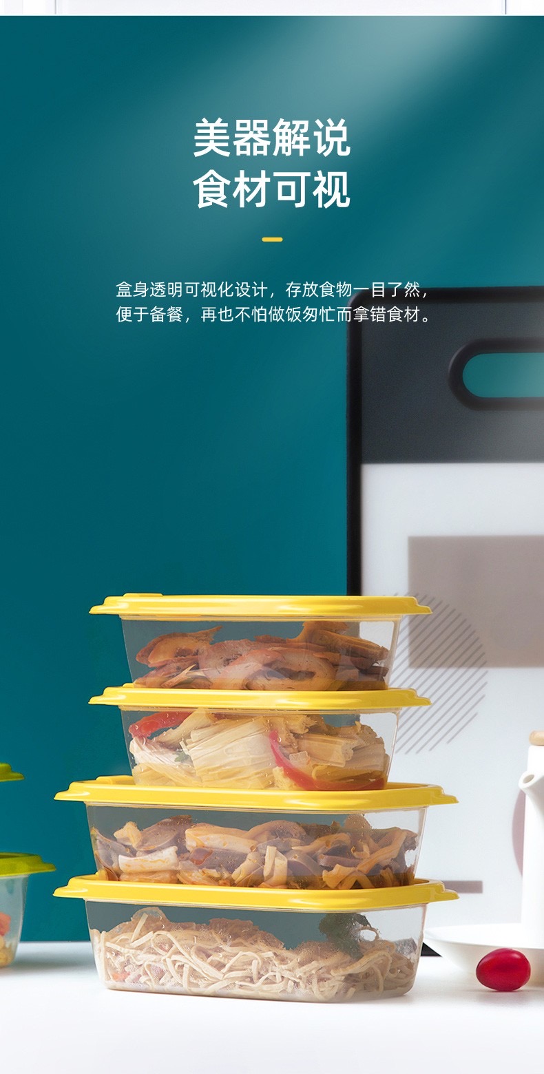 茶花贝格保鲜盒 塑料冰箱保鲜盒家用水果蔬菜收纳盒微波炉饭盒 黄色9个装-460ML正方形