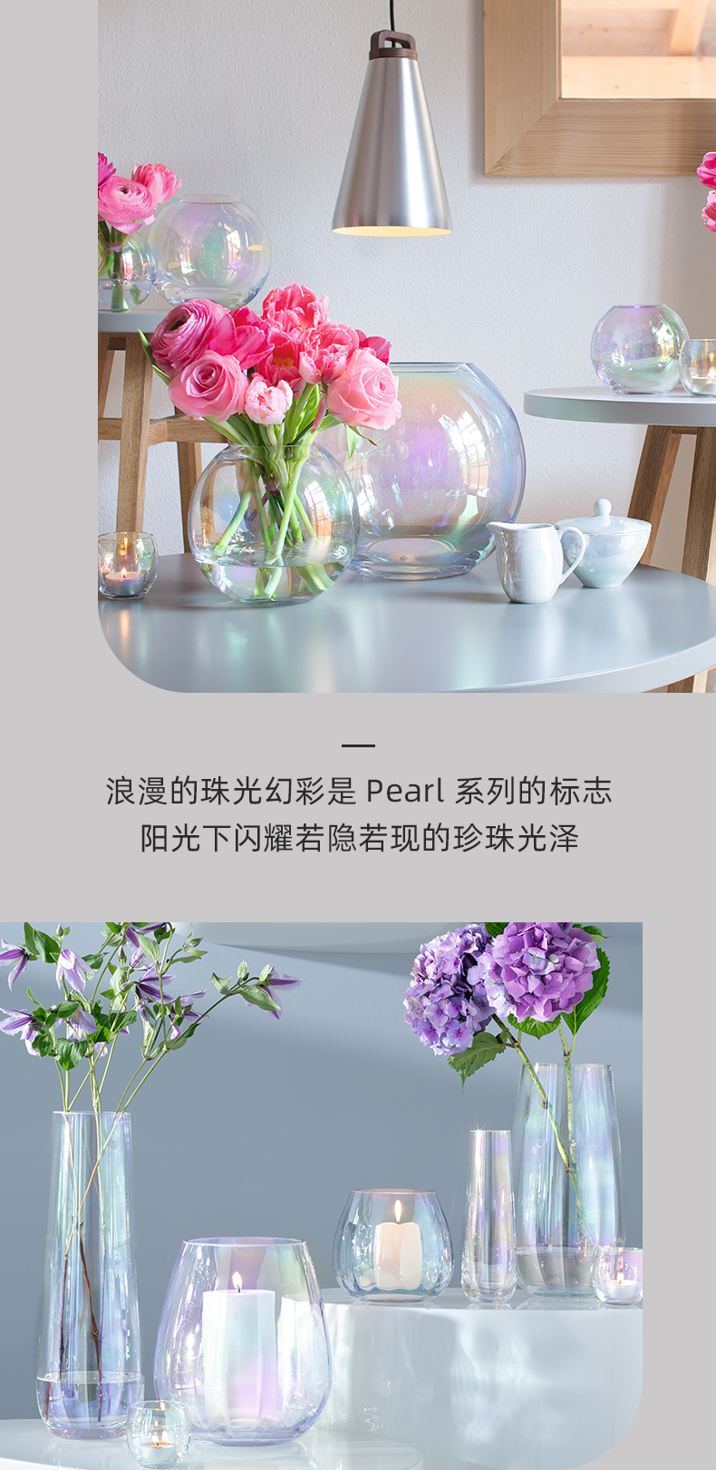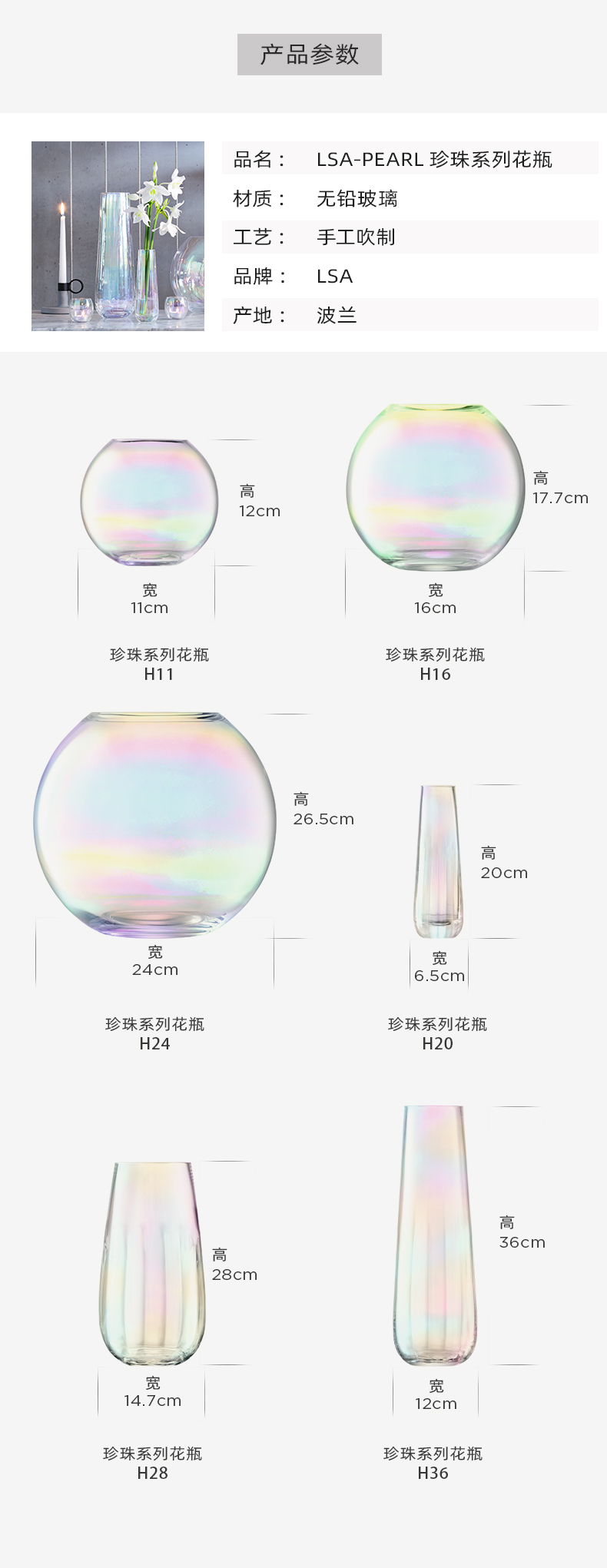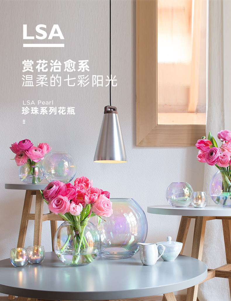 lsa花瓶PEARL彩虹玻璃客厅小摆件透明欧式轻奢创意高级感插花装饰