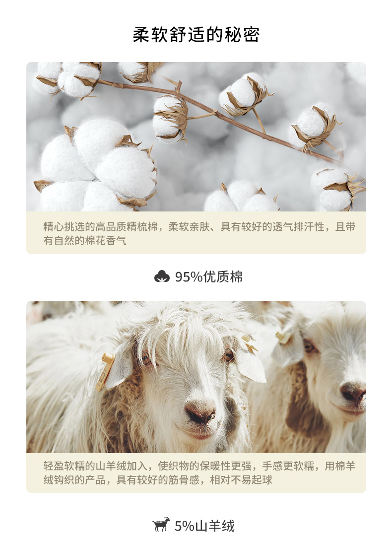| 材质成分: 棉95% 山羊绒(羊绒)5% |