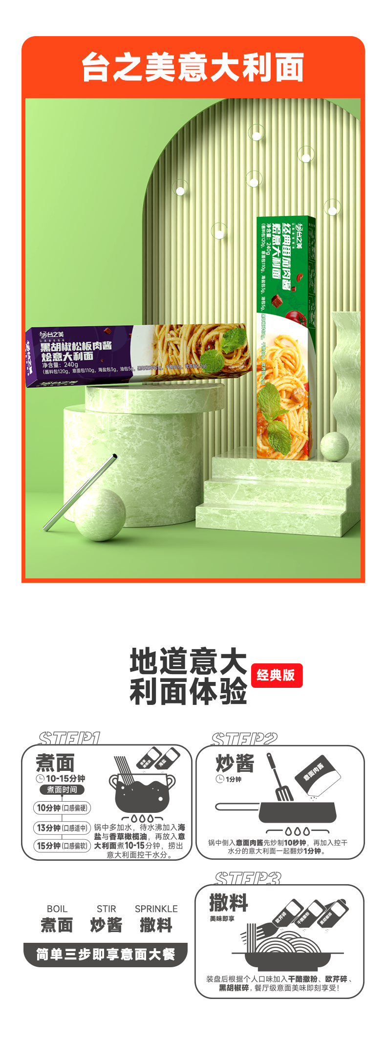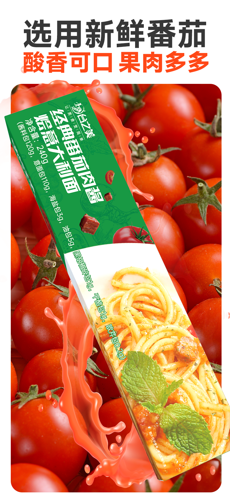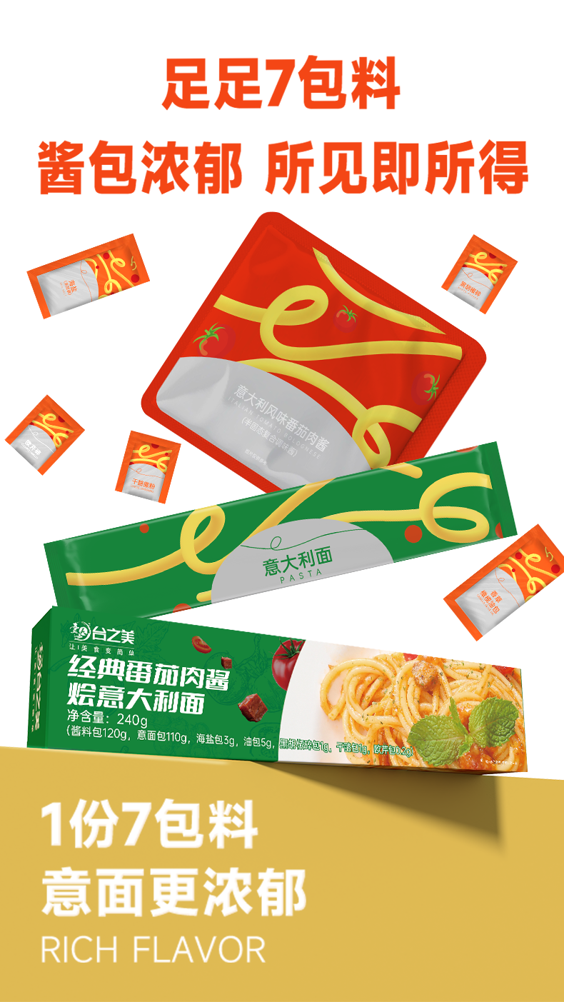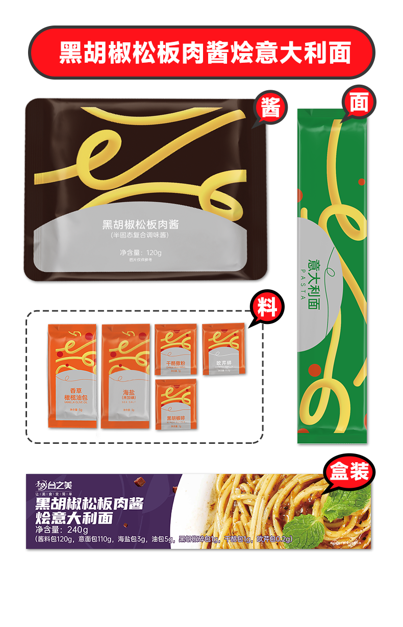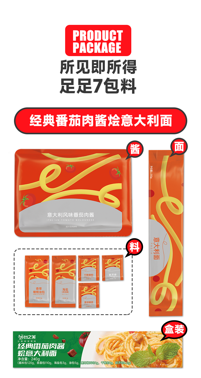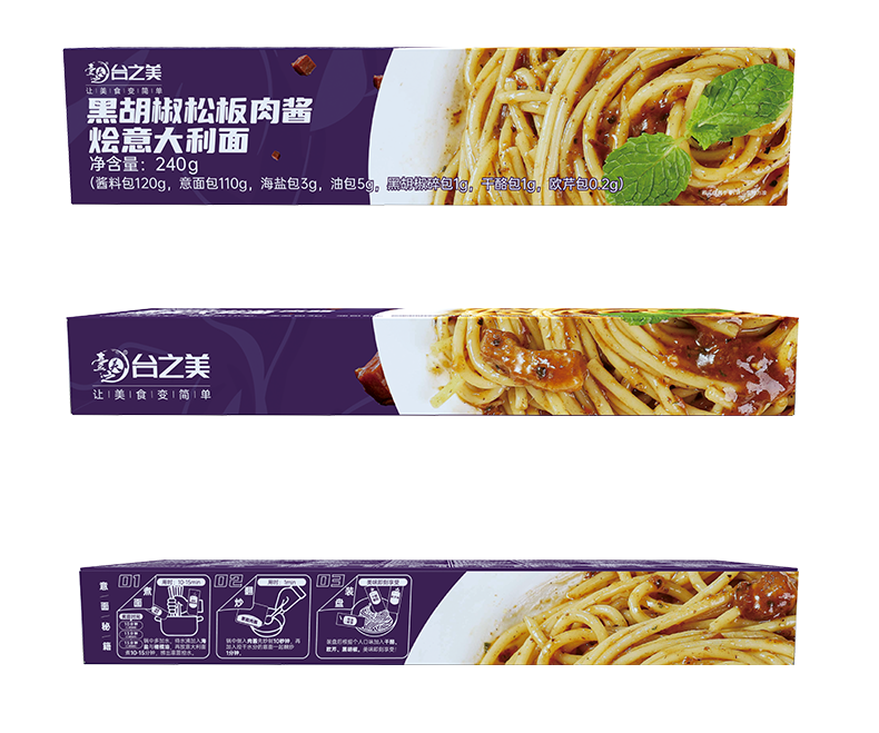 自营-(台之美)经典番茄黑椒肉酱烩意面240克/盒 肉酱营养儿童面条速食