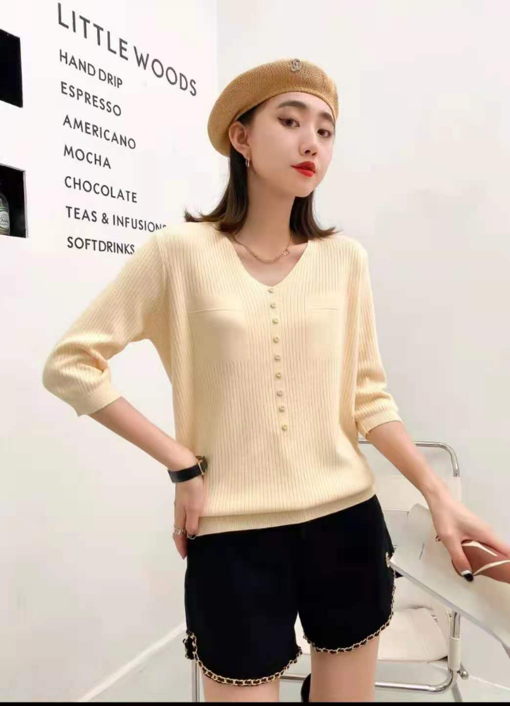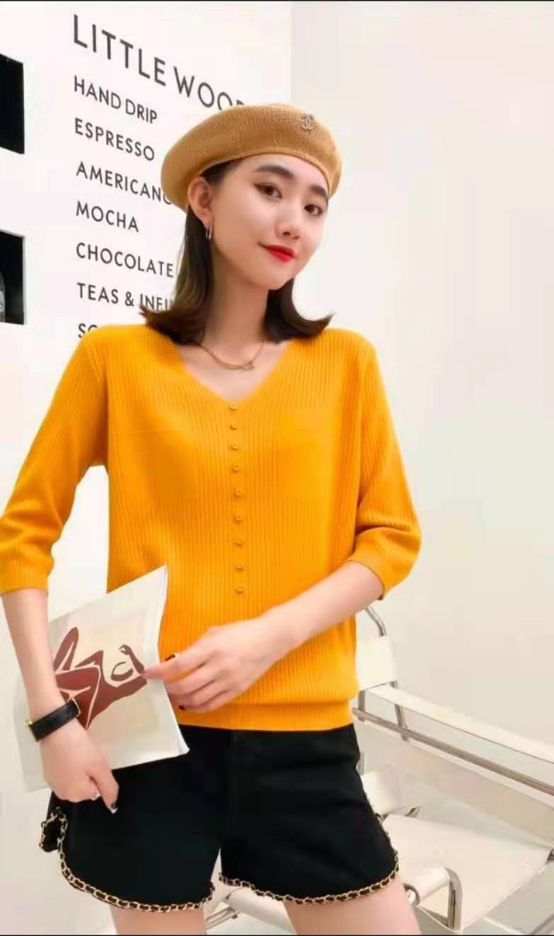 色彩之旅914中袖衫,均码,四个颜色,白,黄,黑,粉,90-140斤女士穿着,细线毛钱,很适合这个季节,