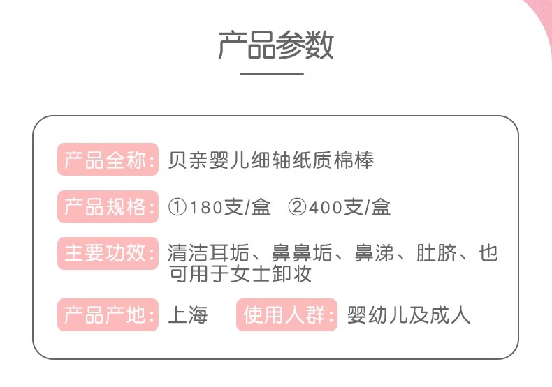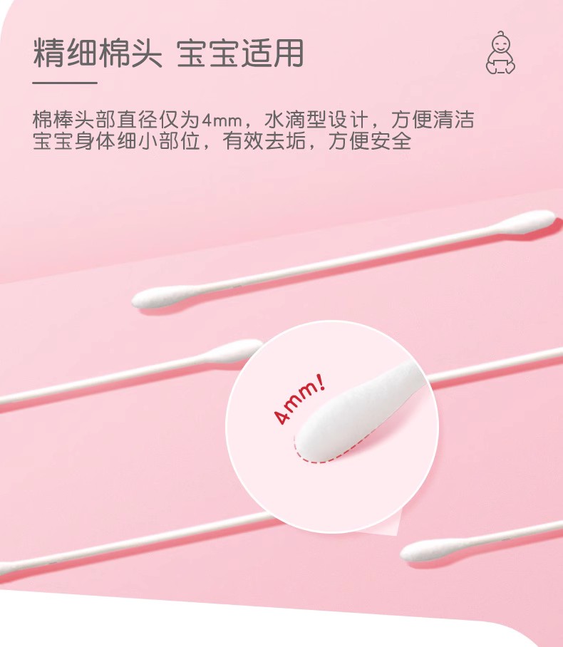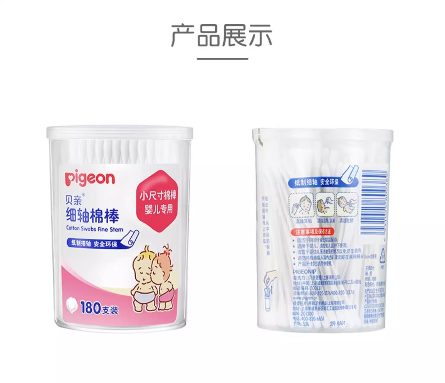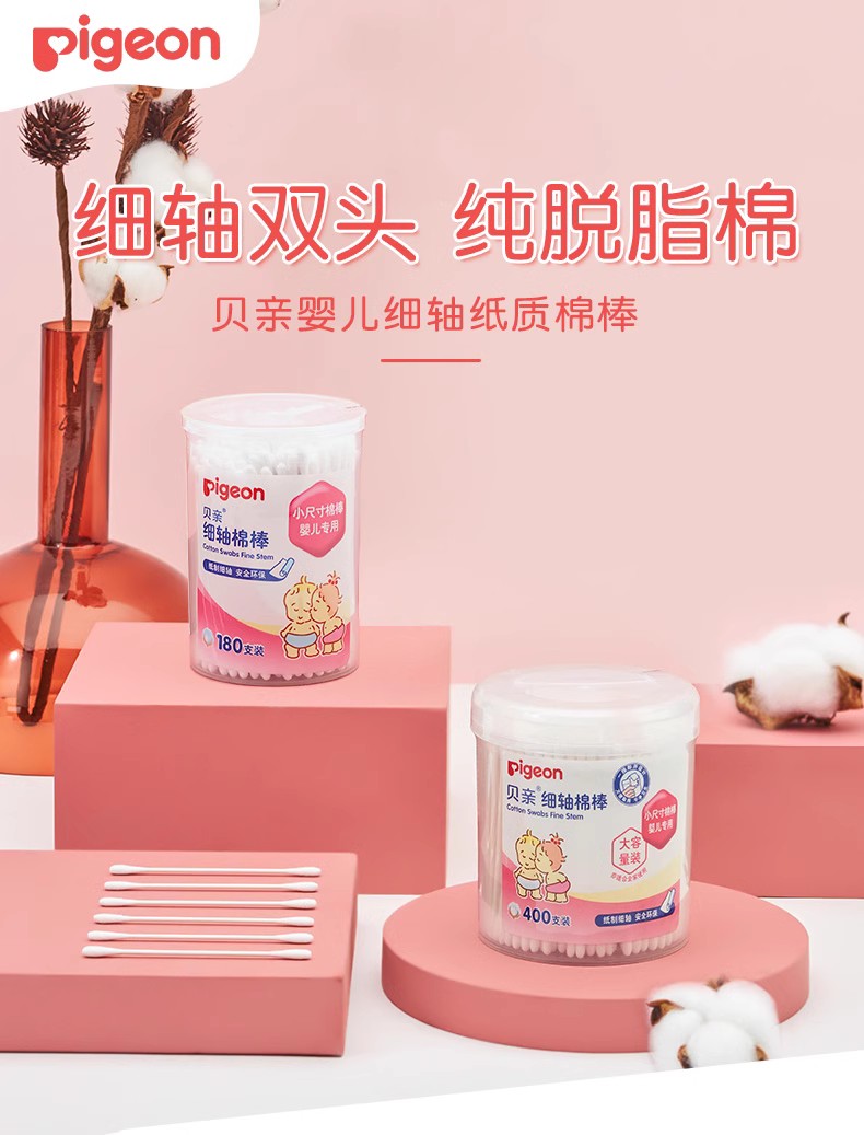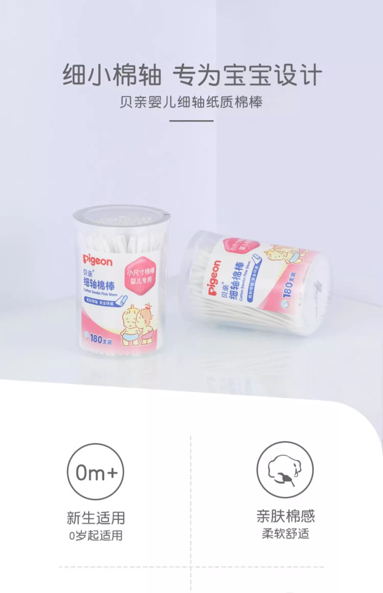 贝亲 婴儿棉签 新生宝宝专用乳牙耳鼻清洁细轴棉棒180支 粘着棉棒