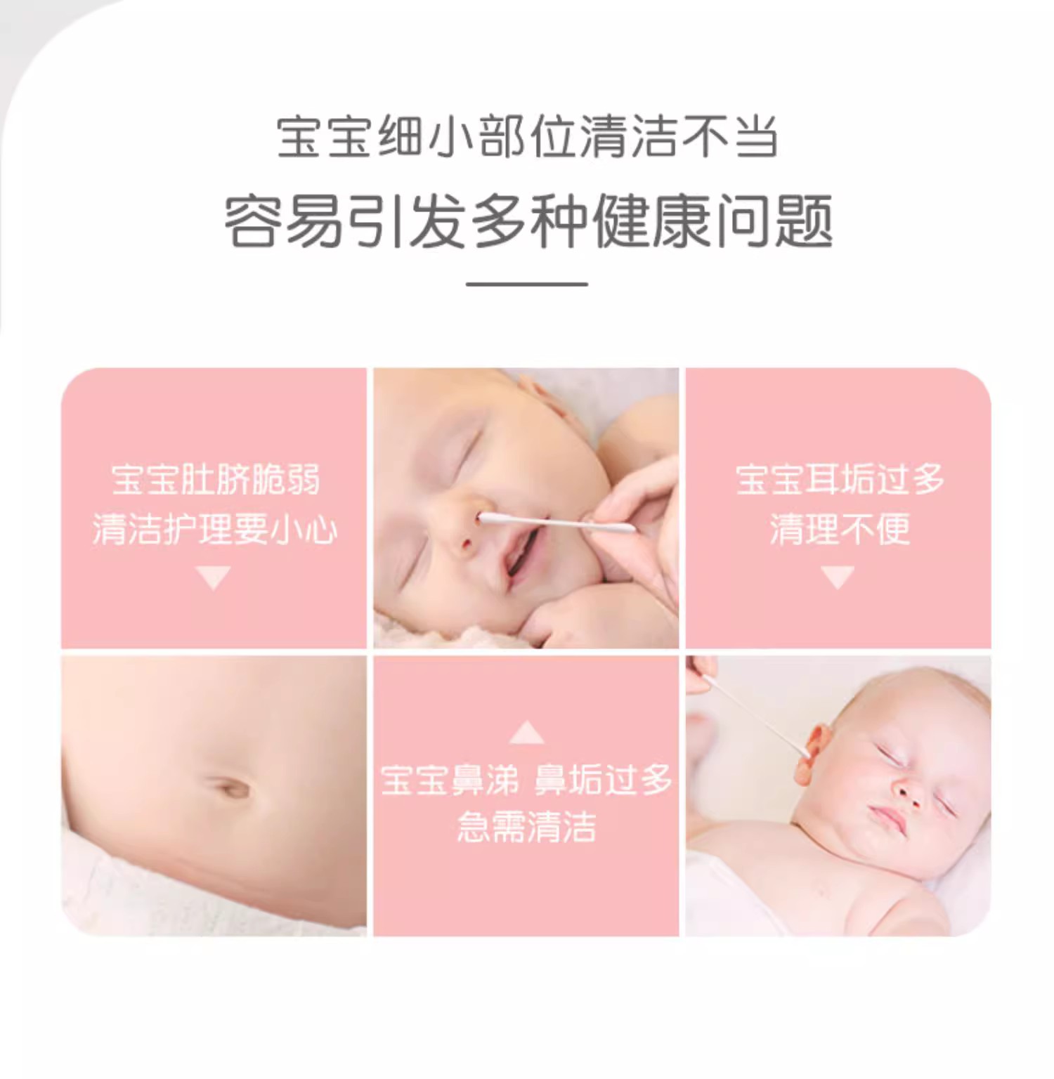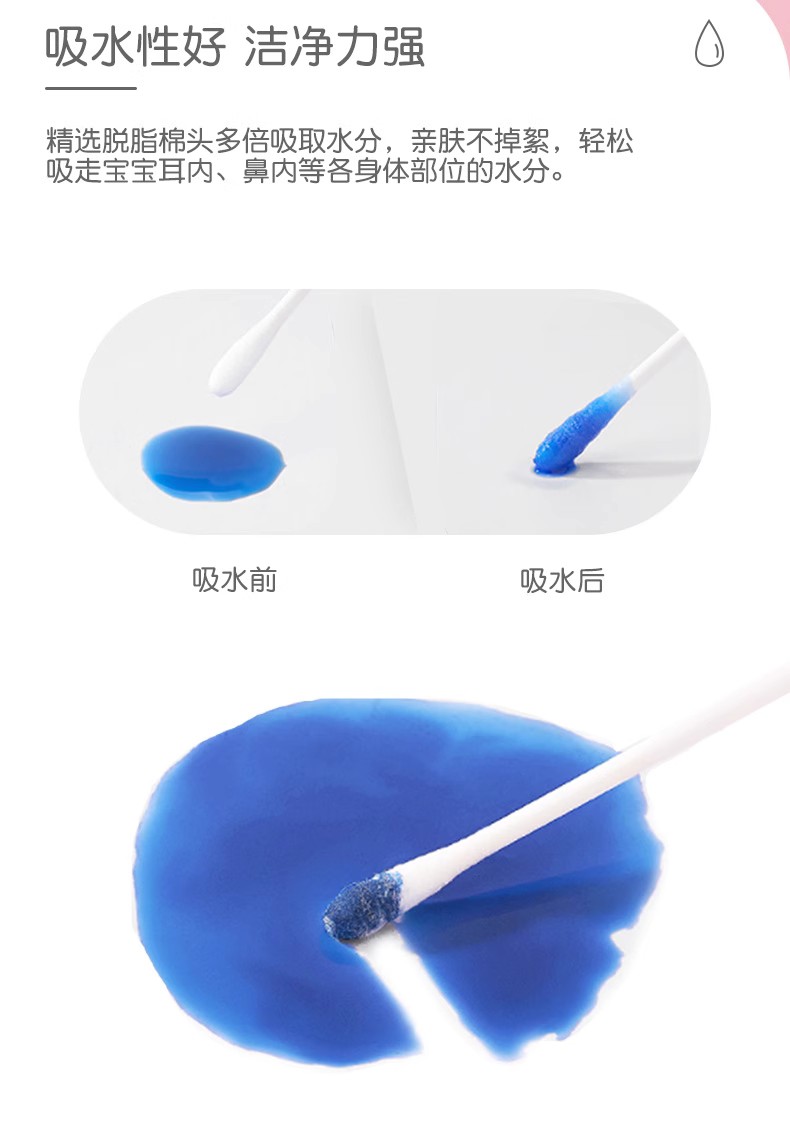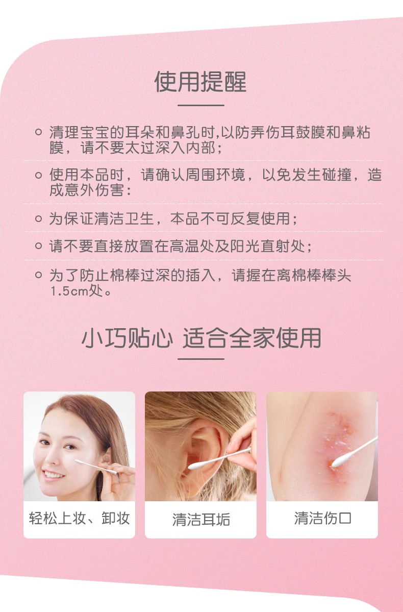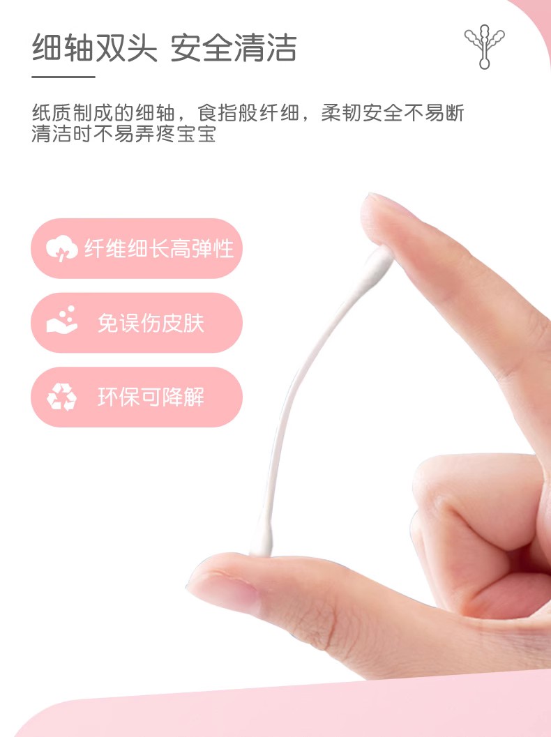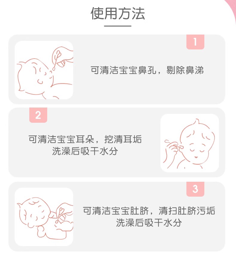 贝亲 婴儿棉签 新生宝宝专用乳牙耳鼻清洁细轴棉棒180支 粘着棉棒