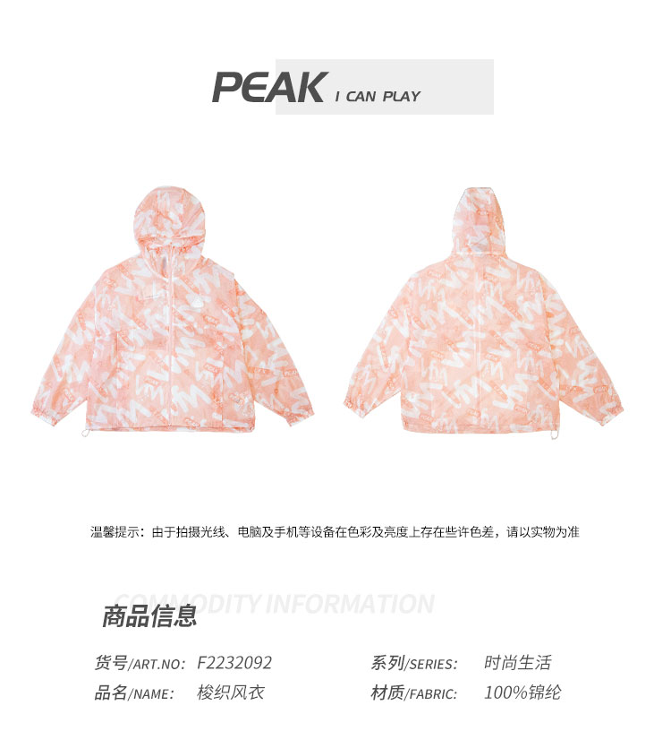 匹克女装PEAK运动梭织风衣 时尚休闲 皮肤风衣F2232092防晒衣服