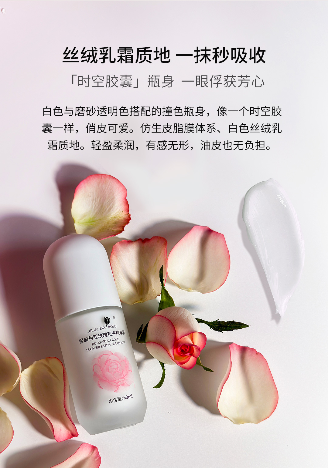 玫瑰花卉精萃乳60ml 素净 轻盈柔润