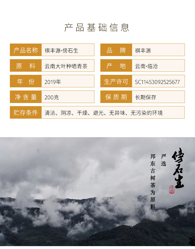 普洱丨祺丰源 茶王金奖合集 2019年 金版傍石生 200g