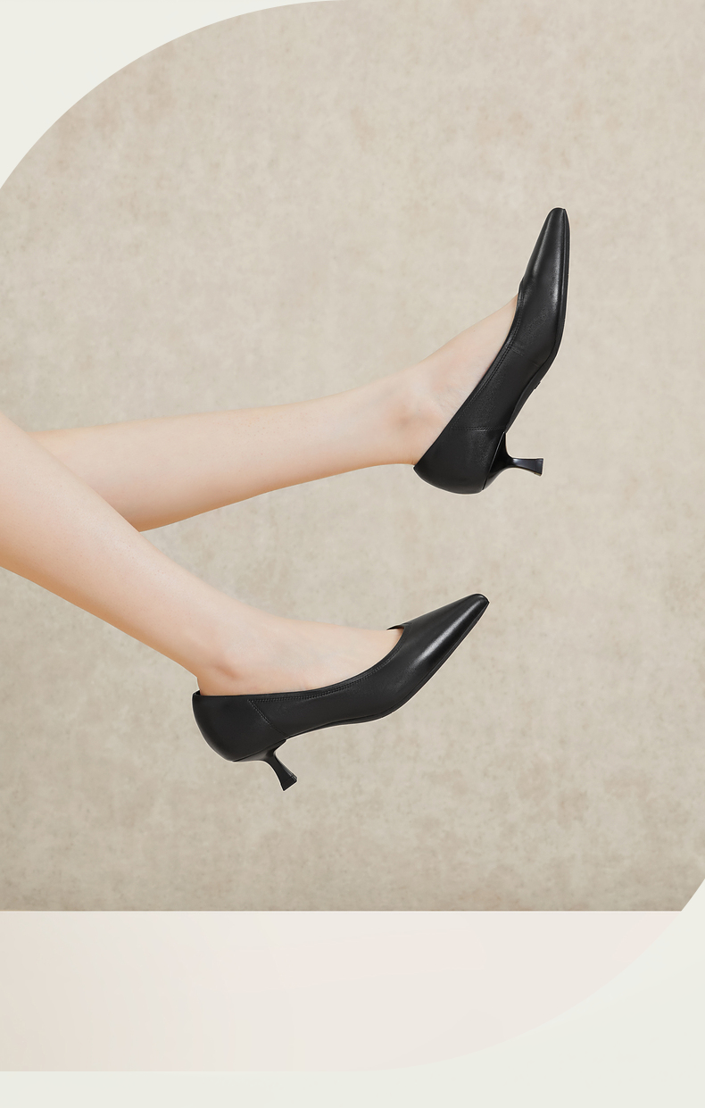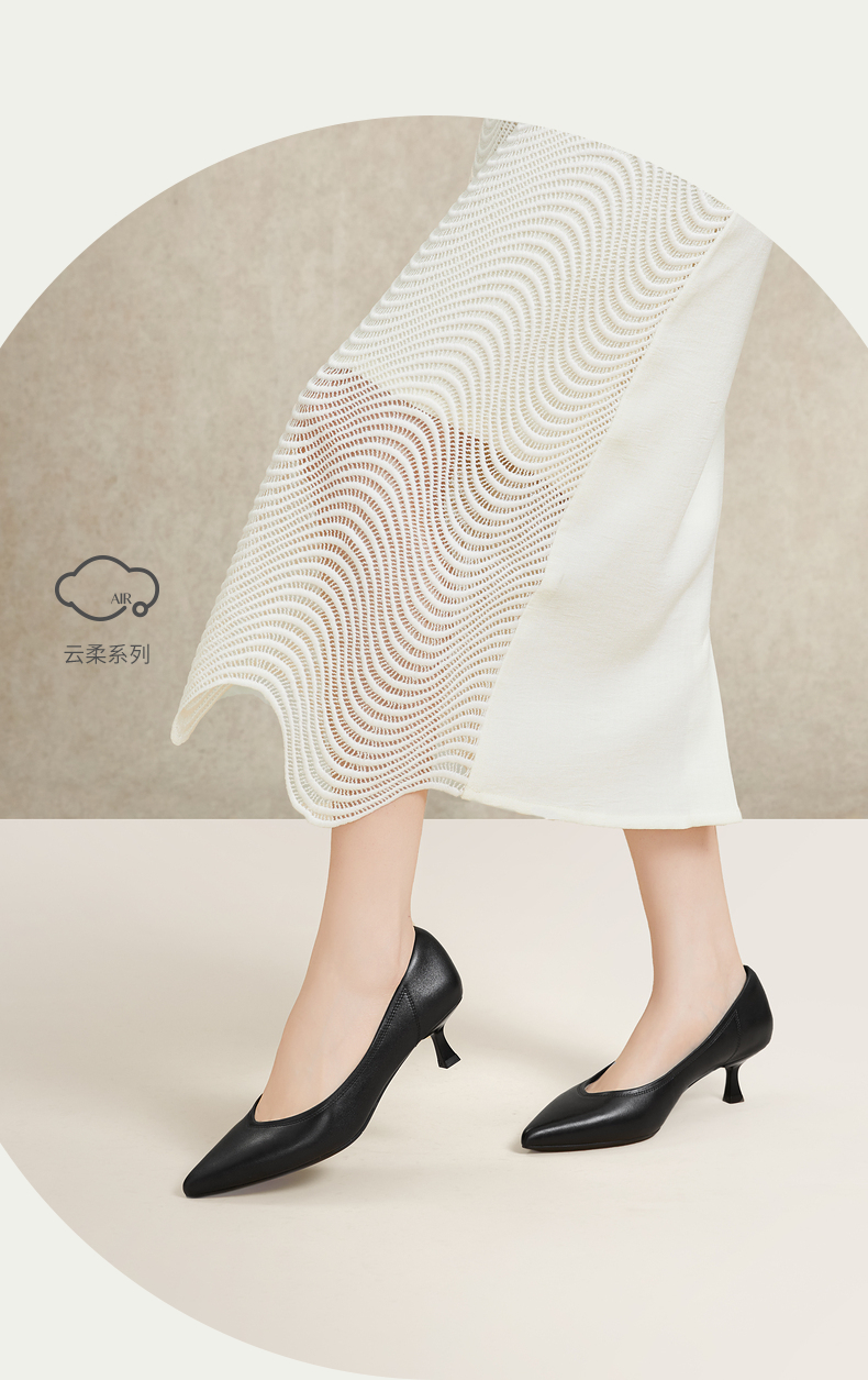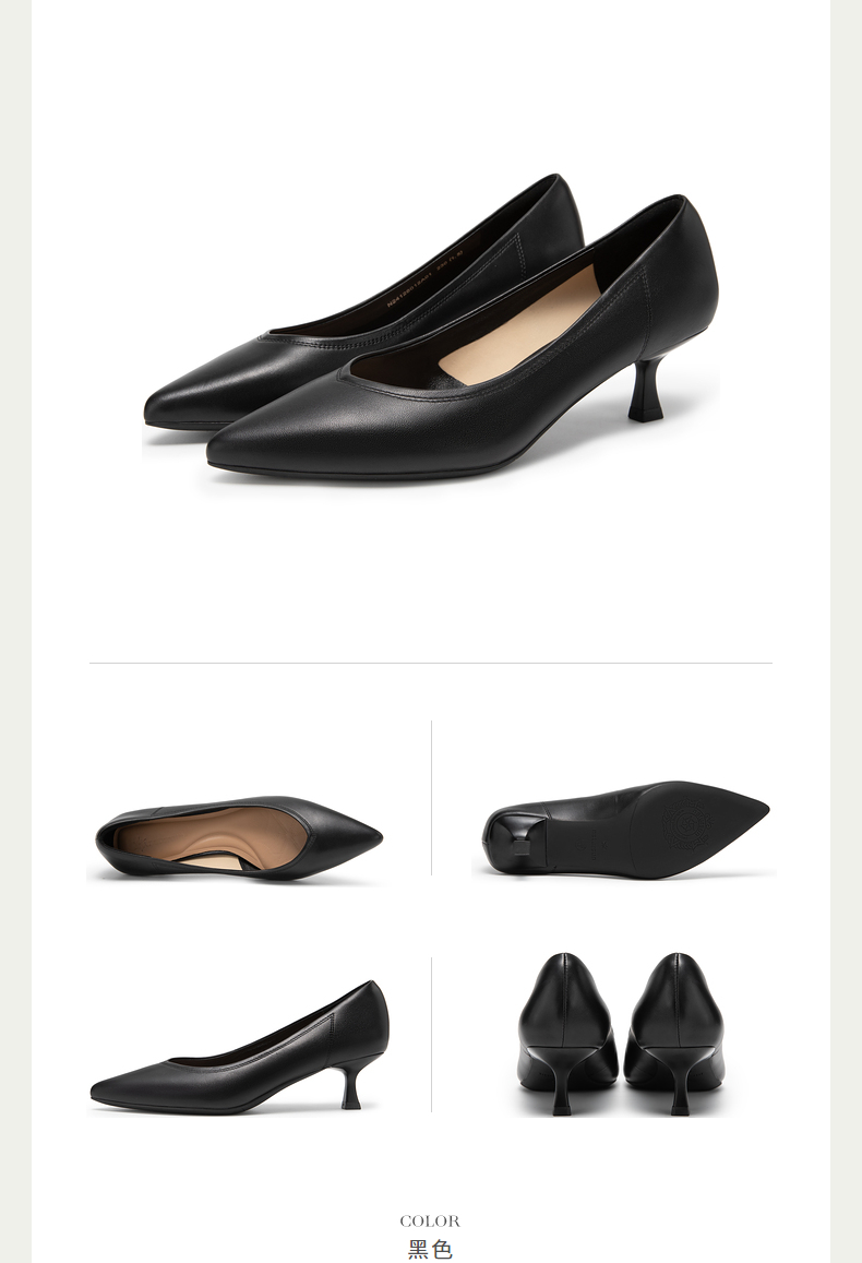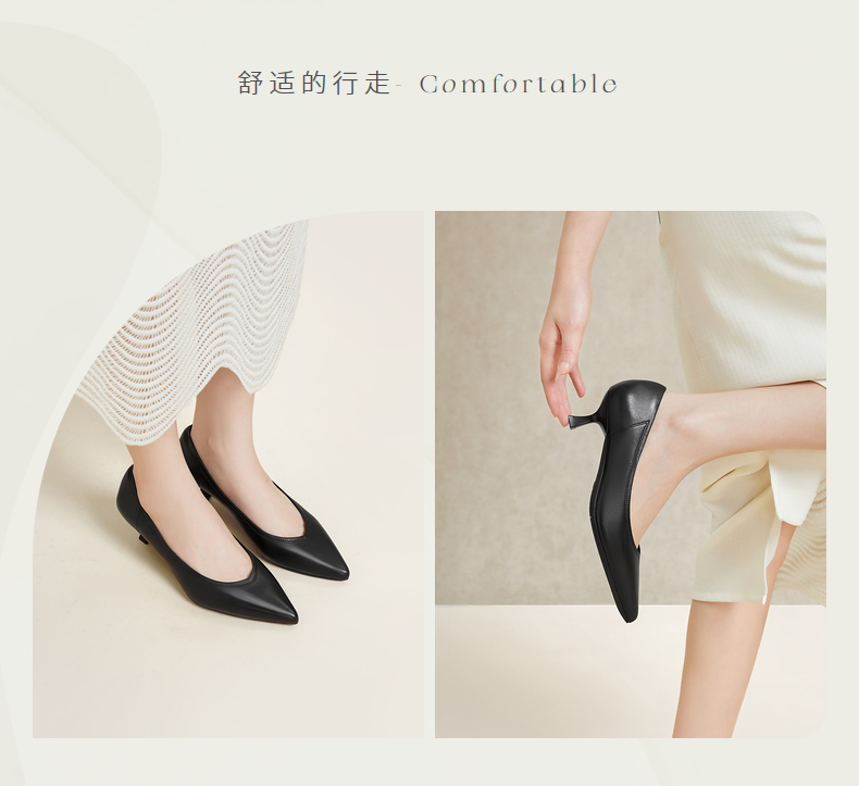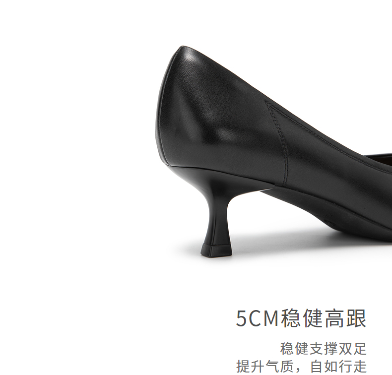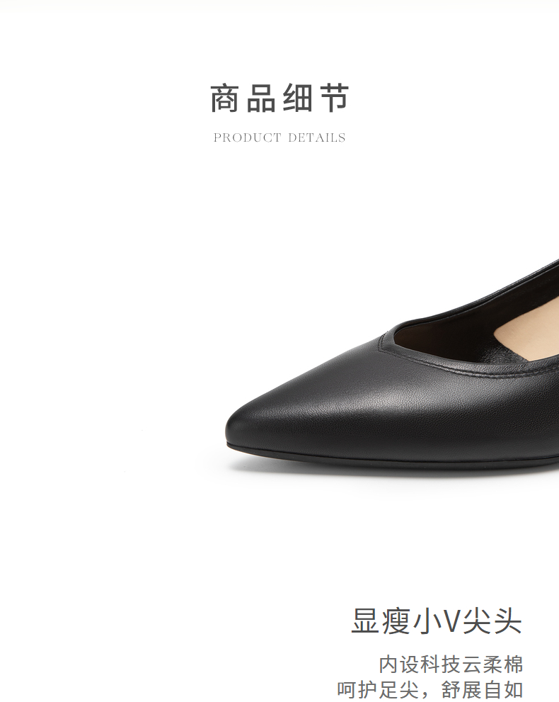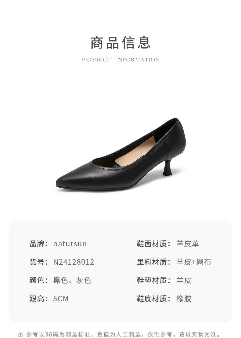natursun单鞋女春季尖头软底一脚蹬女鞋小香风黑色高跟鞋N24128012