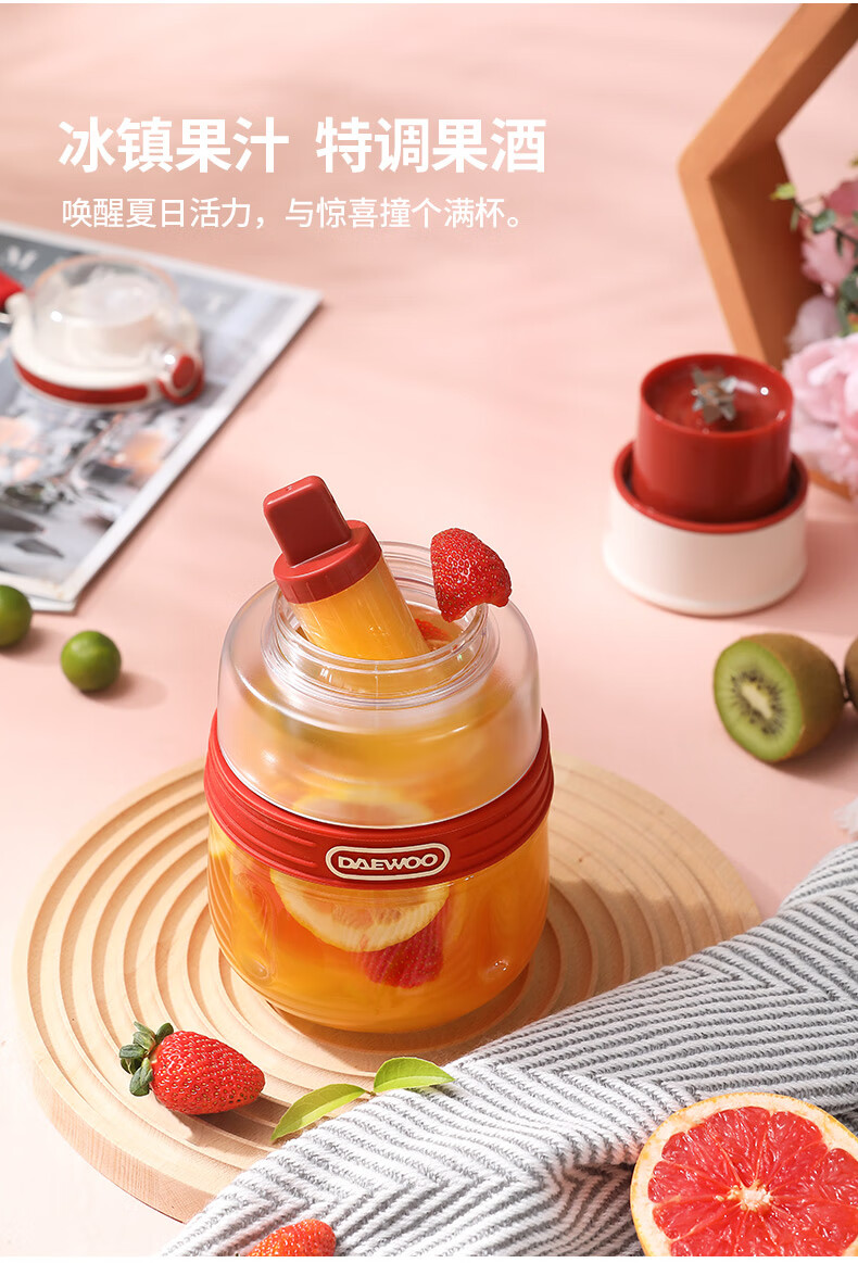 大宇(DAEWOO)榨汁杯家用迷你随行电动便携式果汁杯 便携式榨汁吨吨桶(海棠红)_DYGZ-5D10