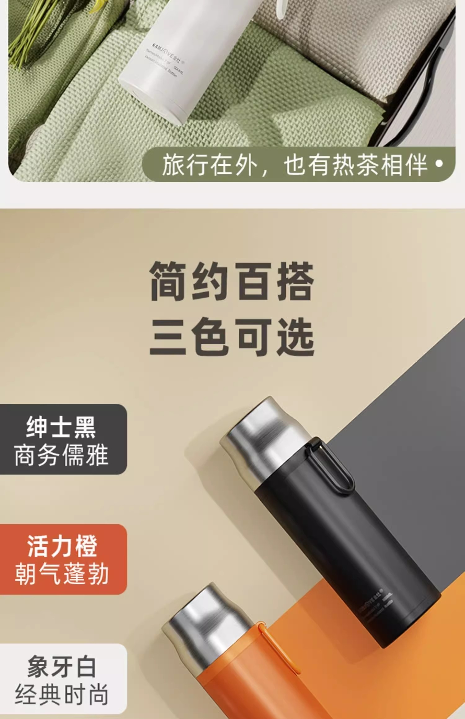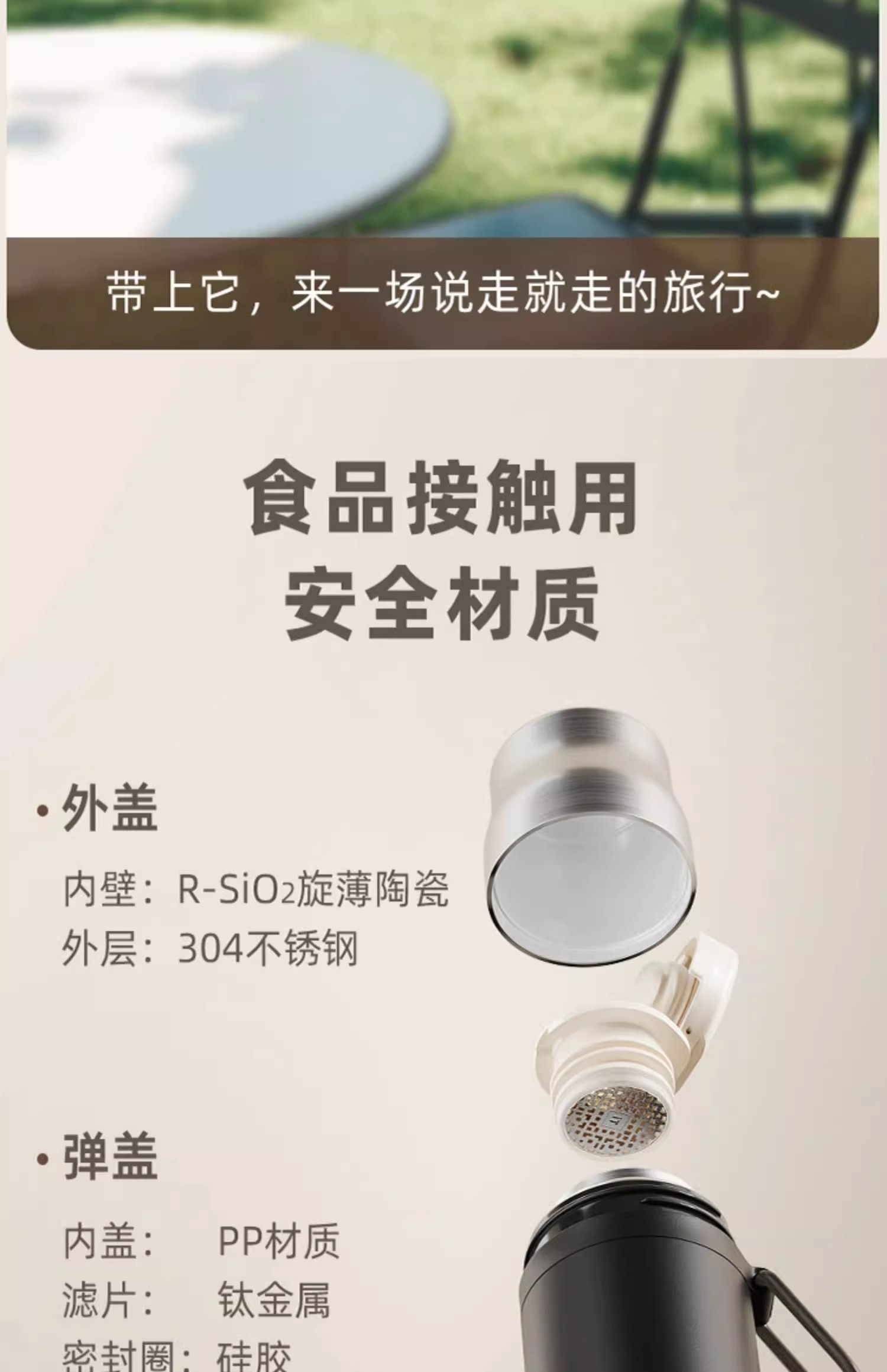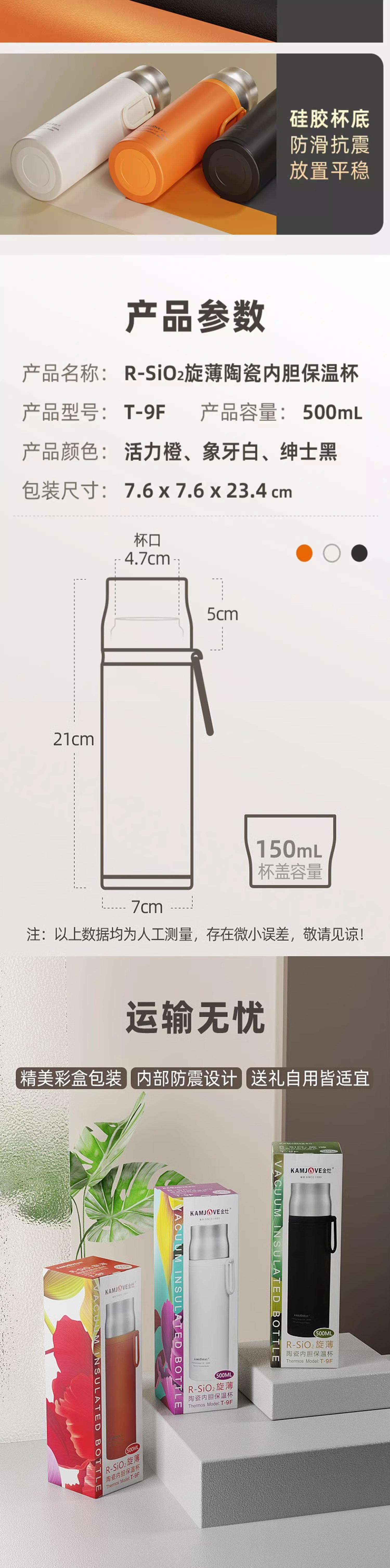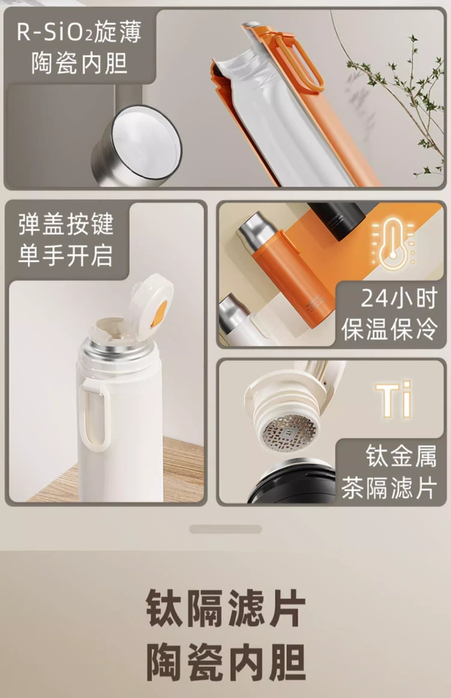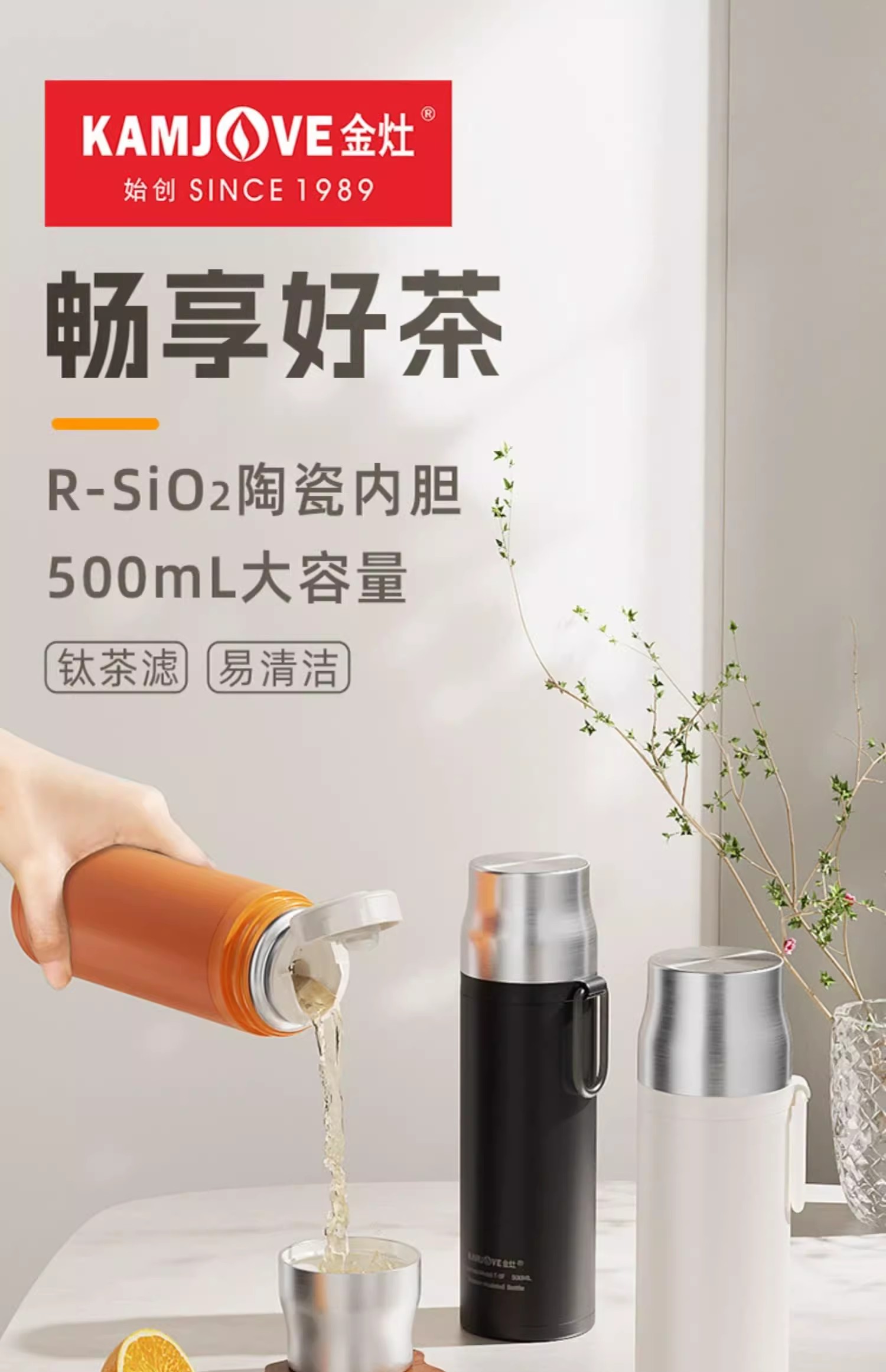 金灶T-9F陶瓷内胆保温杯茶水分离杯户外旅行大容量茶杯子1个 颜色随机
