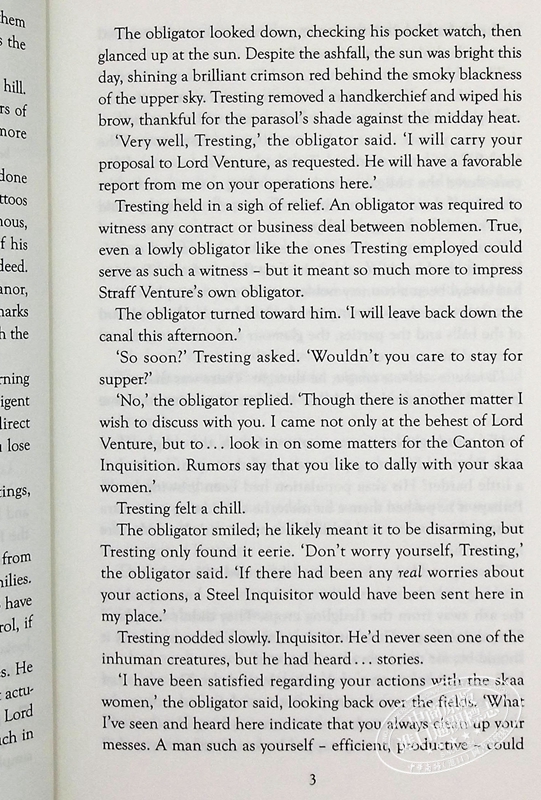 A dark lord rules through the aristocratic families and ordinary folk are condemned to lives in servitude, sold as goods, labouring in the ash fields. But now a troublemaker has arrived and there is rumour of revolt. A revolt that depends on a criminal no-one can trust and a young girl who must master Allomancy - the magic that lies in all metals.