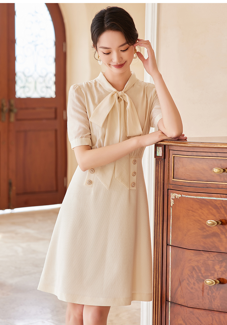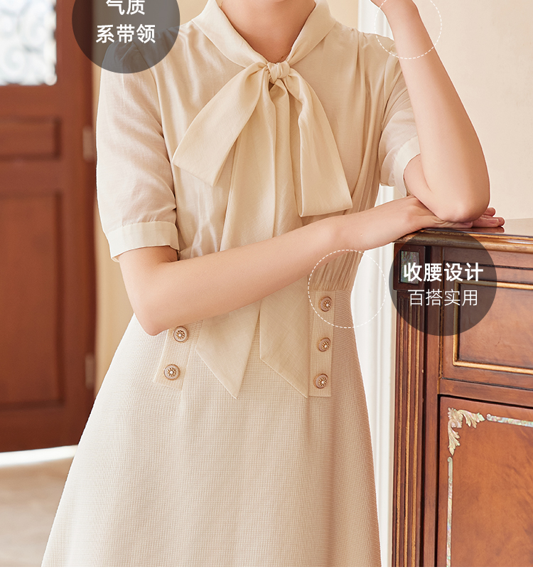 IWY/新款杏色收腰遮肚小香风连衣裙蝴蝶结夏季新款修身女装时尚裙子24Q547M