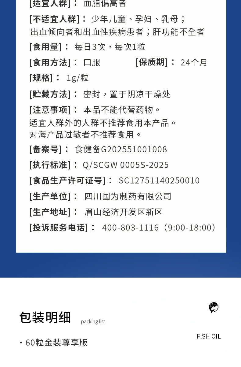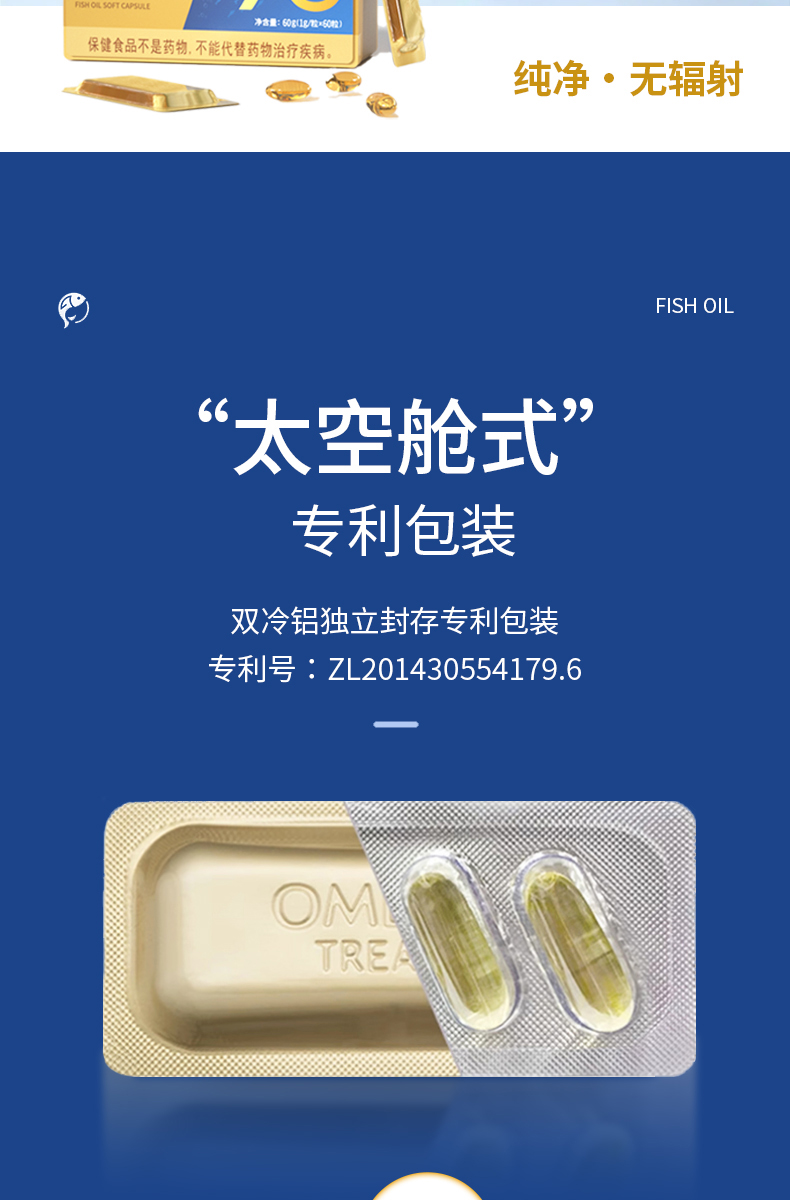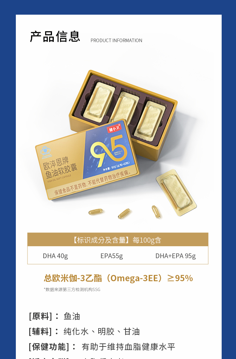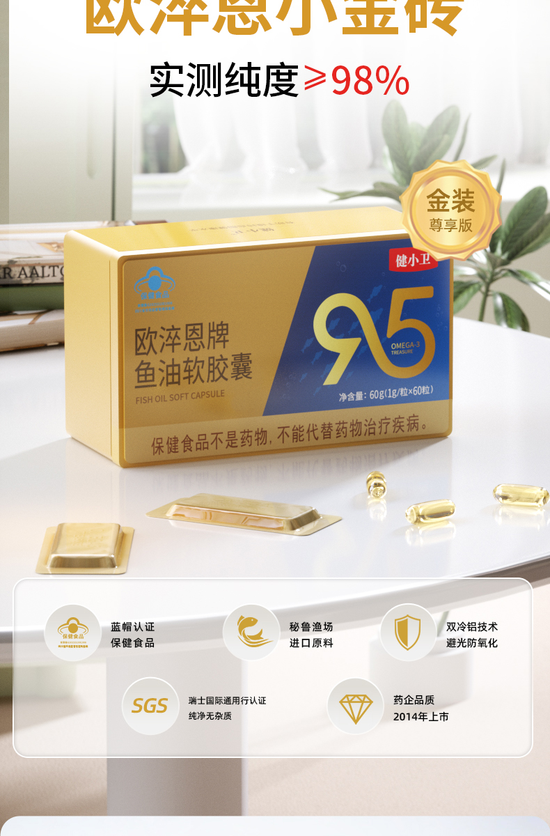 【买1赠1 焕新升级】 健小卫欧淬恩金装实测纯度98%以上高纯度深海鱼油 (1g每粒*60粒每盒)