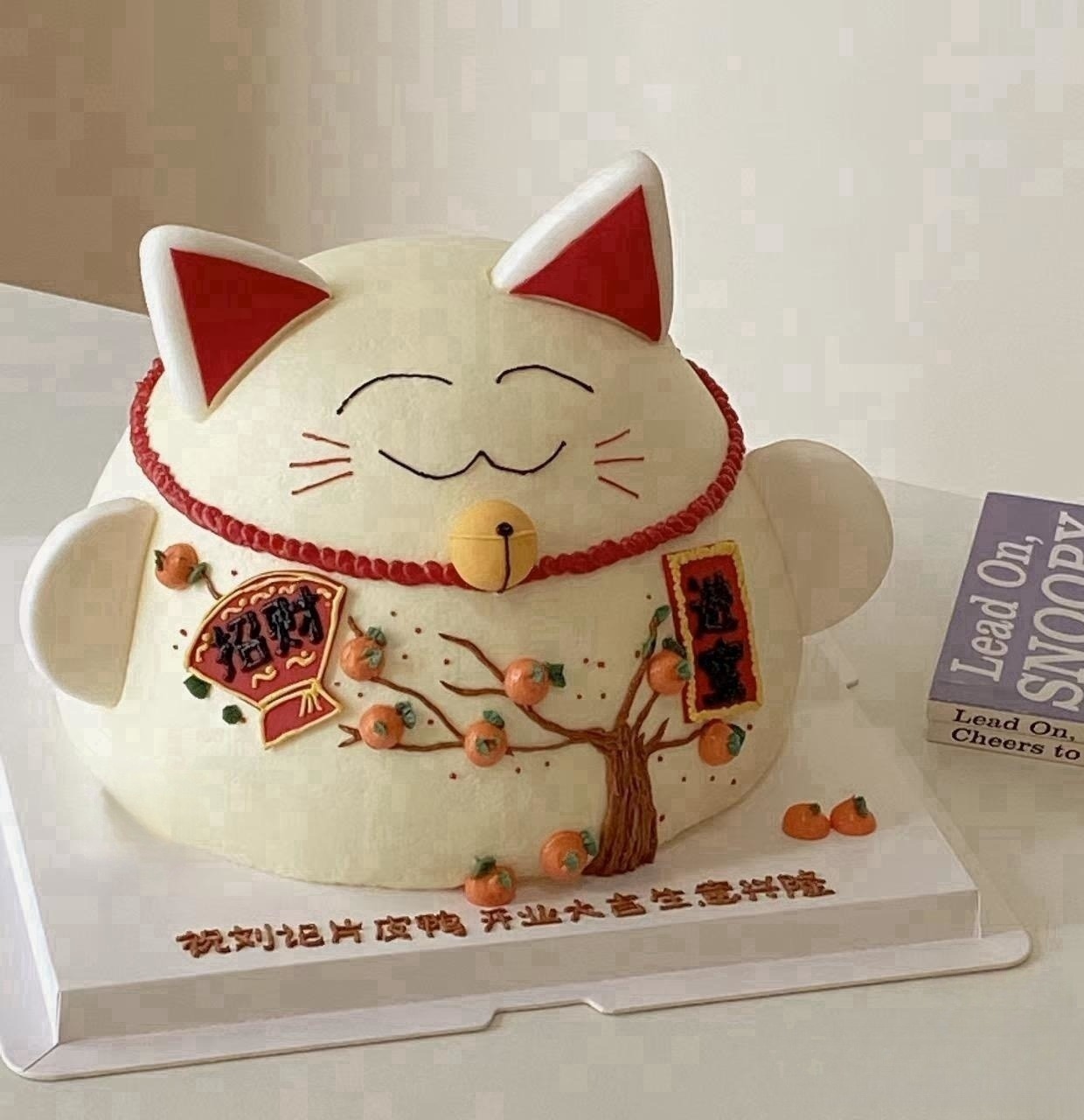 【臻品系列】----三层夹心加高胚立体【招财猫】开业,暴富,发财蛋糕