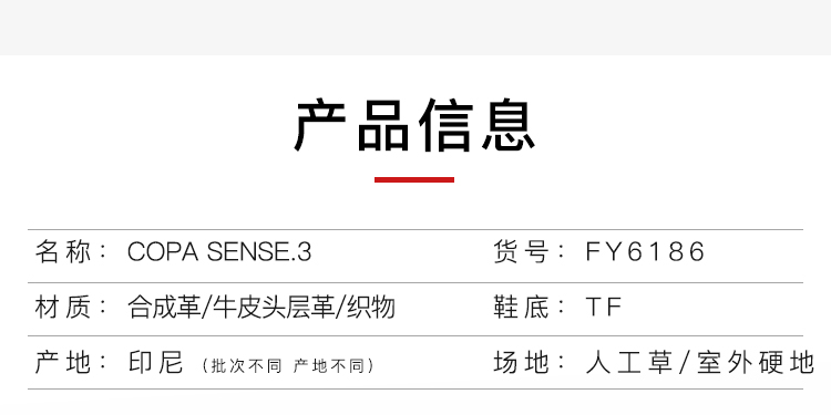ADIDAS/阿迪达斯 COPA SENSE.3中端TF碎钉足球鞋FY6186