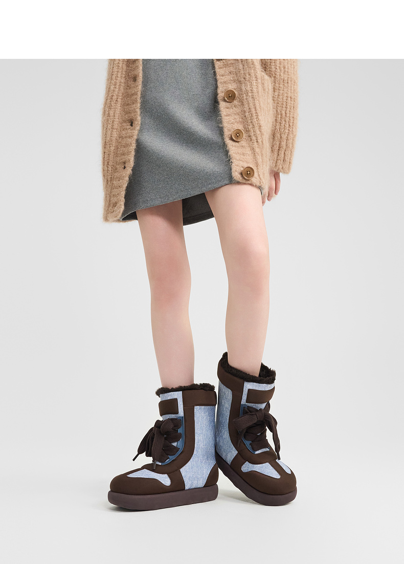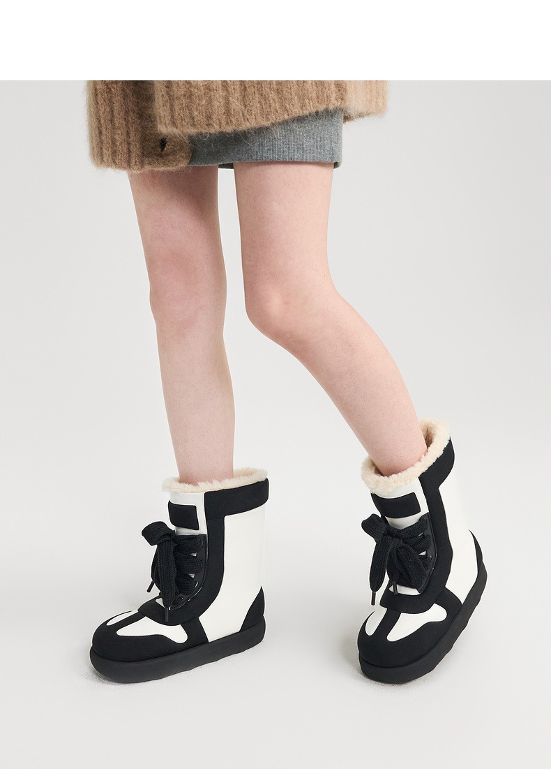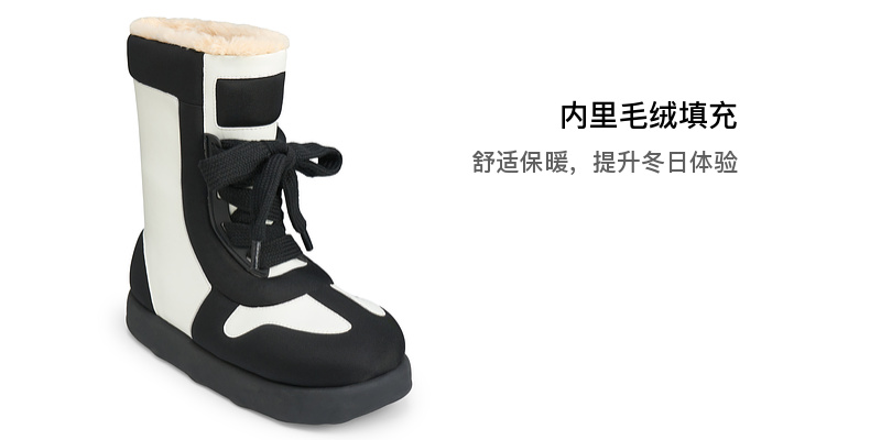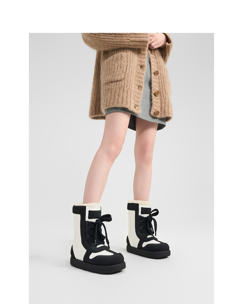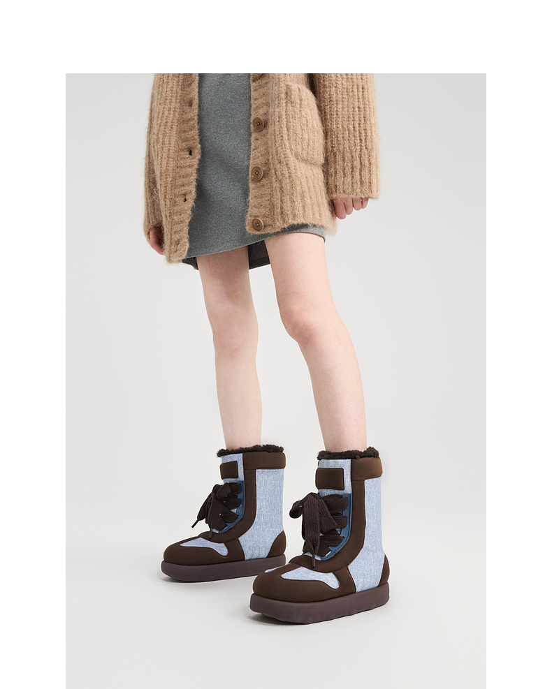 lost in echo2024秋冬新款加绒保暖填充感撞色拼接绑带面包雪地靴