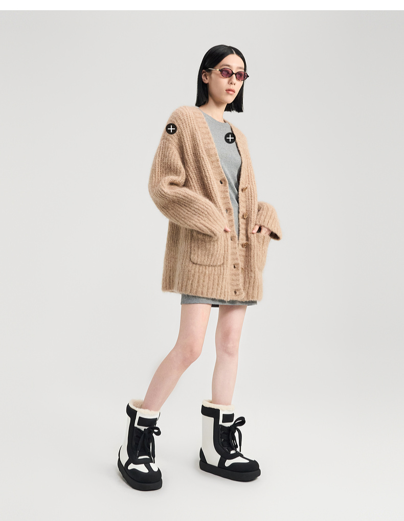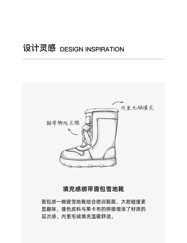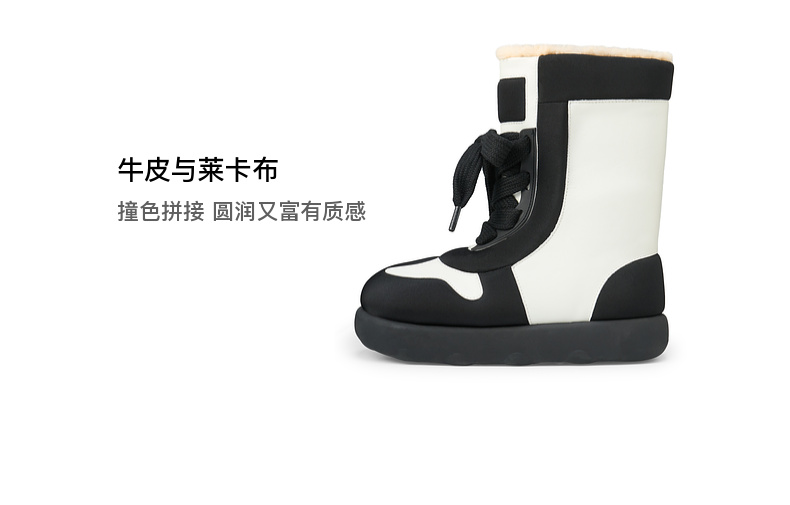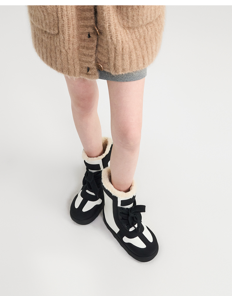 lost in echo2024秋冬新款加绒保暖填充感撞色拼接绑带面包雪地靴
