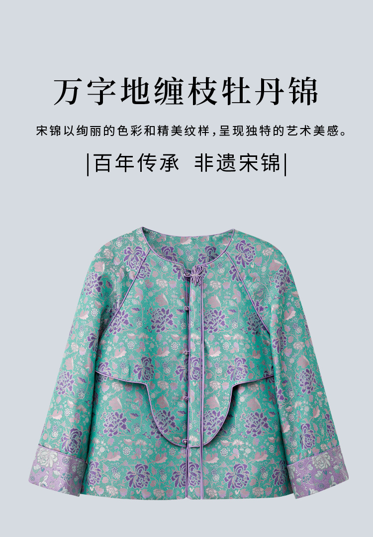 SAINTJOY/上久楷宋锦外套 复古 中国风 女士上衣 万字地缠枝牡丹 CY1024207029