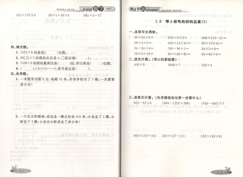 钟书正版辅导书 新教材全练 数学 3年级/三年级下 第二学期下册新课标 教辅课外复习学习资料