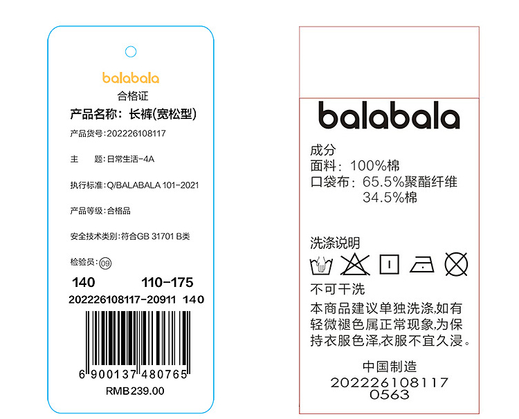 【商场同款】巴拉巴拉男童休闲裤儿童裤子2026夏季中大童长裤纯棉
