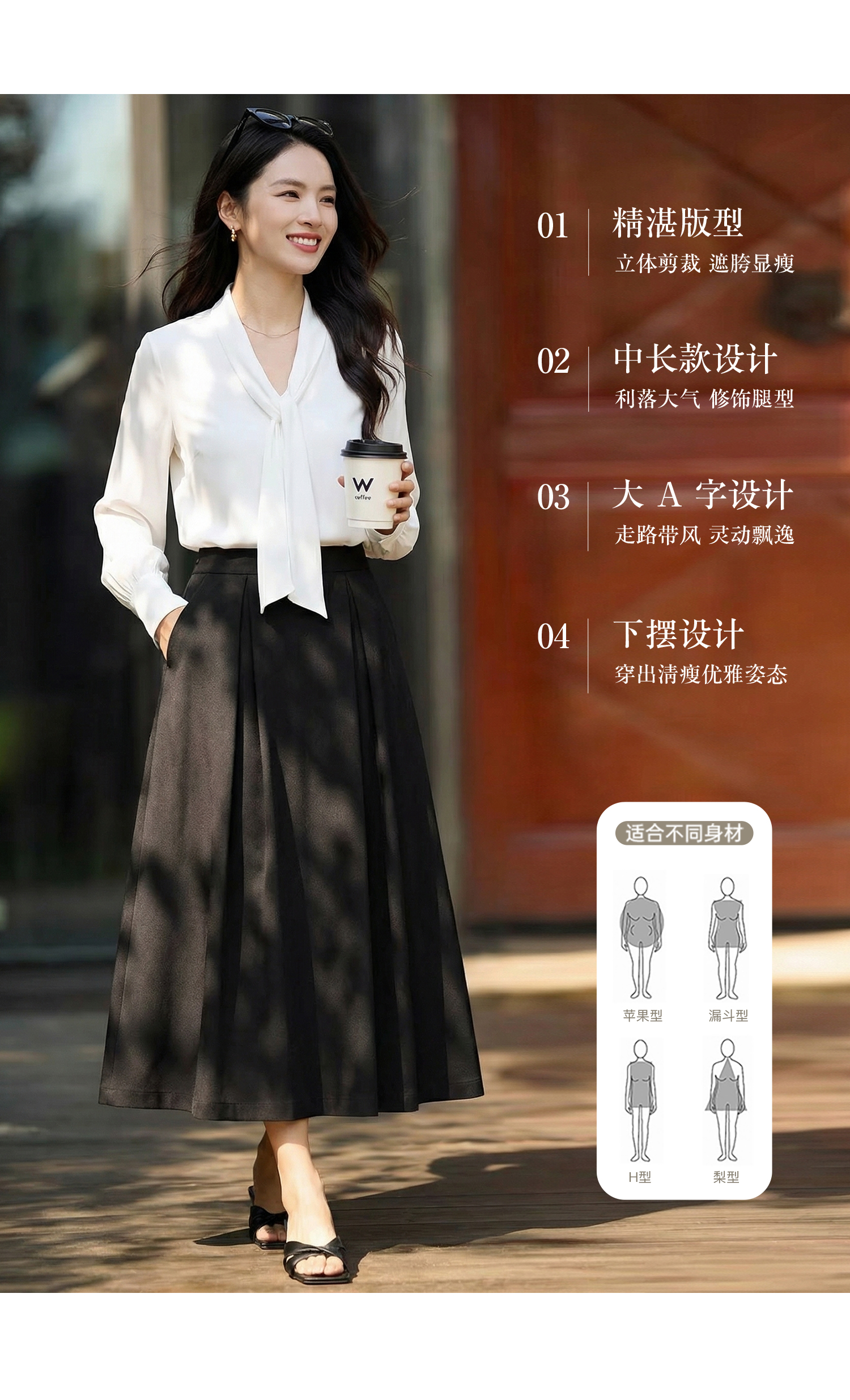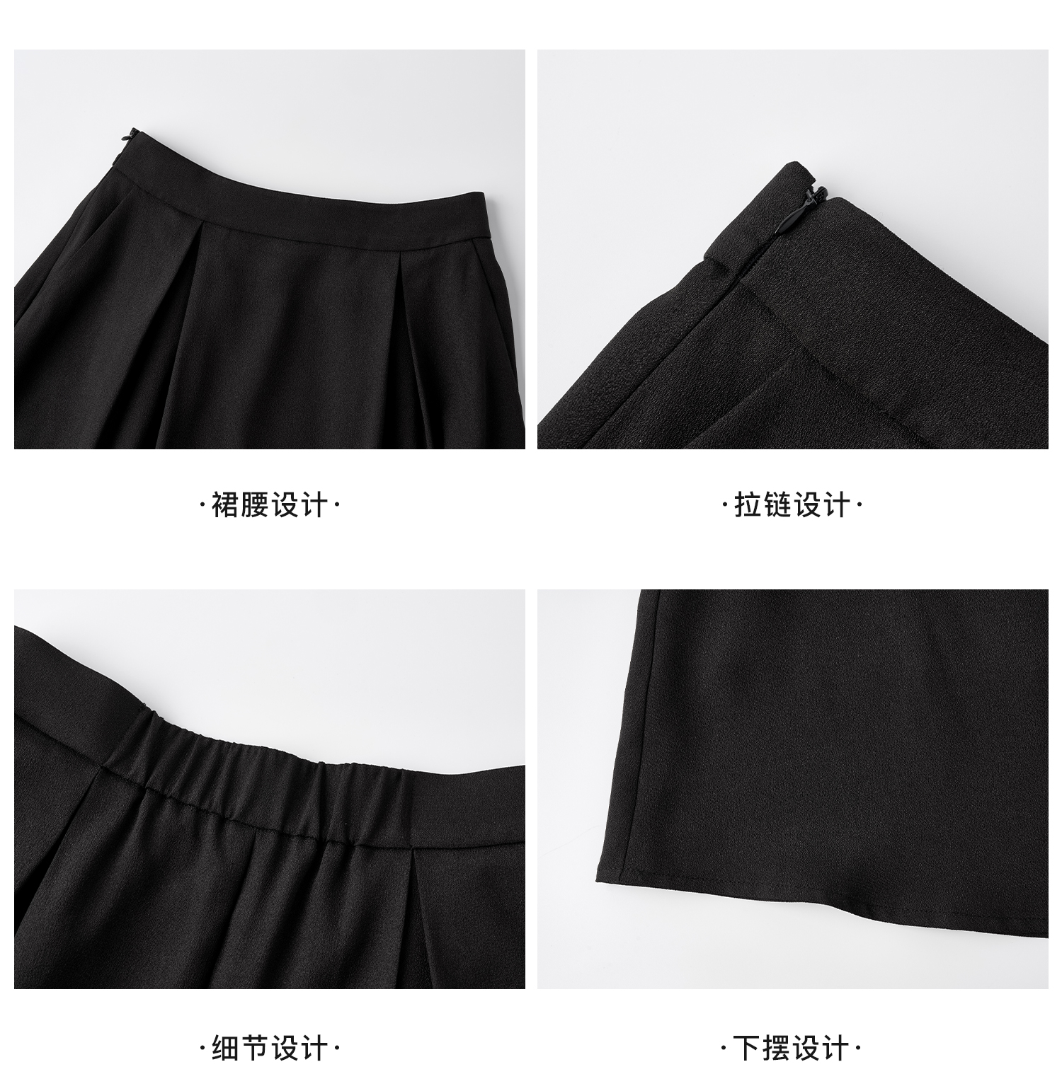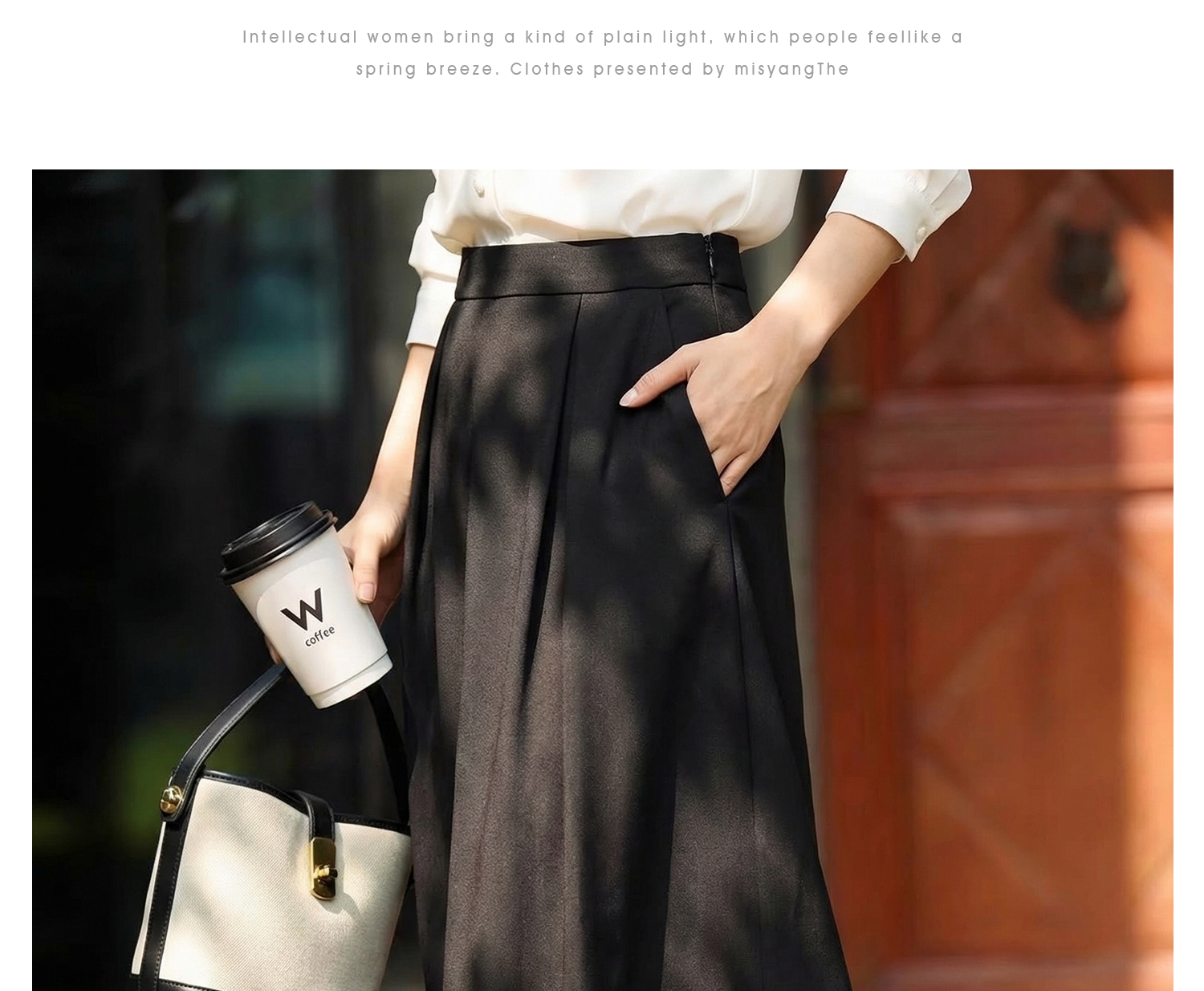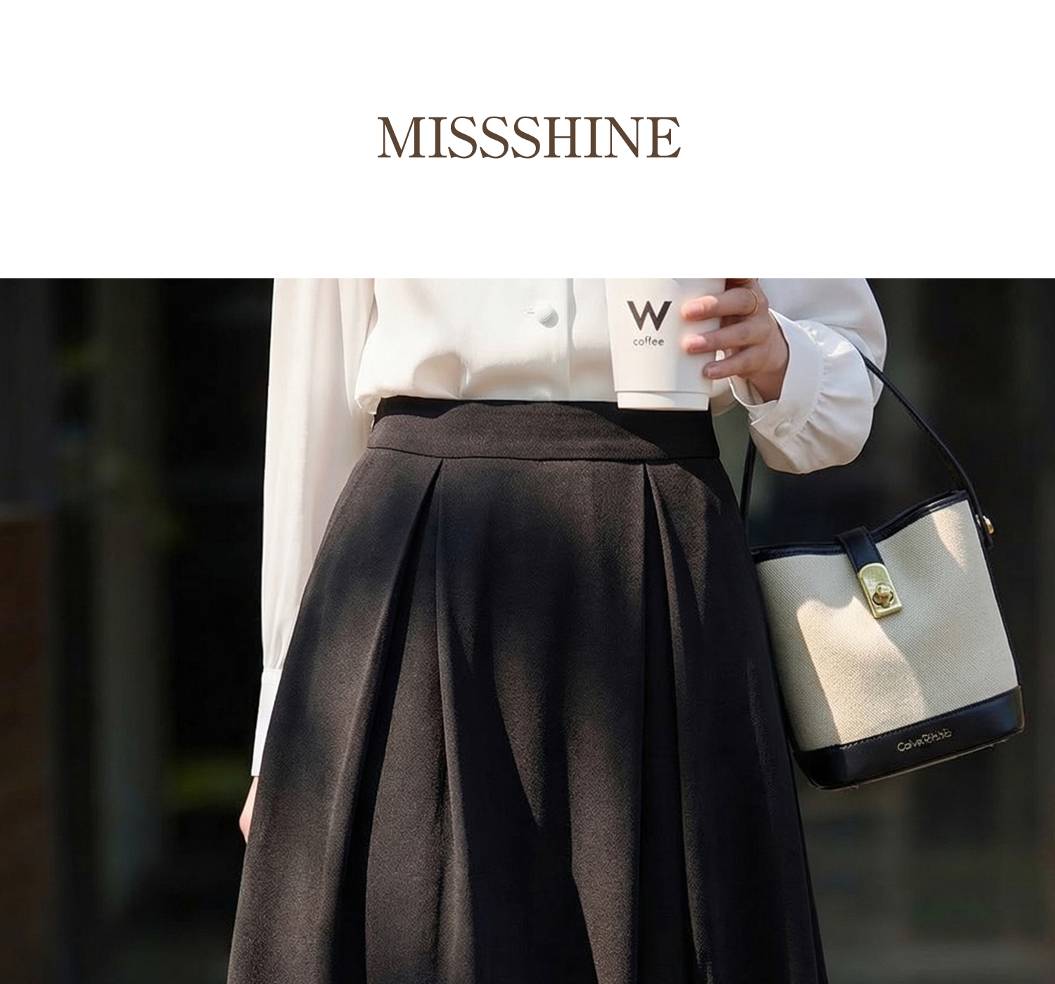 米思阳2026春新款优雅压褶大摆裙伞裙通勤百搭高腰半身裙女4334