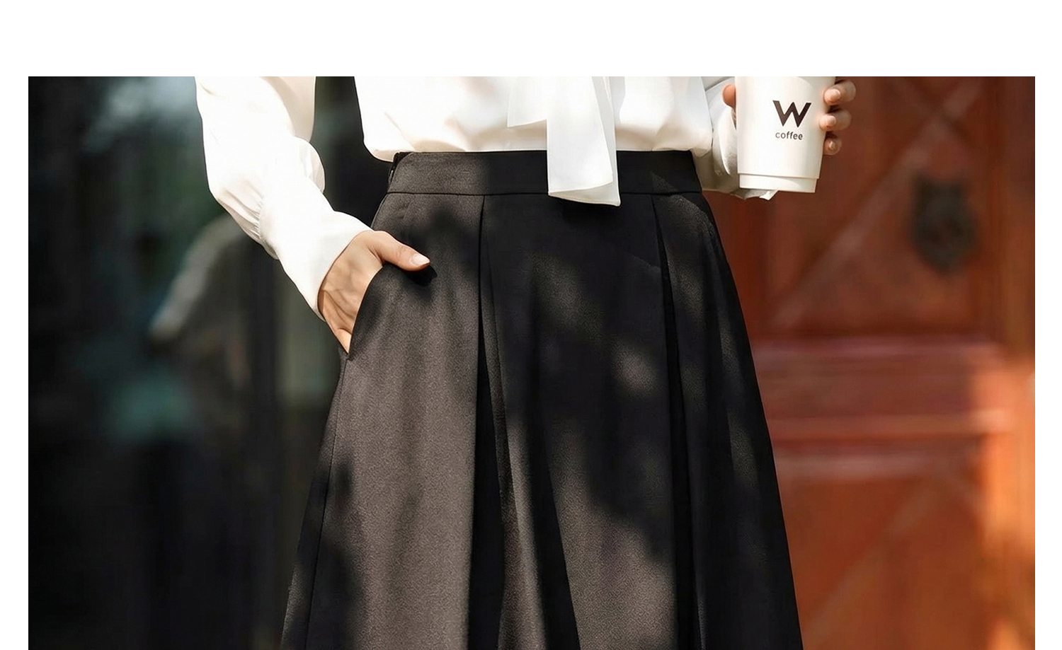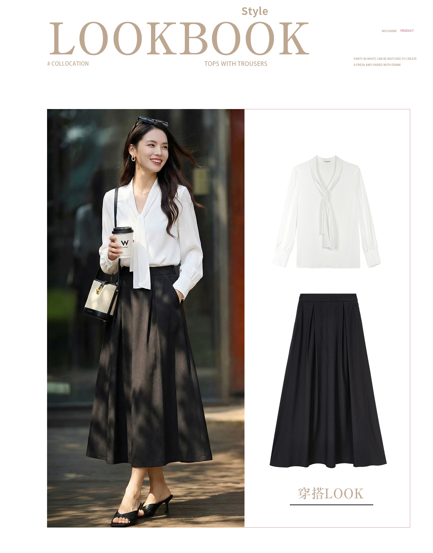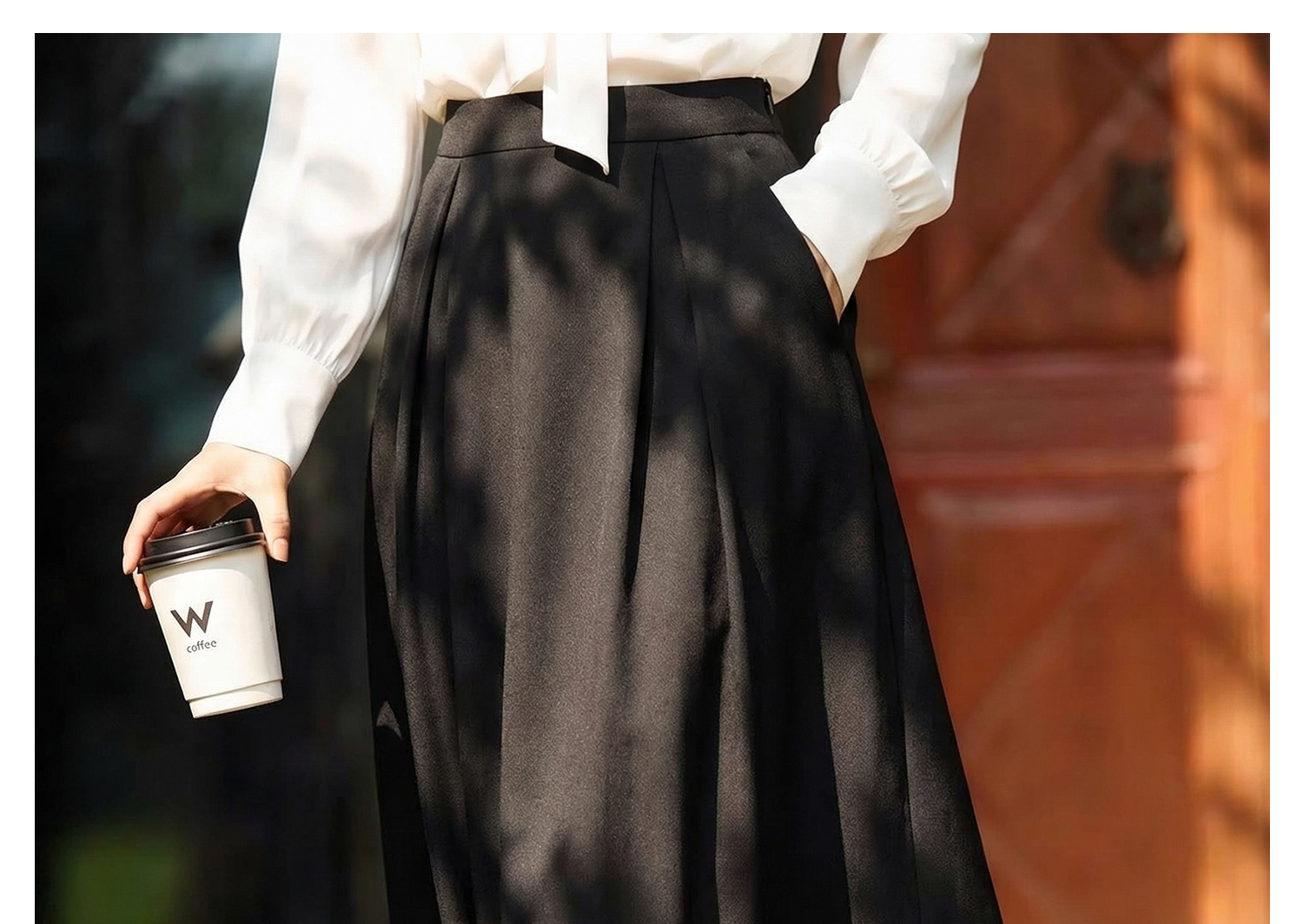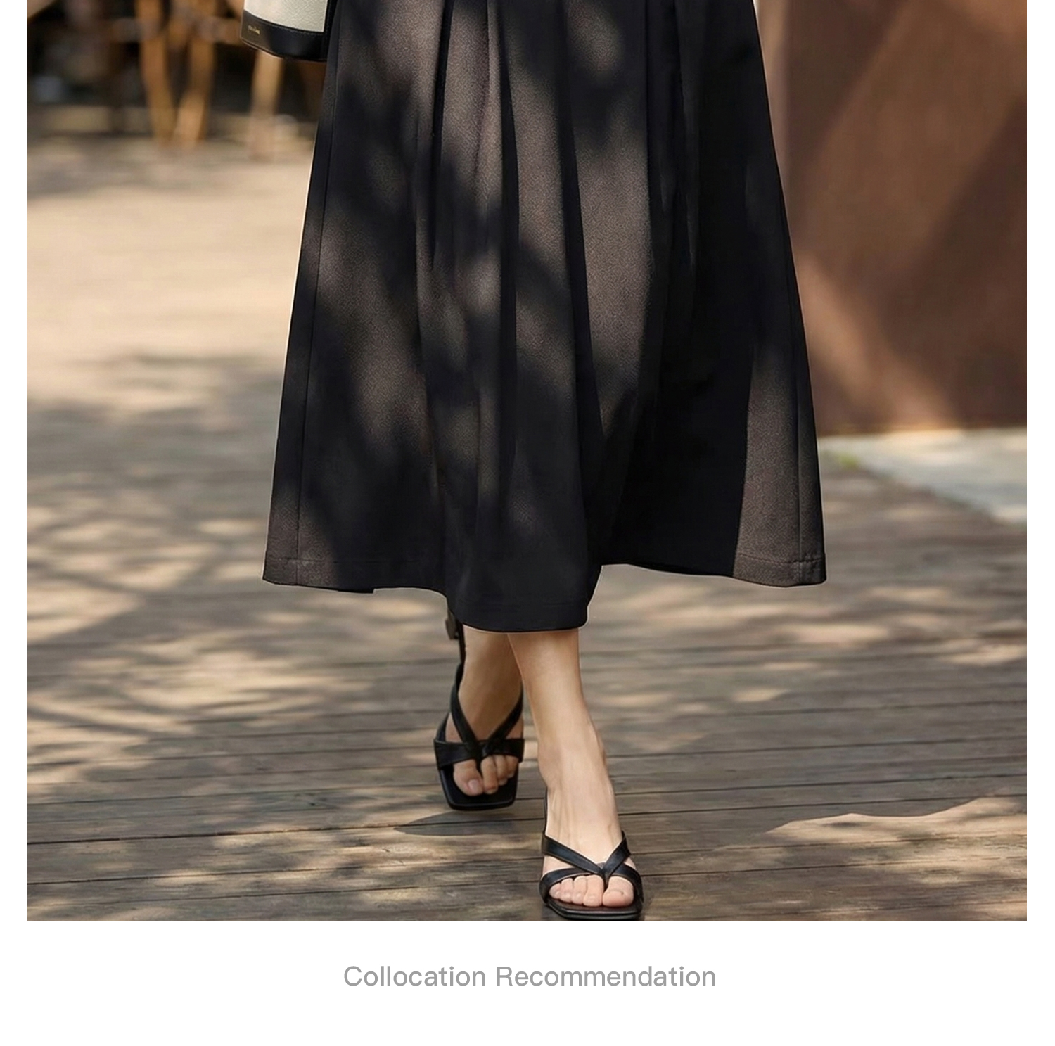 米思阳2026春新款优雅压褶大摆裙伞裙通勤百搭高腰半身裙女4334