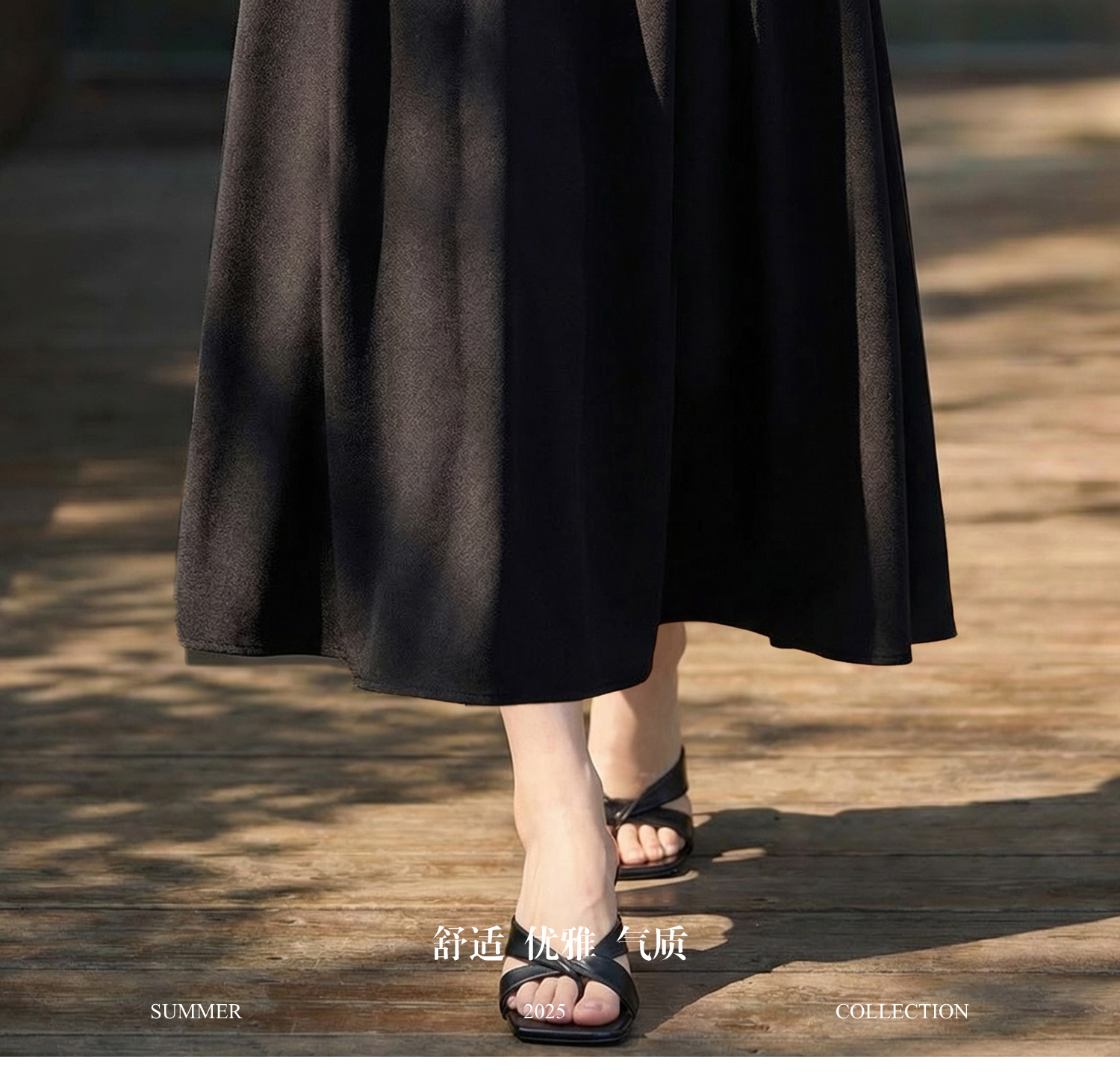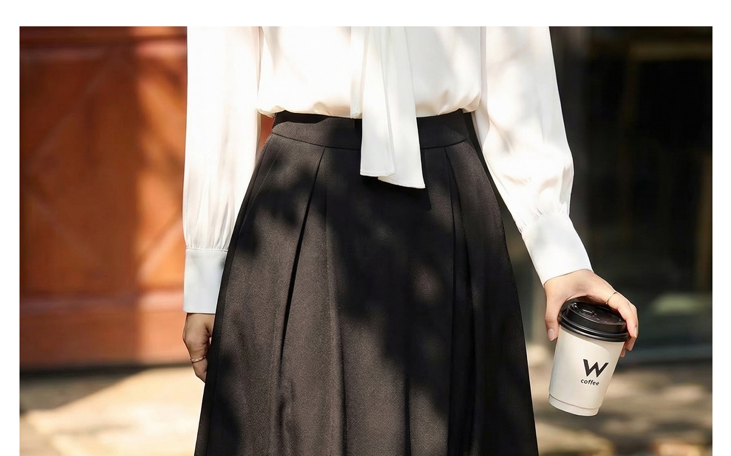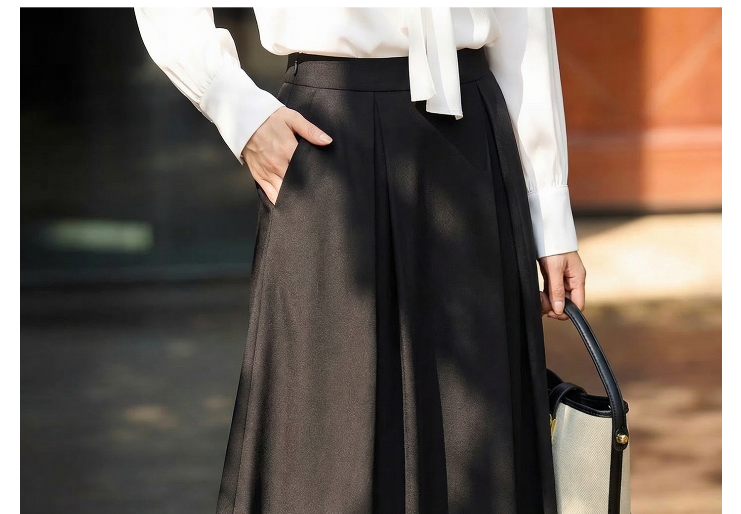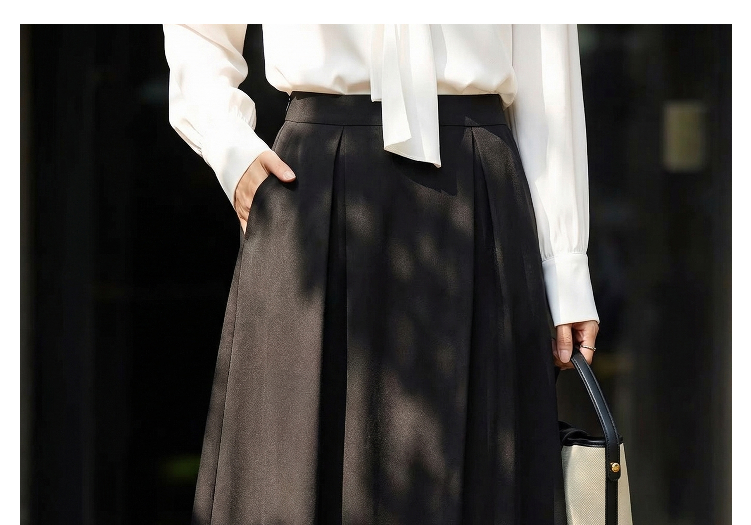 米思阳2026春新款优雅压褶大摆裙伞裙通勤百搭高腰半身裙女4334